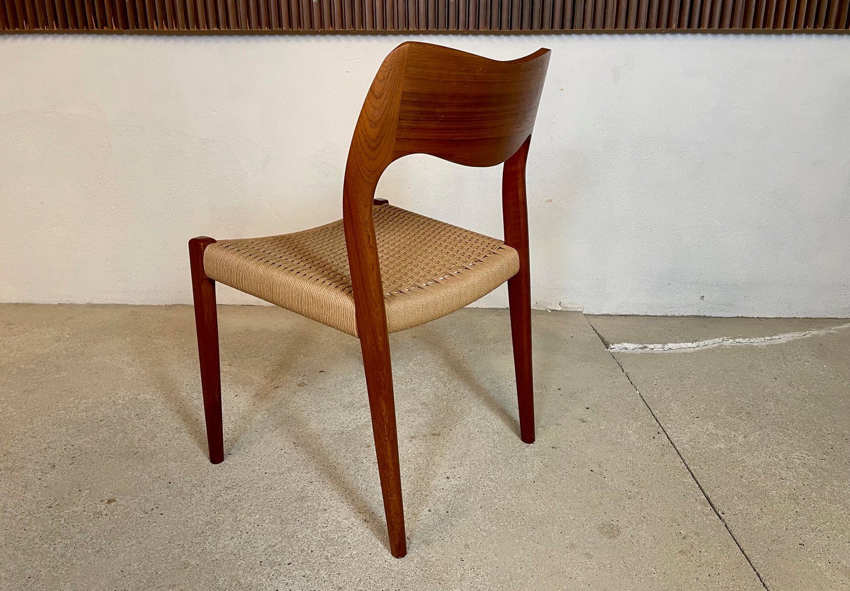 Dänischer Modell 71 Beistell- oder Esszimmerstuhl aus Teak mit handgewebtem Sitz aus Papierkordelgeflecht von Niels O. Møller für Jl Møllers, 1951