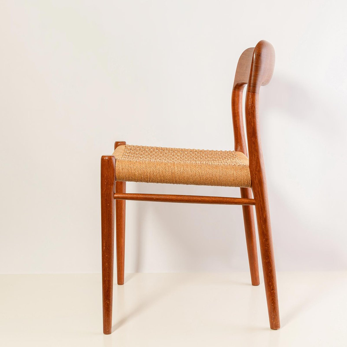 Das Modell 75 von Nils O. Möller wurde 1954 entworfen und ist einer der erfolgreichsten Stühle dieses Designers. Die Version mit Papierkordel ist eine der beliebtesten.