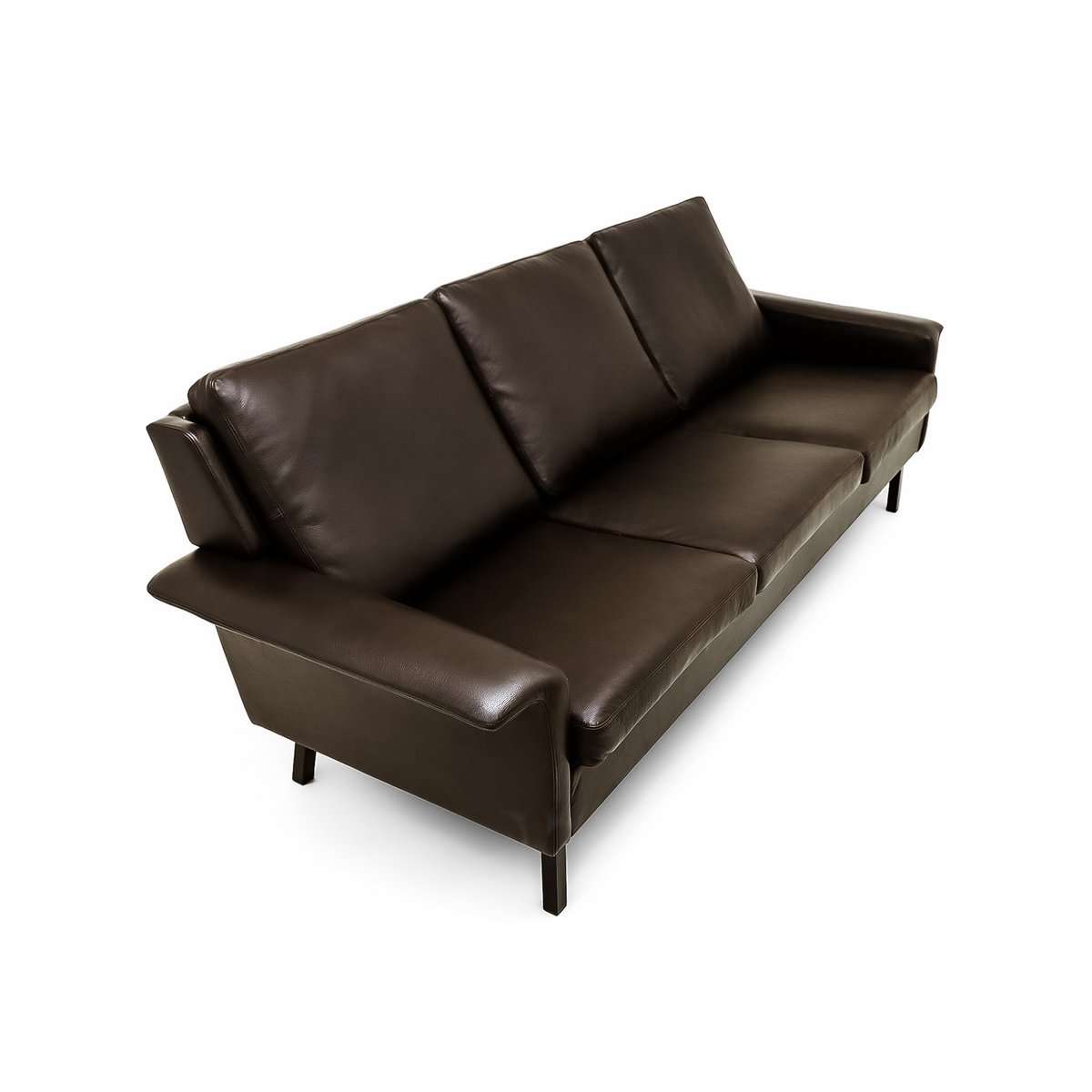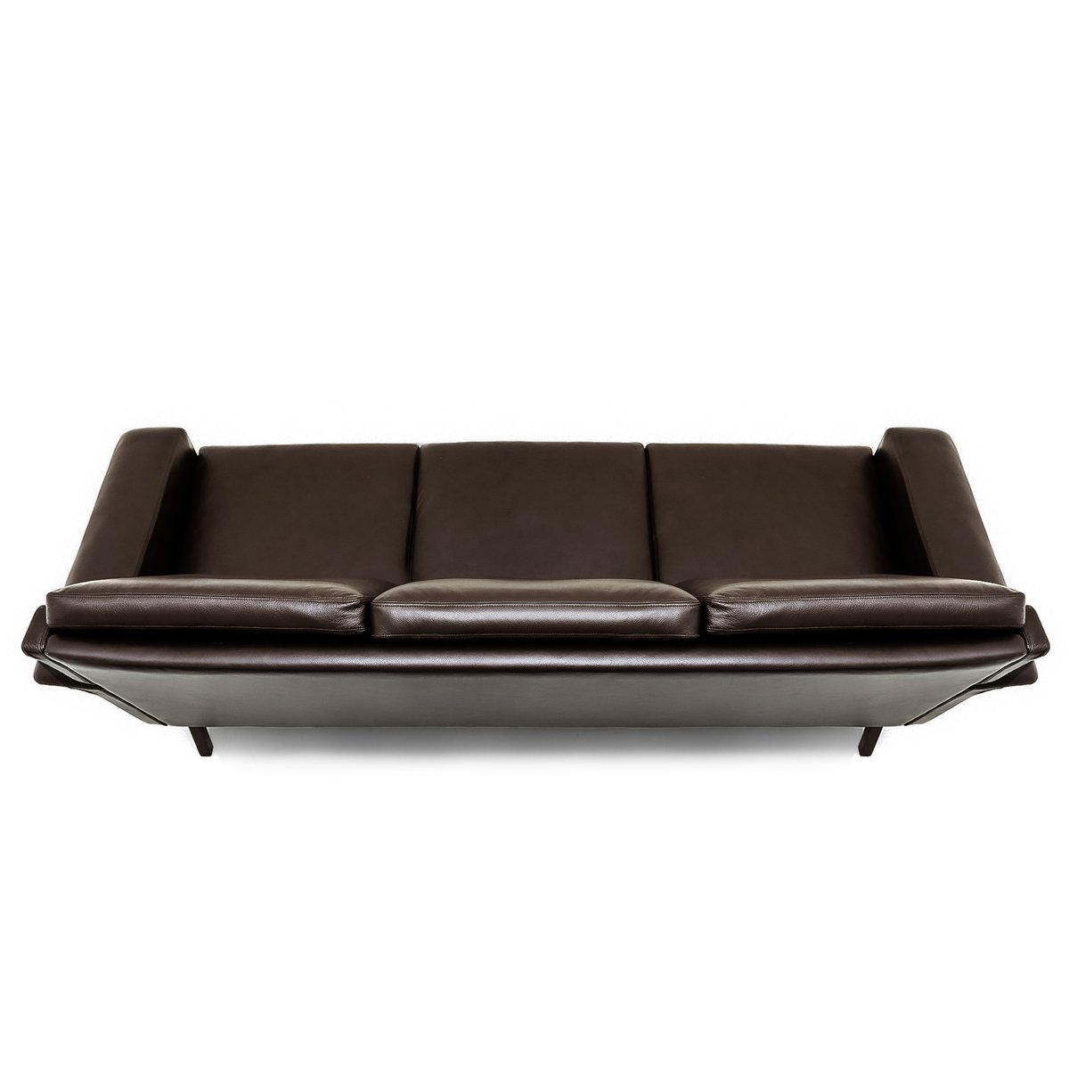 Vintage Danish mid century 1960’s model 3330 Arne Vodder 3 seat sofa for Fritz Hansen in recently reupholstered dark chocolate coloured leather.