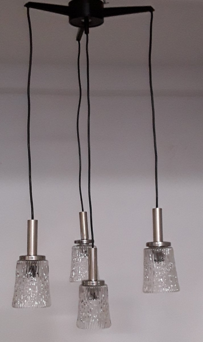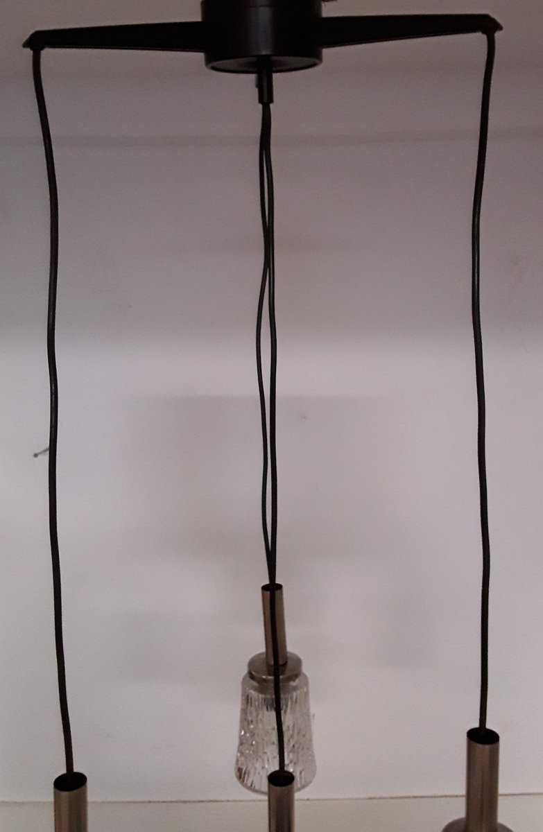 Deckenlampe mit schwarzen Kunststoffarmen & verchromtem Metall, 1970er