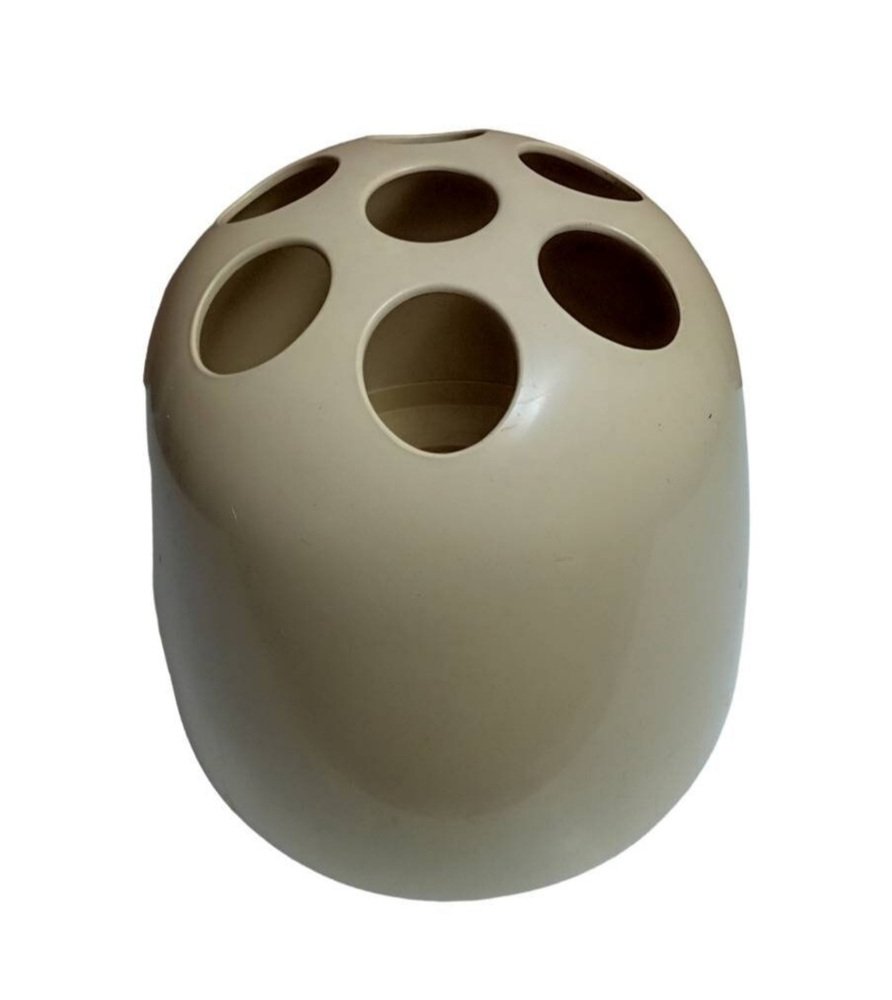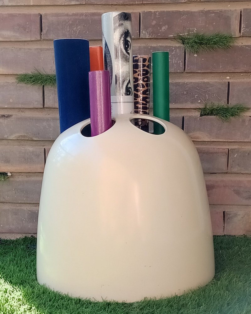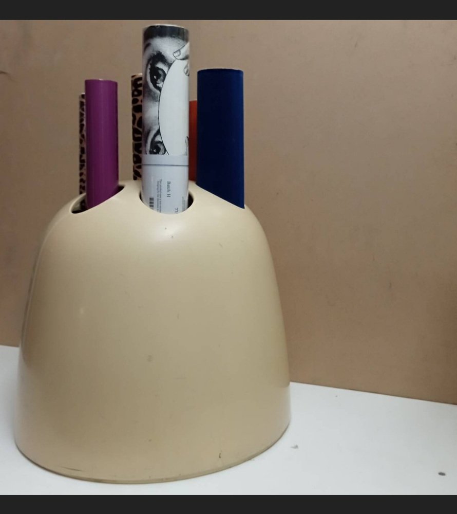 - Iconic 1960s Design **Description:** Discover the iconic Dedalo umbrella stand, designed by the renowned Emma Gismondi Schweinberger for Artemide in the 1960s. This umbrella stand, made of high quality ABS plastic, combines functionality and aesthetics in a cylindrical design with geometric lines and an impeccable finish. Its structure features circular holes that not only add a unique visual touch, but also optimize its functionality. The Dedalo is a perfect example of mid-century Italian design, characterized by innovation, elegance and practicality. This umbrella stand is not only a functional piece to organize your umbrellas, but also a decorative object that adds a touch of sophistication and authenticity to any space. Ideal for lovers of genuine vintage design and collectors of iconic pieces.