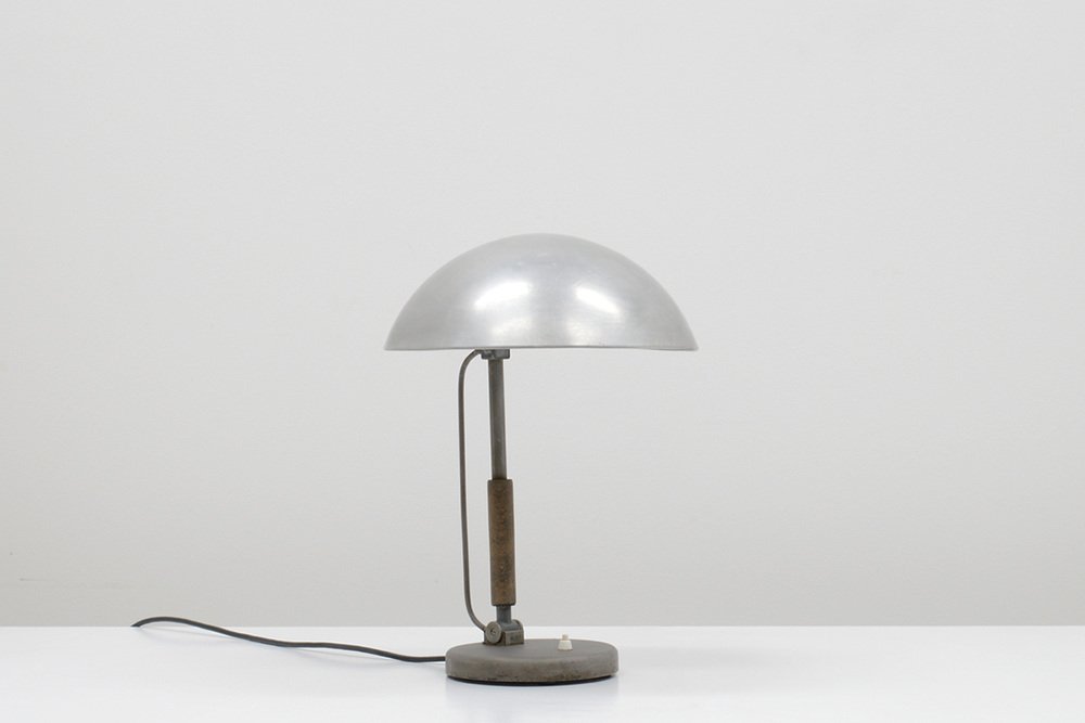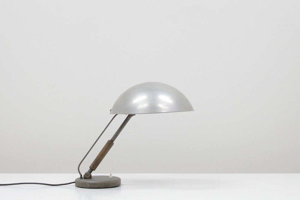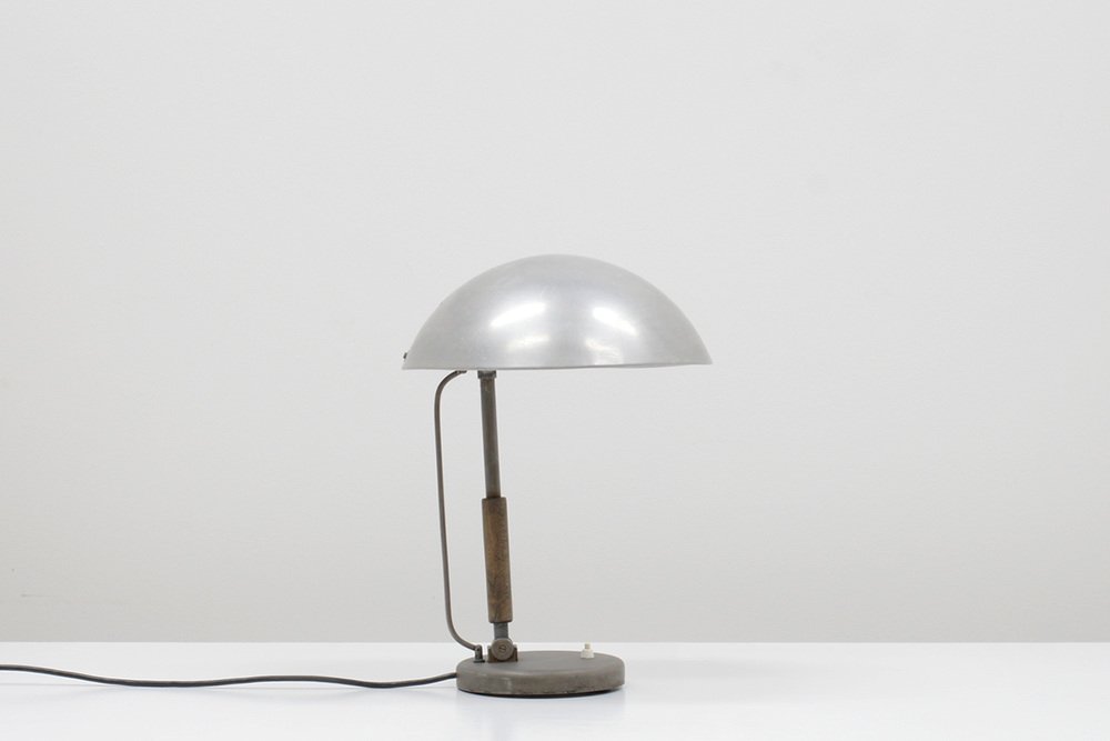 Deutsche Bauhaus Schreibtischlampe aus blankem Metall von Karl Trabert für Schanzenbach, 1930er