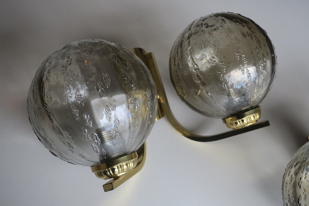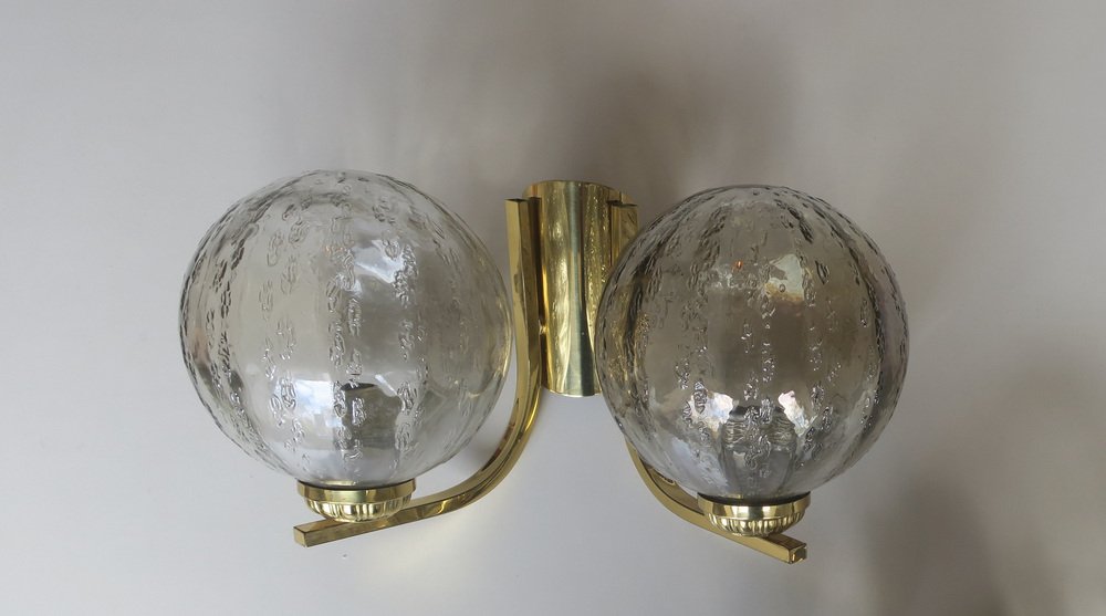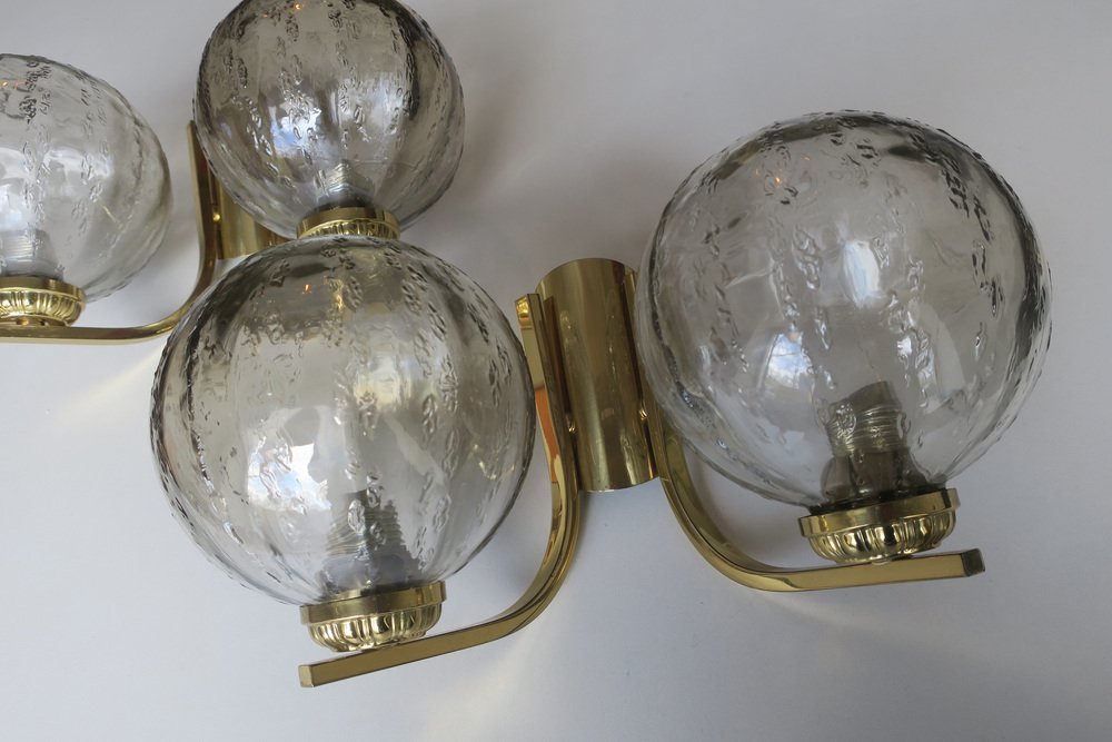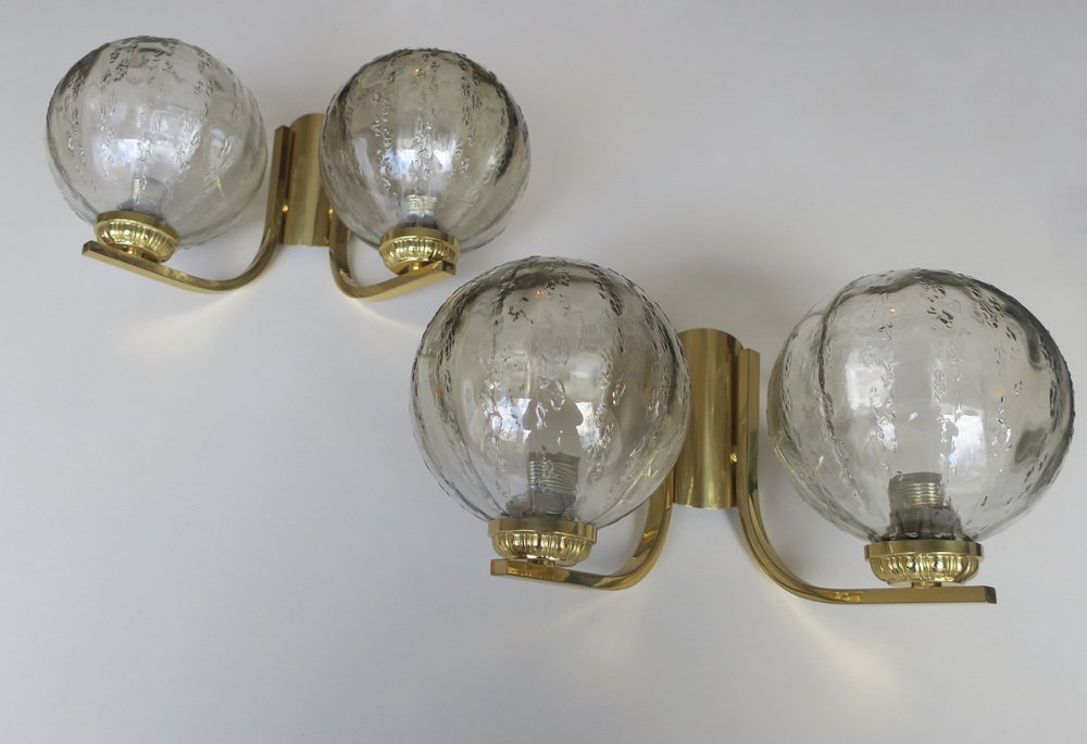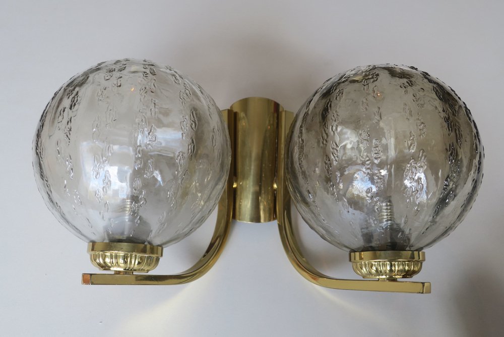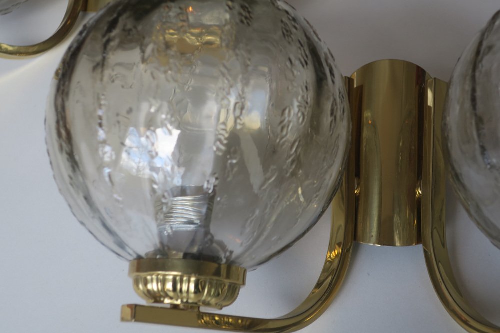 Doppelwandlampen aus Messing & Glas, 1970er, 2er Set
