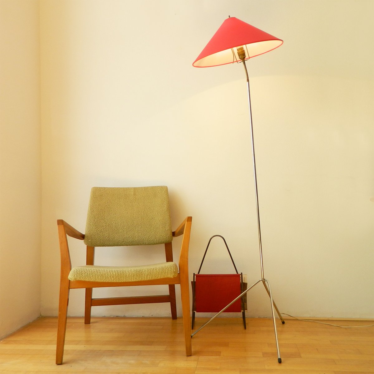 Dreibein Stehlampe aus Chrom, 1950er