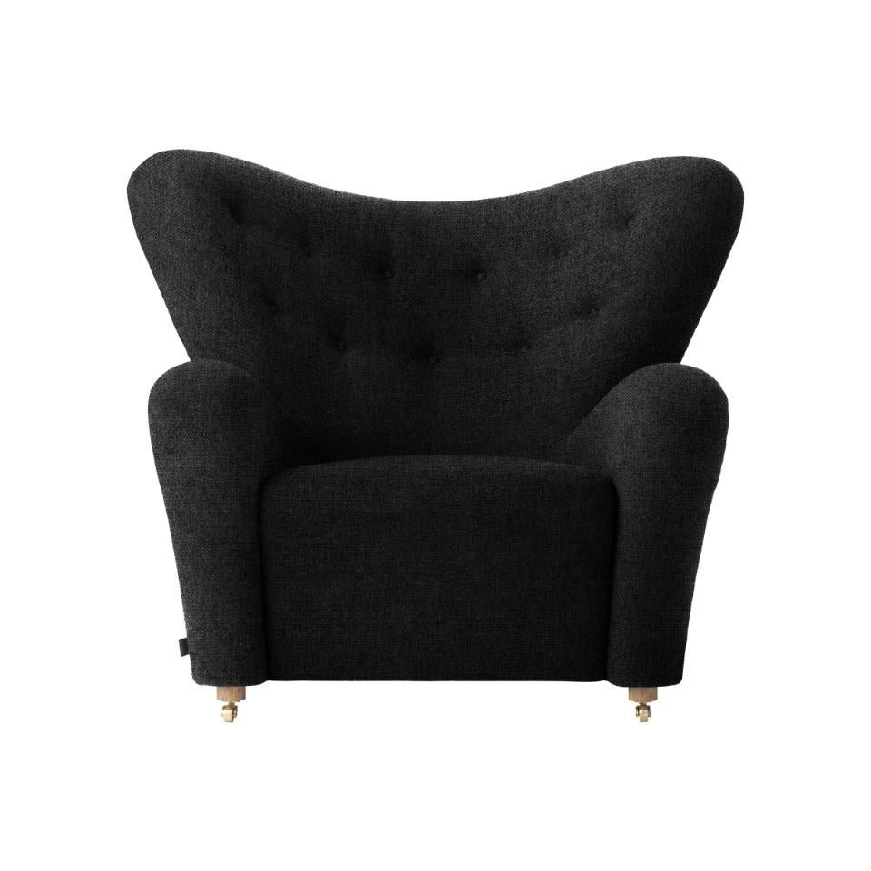 Dark grey Hallingdal the tired man lounge chair by Lassen Dimensions: W 102 x D 87 x H 88 cm Materials: Sheepskin Flemming Lassen designed the overstuffed easy chair, The Tired Man, for The Copenhagen Cabinetmakers’ Guild Competition in 1935. It is characterised by organic, bearlike shapes and then as now it created a sensation with its curved form and voluminous armrests. Sitting in the chair should, in Flemming Lassen’s own ords, be ”as warm and safe as a polar bear cub in the arms of its mother in the middle of the ice cap”. The family man Flemming Lassen valued intimate relationships - with its warm exterior, The Tired Man invokes domestic cosiness and socialising by candlelight. By Lassen is a Danish design brand focused on iconic designs created by Mogens and Flemming Lassen, founded by Lassens’ relatives in 2008.