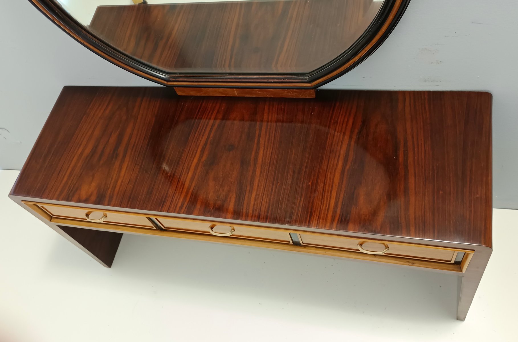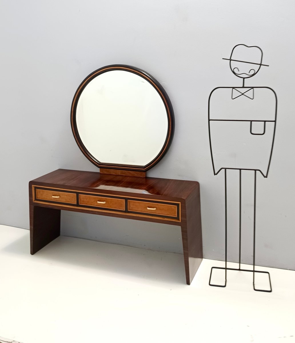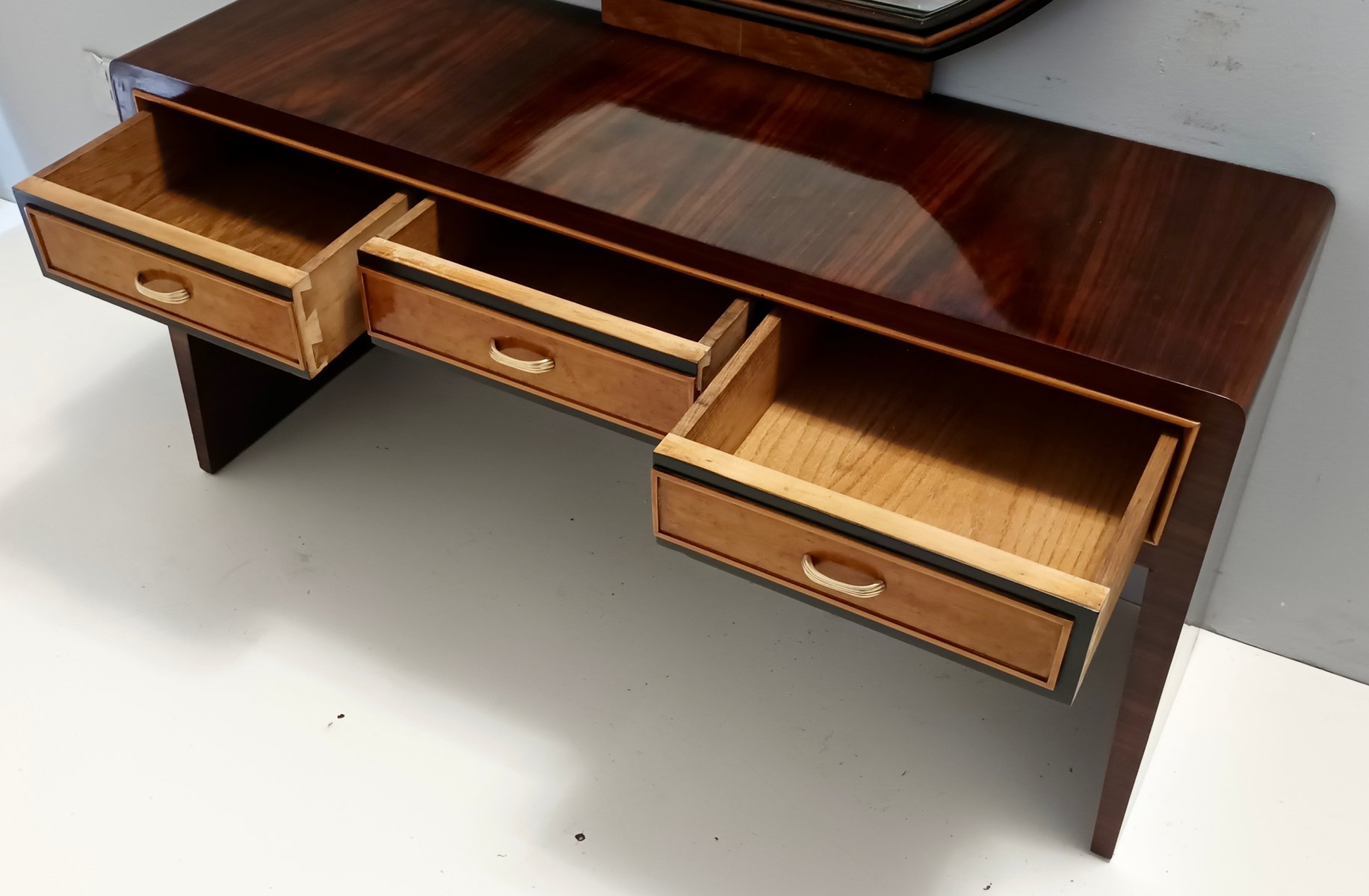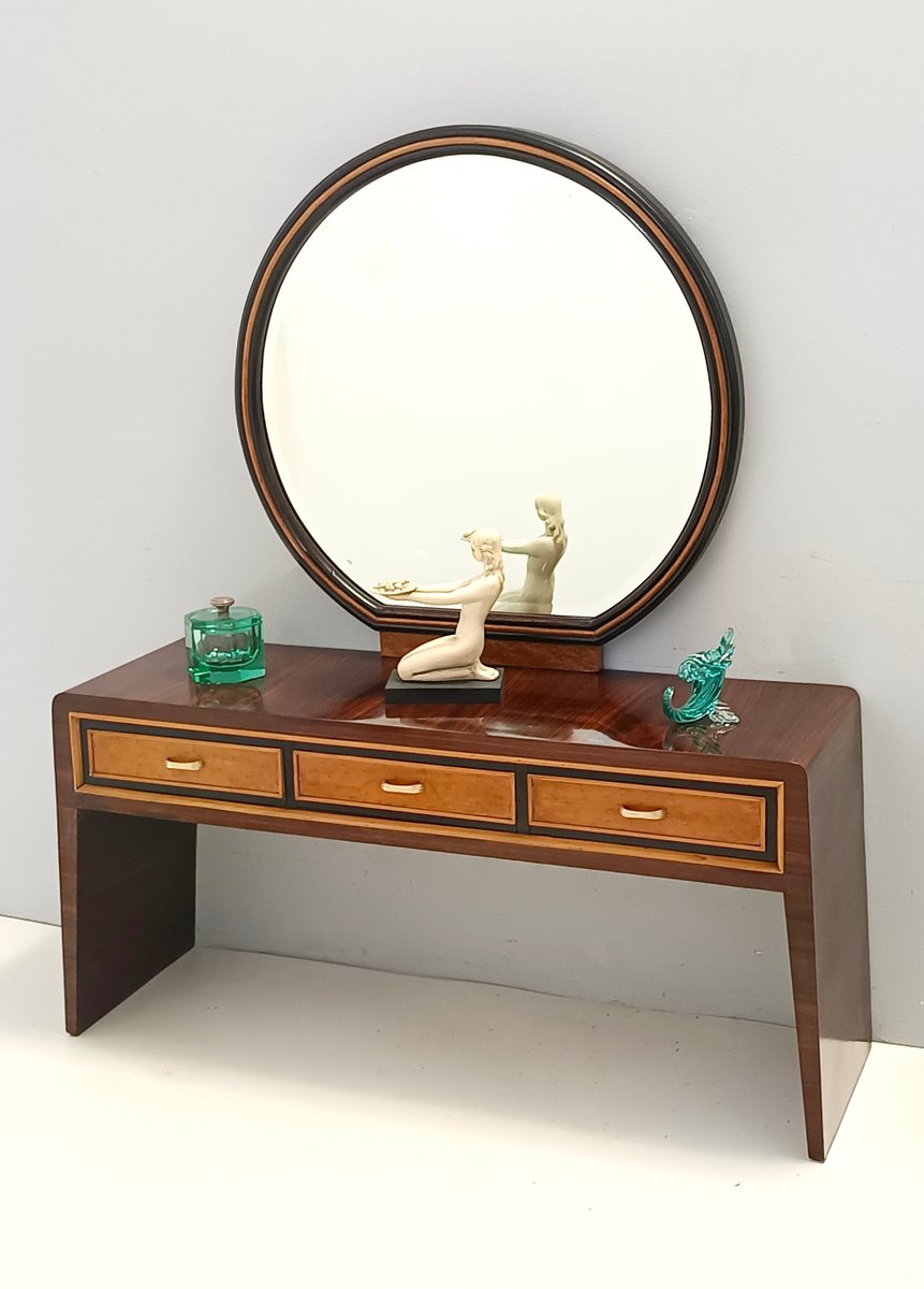 This console table / vanity table is made in ebonized walnut and birch. with brass handles.