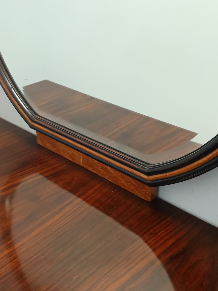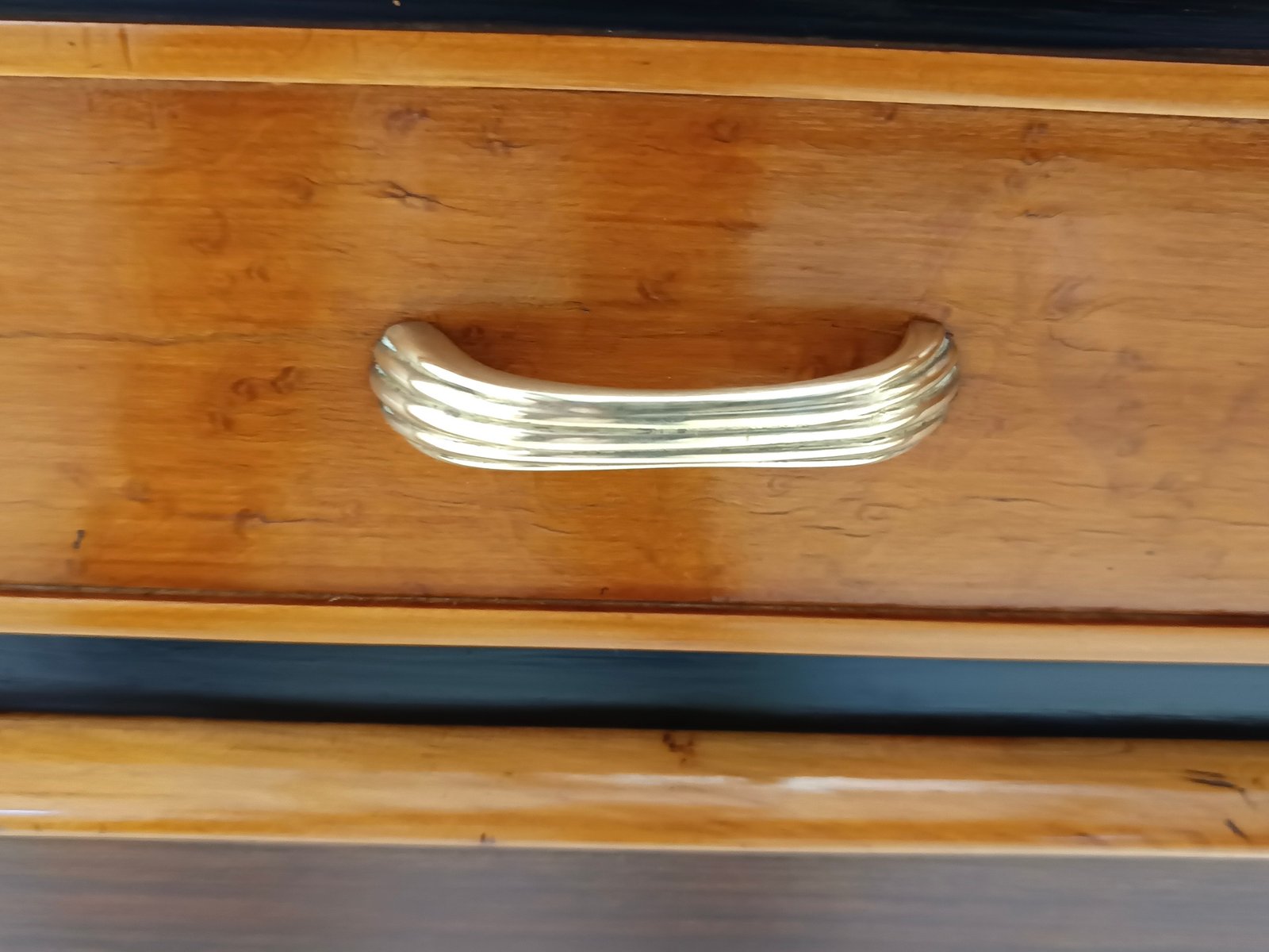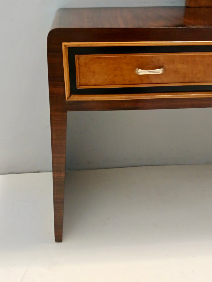 Dieser Konsolentisch / Waschtisch ist in ebonisierten Nussbaum und Birke gemacht. mit Messinggriffen.
