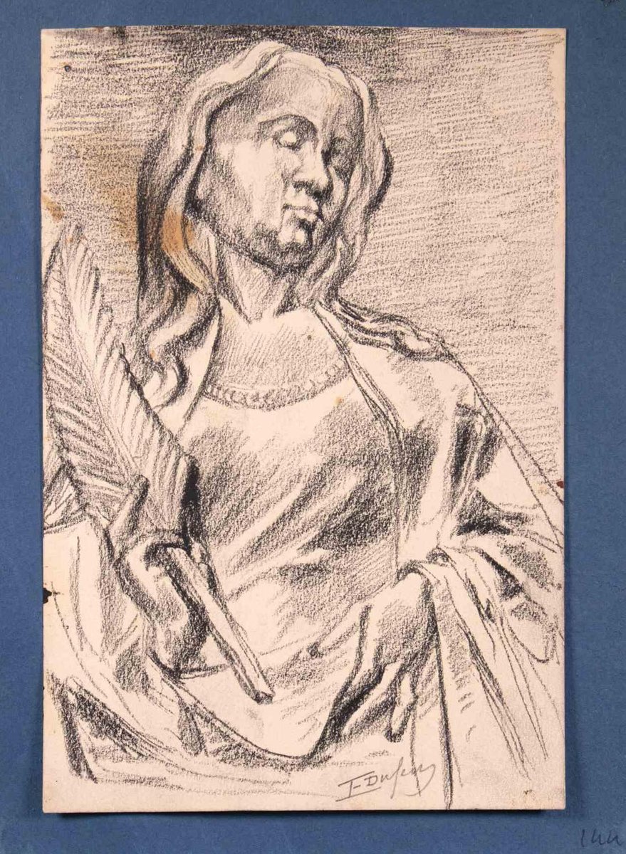 Edouard Dufeu, Portrait, Original Kohlezeichnung, spätes 19. Jh