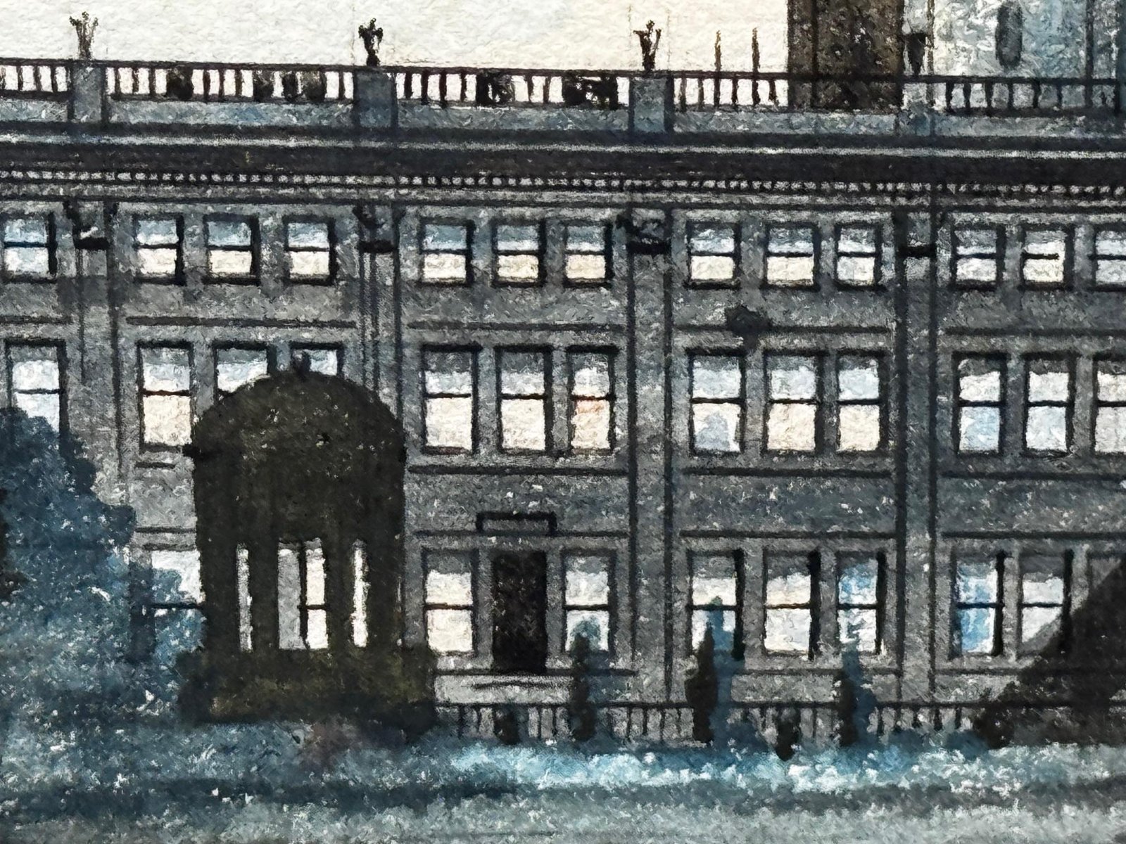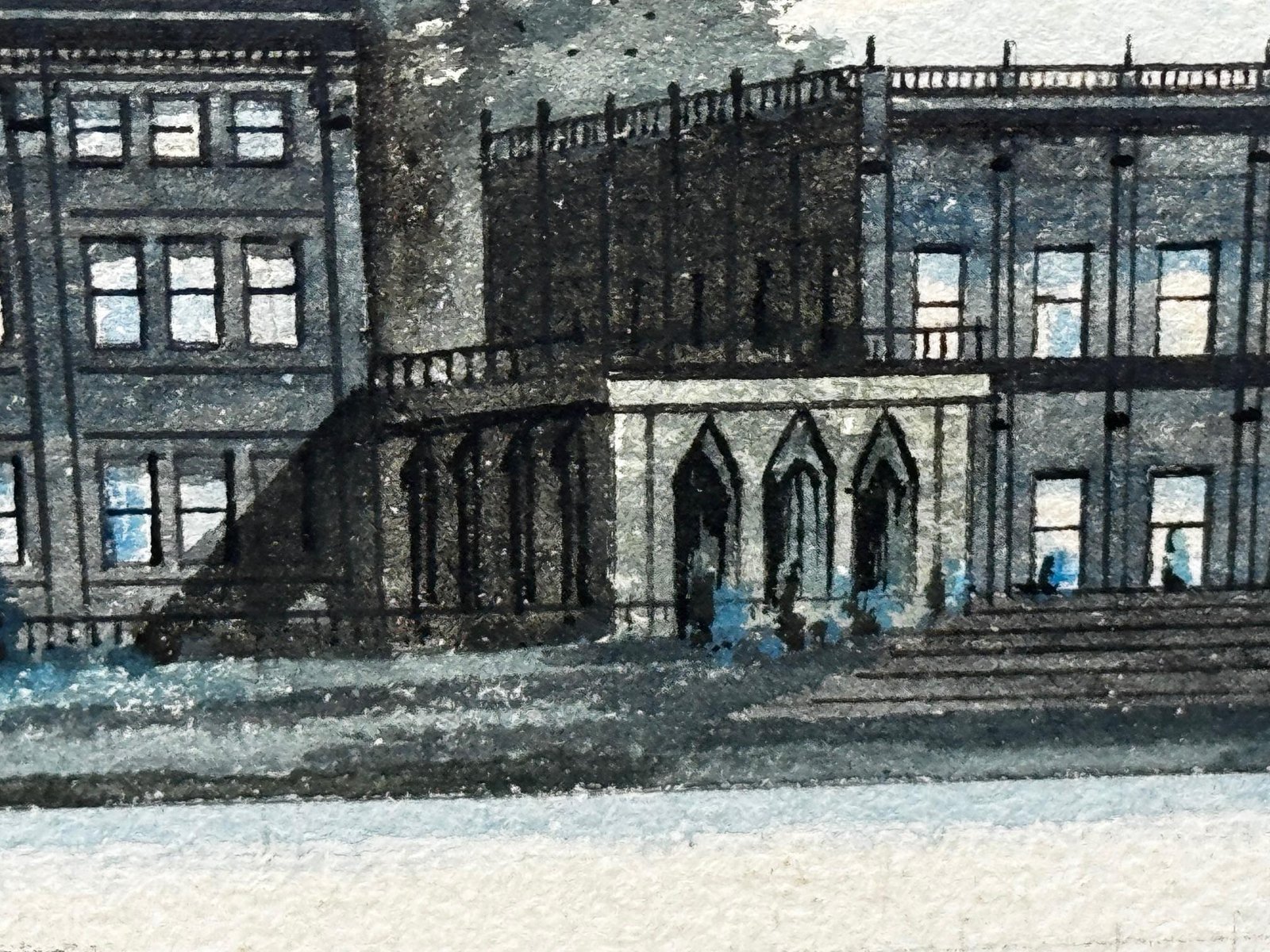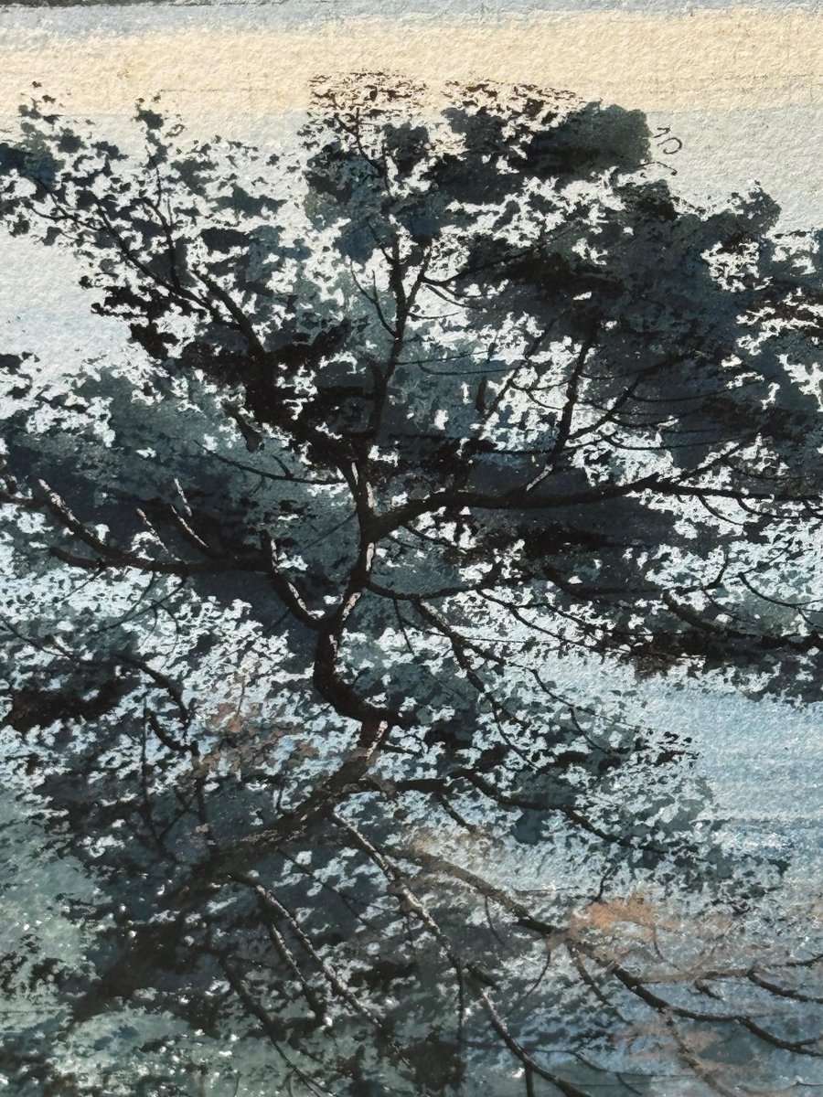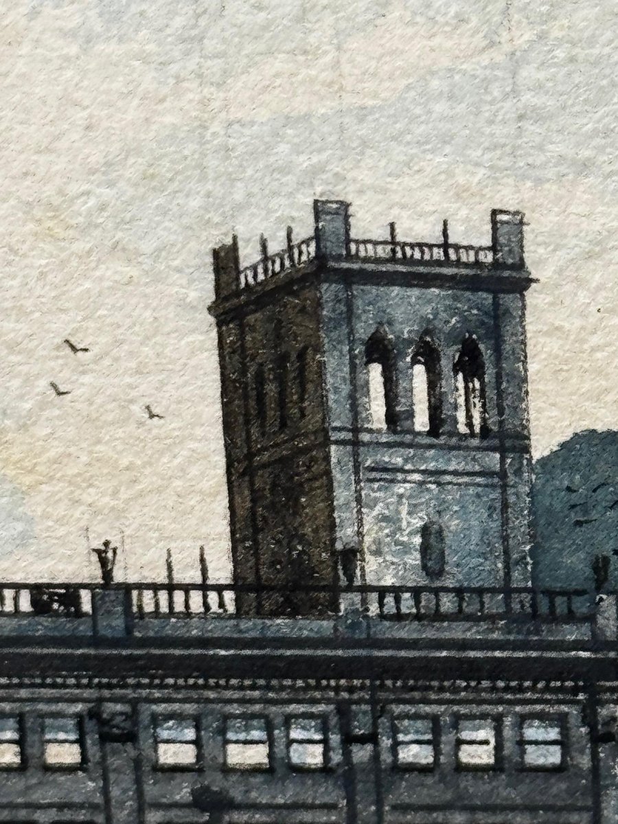 A Last View of Trentham Hall, Staffordshire (c.1912) Edward John Bishop Evans (1860–1923) Subject & Medium This evocative watercolour by Edward John Bishop Evans, painted circa 1912, captures not merely a landscape but a world on the brink of disappearance. Depicting Trentham Hall in Staffordshire, viewed across its reflective lake, the work stands as one of the last visual records of the Dukes of Sutherland’s great country seat, completed just before its demolition. Evans blends transparent washes, crisp pen-and-ink detailing, and subtle bodycolour highlights to achieve both atmosphere and precision. The result is at once an accomplished work of art and an irreplaceable historical document. Composition & Technique The composition is carefully balanced: Trentham Hall rises beyond the mirrored waters of the lake, framed by wooded slopes and softened skies. Evans’s use of watercolour washes creates depth and mood, while fine pen-and-ink lines articulate the architectural details. The restrained use of bodycolour provides luminosity, enriching textures and forms. The Story of Trentham Hall The history of Trentham stretches back nearly a thousand years: 1086: Recorded in the Domesday Book as the site of a priory. Post-Dissolution: The estate passed to the Leveson family, later merging with the Leveson-Gowers, who became Dukes of Sutherland. 18th century: Lancelot “Capability” Brown landscaped the grounds, introducing sweeping lawns, wooded valleys, and the serpentine lake. 19th century: Architect Sir Charles Barry remodelled the Hall into an Italianate palace with terraces, fountains, and formal parterres. By the Victorian and Edwardian eras, Trentham Hall was a seat of grandeur, hosting royalty, political leaders, and cultural figures. Yet industrial pollution from Stoke’s potteries and the cost of maintaining such a vast residence led to decline. By 1912, when Evans painted this serene view, demolition was imminent. Within a year the house was dismantled, leaving the gardens—designed by Brown and Barry—as the lasting legacy. Today those gardens flourish as one of Britain’s leading heritage attractions, while Evans’s painting serves as a poignant reminder of the lost Hall. Conclusion A Last View of Trentham Hall is more than a picturesque landscape: it is a memorial in watercolour, preserving the grandeur of Trentham Hall while linking it to the gardens that endure. For collectors of historic British watercolours, Staffordshire heritage, or country house art, this work represents a rare survival—an image of beauty at the threshold of loss. Signed Lower right, in watercolour: Edward J. B. Evans About the Artist Edward John Bishop Evans (1860–1923) was a Staffordshire painter and an influential art director in the region’s ceramic industry, contributing designs to Aynsley, Hammersley & Co, Coalport, and Maw & Co. He also documented the landscapes and architecture of Staffordshire in watercolour, many of which are now in museum collections and listed on Art UK. His dual role as artist and cultural historian ensures his work carries both artistic and documentary significance. Artistic & Cultural Importance Artistic mastery: Atmospheric washes with precise detailing. Historical witness: Among the final depictions of Trentham Hall. Cultural symbolism: A reflection of Britain’s fading country house era. Regional pride: A Staffordshire artist preserving a Staffordshire jewel. Frame Reframed in a gold-leaf scoop-profile Larson Juhl gilt moulded frame, paired with a fitted acid-free gold mount and protected by museum-quality AR70 anti-reflective glass. Elegant presentation with full conservation protection. Dimensions (Framed) 82 cm wide × 64.5 cm high × 4.5 cm deep Provenance Private estate, Staffordshire collection. Exhibited at the Lord Hill Museum Why Collectors Will Value It A unique record of one of Staffordshire’s greatest lost houses Both a fine artwork and a piece of history Signed by an important Staffordshire artist Elegantly presented and ready to hang