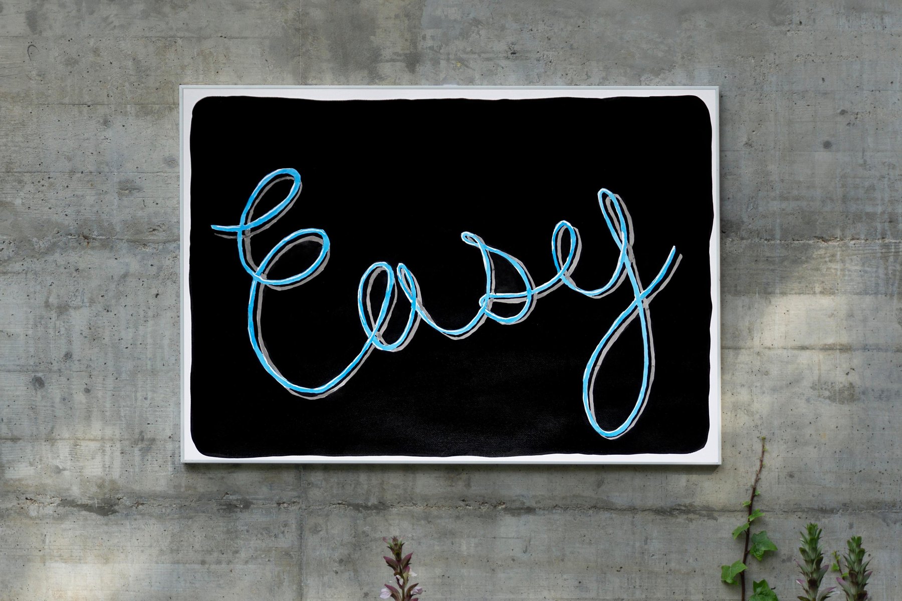 ''Easy'' is a hand-painted ink painting on high-quality 300g paper by artist Ryan Rivadeneyra. The hand-drawn render is reminiscent and inspired by the word art that Ed Ruscha produced in the 60's and 70's. Details: Title: Easy Medium: Ink on Paper Size: 100x70 cm Year: 2021 Ryan Rivadeneyra (Miami, 1984) is based in Barcelona, Spain. He has shown in Museums such as the MACBA, Tapies Foundation, and CA2M in Spain, and in galleries such as Flat Time House (London), Galerie Juliette Jongma (Amsterdam), Helmhaus (Zurich), Casa Hoffman (Bogota), or Art Sonje (Seoul).