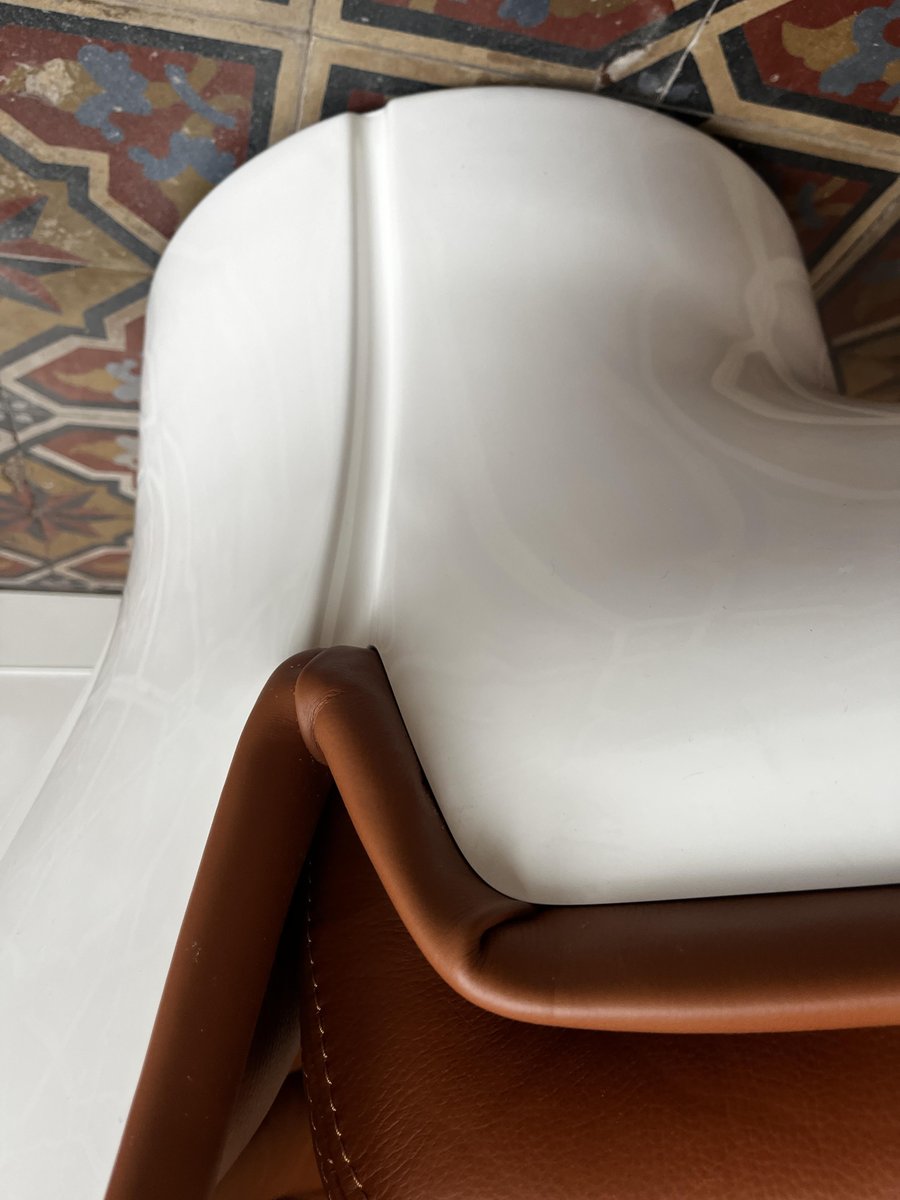 Als zweiter von drei Brüdern wurde Designer Cesare Colombo - besser bekannt als Joe - im Jahr 1930 in Mailand geboren. Sein Vater Giuseppe war ein Gewerbebetreibender, der eine Bandfabrik erbte und diese zu einem Produktionsort für elektrische Leiter umwandelte. Colombo wandte sich relativ spät dem Design zu, nachdem er den Großteil seiner Zwanziger mit Malerei und Bildhauerei verbracht hatte. Anfang der Fünfziger studierte er an der Accademia di Belle Arti in Brera, Mailand. Während dieser Zeit trat er dem Movimento Nucleare bei, einer Avant-Garde Kunstbewegung, die 1951 von Enrico Baj und Sergio Dangelo gegründet wurde. Die Gruppe wurde angestachelt von der weltweiten Angst vor der Atombombe und hatte zum Ziel, die starren Grenzen traditioneller Malerei aufzubrechen.