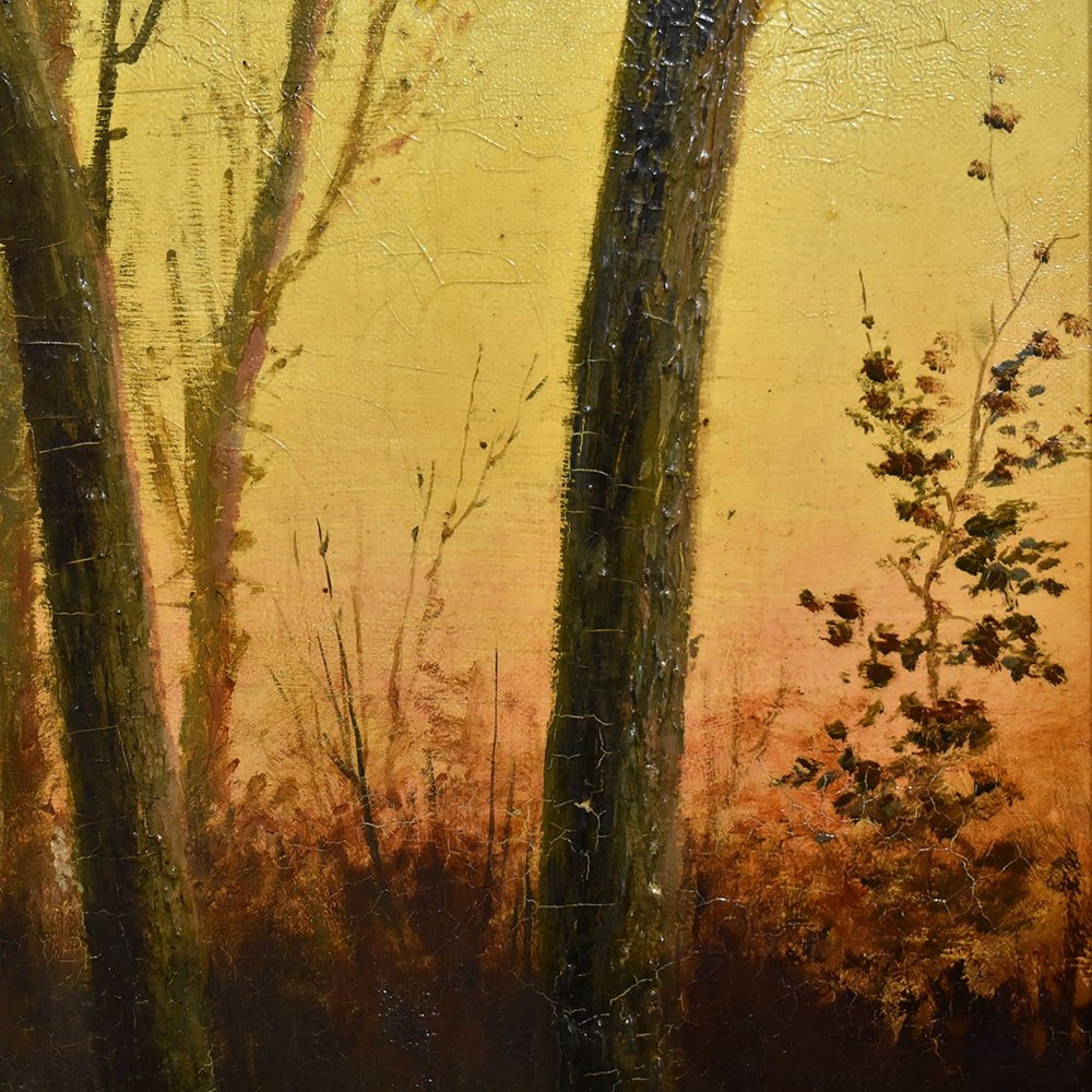 Antique Painting, Fall Landscape painting, scenery painting which represents a Forest a Oil on canvas from the nineteenth century.