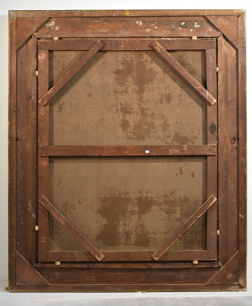 Landscape art work, XIX Century. This antique oil painting has a beautiful and original golden frame realised in the 1800s.