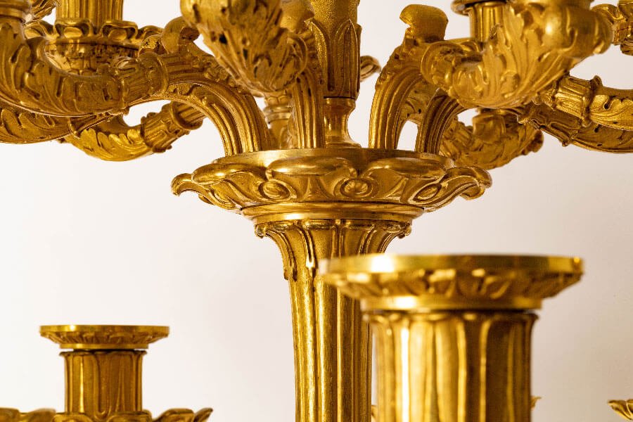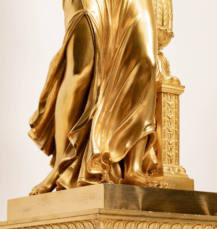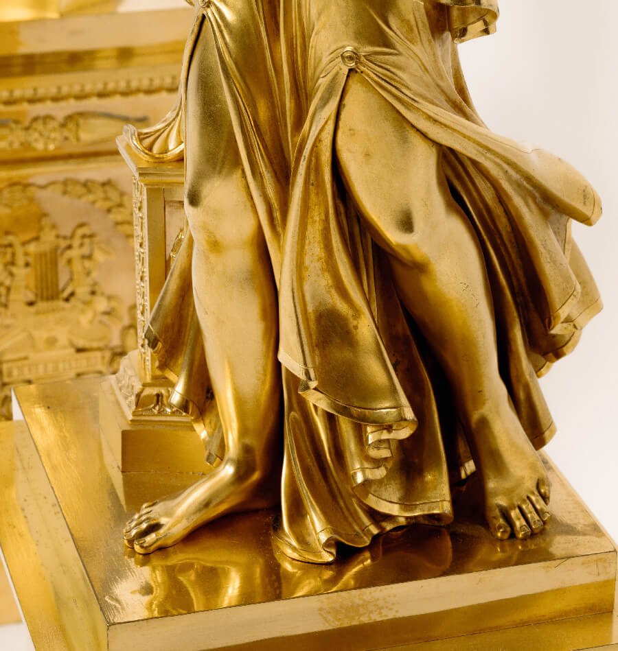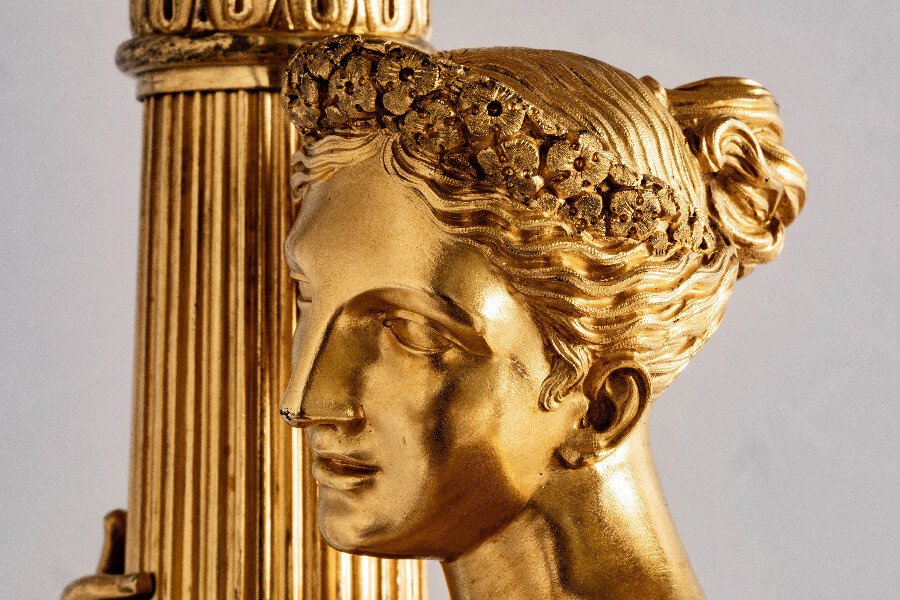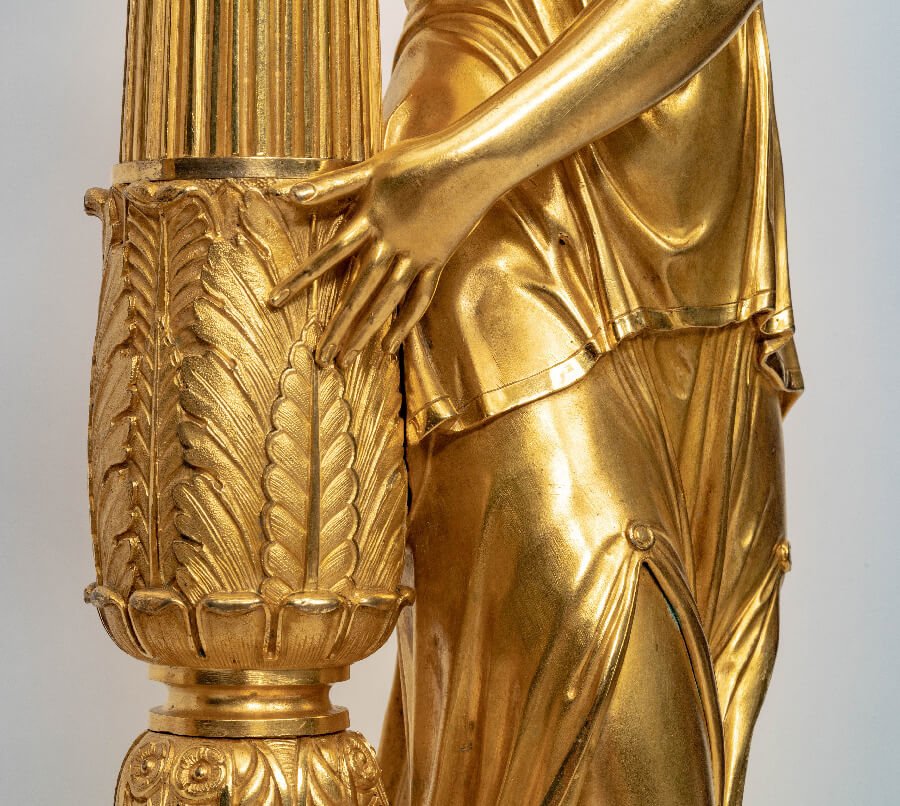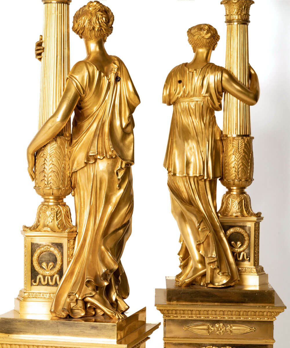 The use of classical Muses as supporting figures for candelabra was a particularly appreciated motif in 19th-century French decoration, fully consistent with neoclassical aesthetics and the iconographic repertoire of the Empire period.