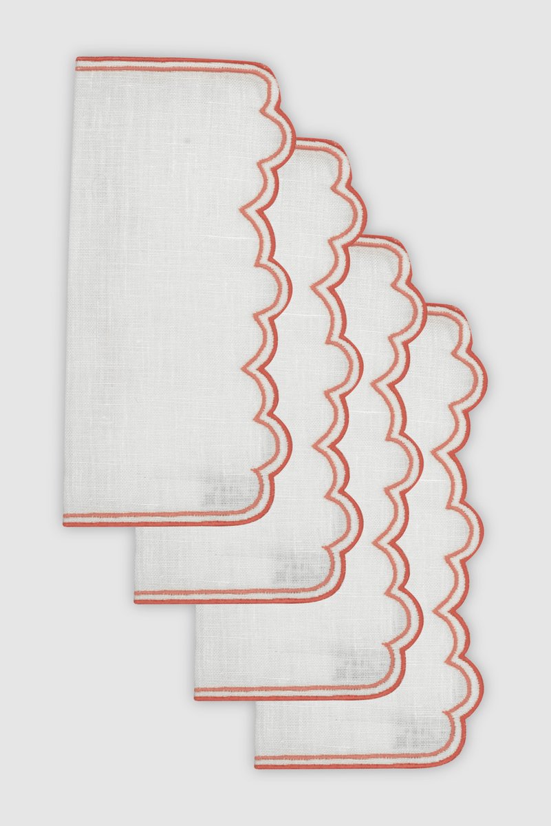 Escamas Cocktail Servietten aus Korallenbesticktem Leinen von Los Encajeros, 4er Set