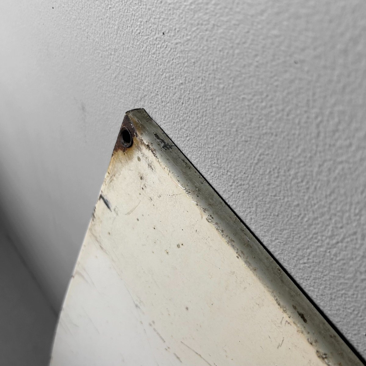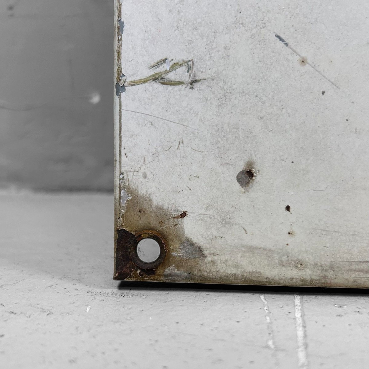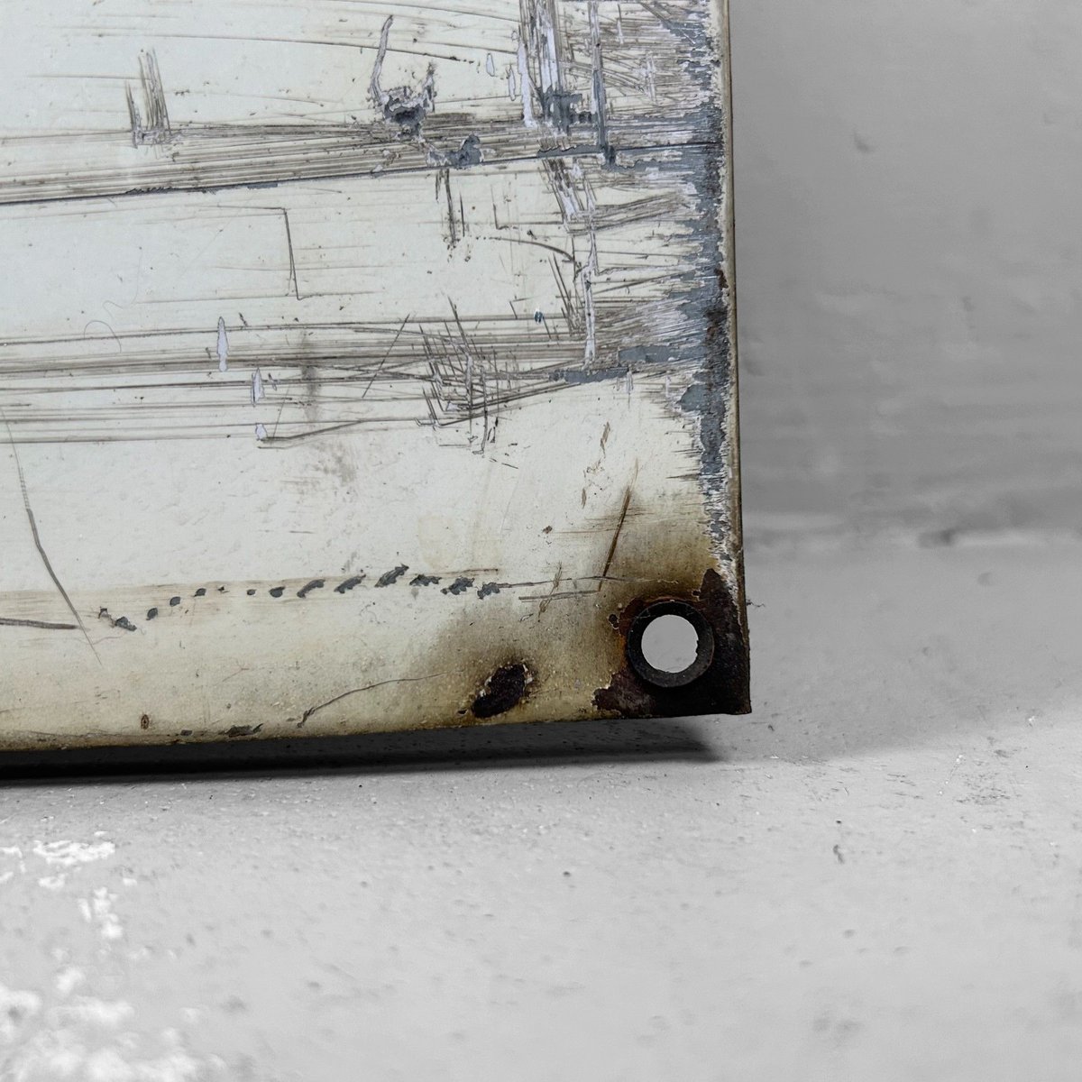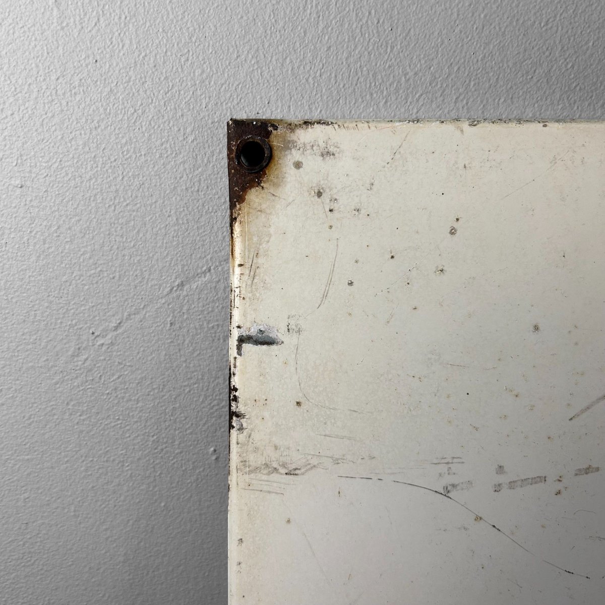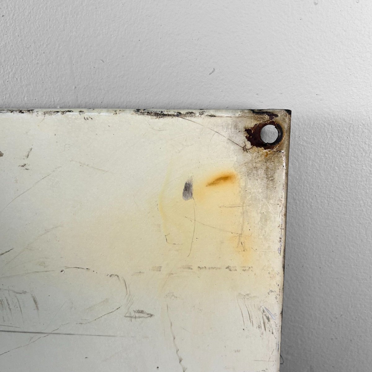 Das Schild ist in gutem Zustand und weist normale Alterungsspuren auf, wie auf den Fotos zu sehen, die seinen authentischen Charakter unterstreichen.