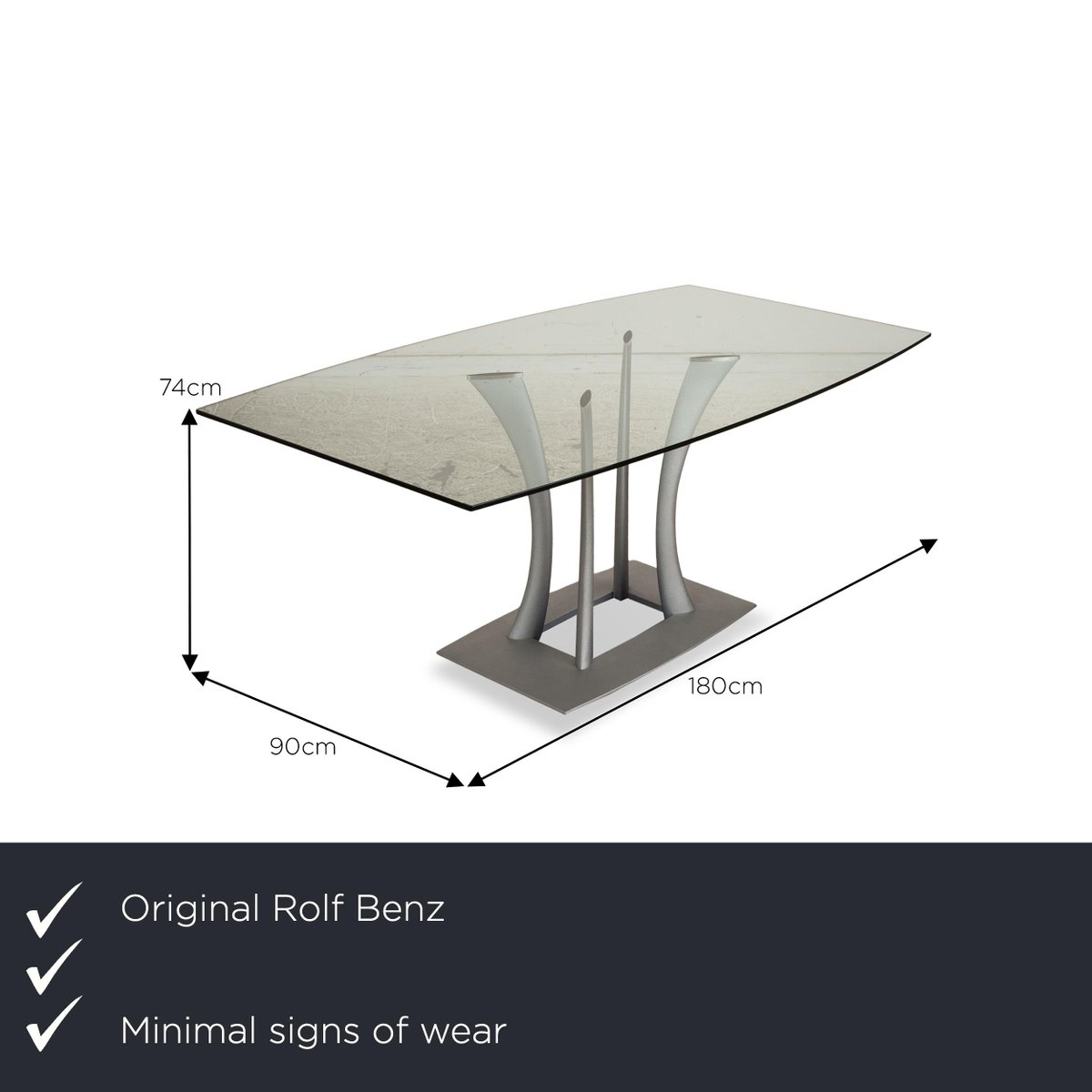 Esstisch aus Glas in Silber von Rolf Benz