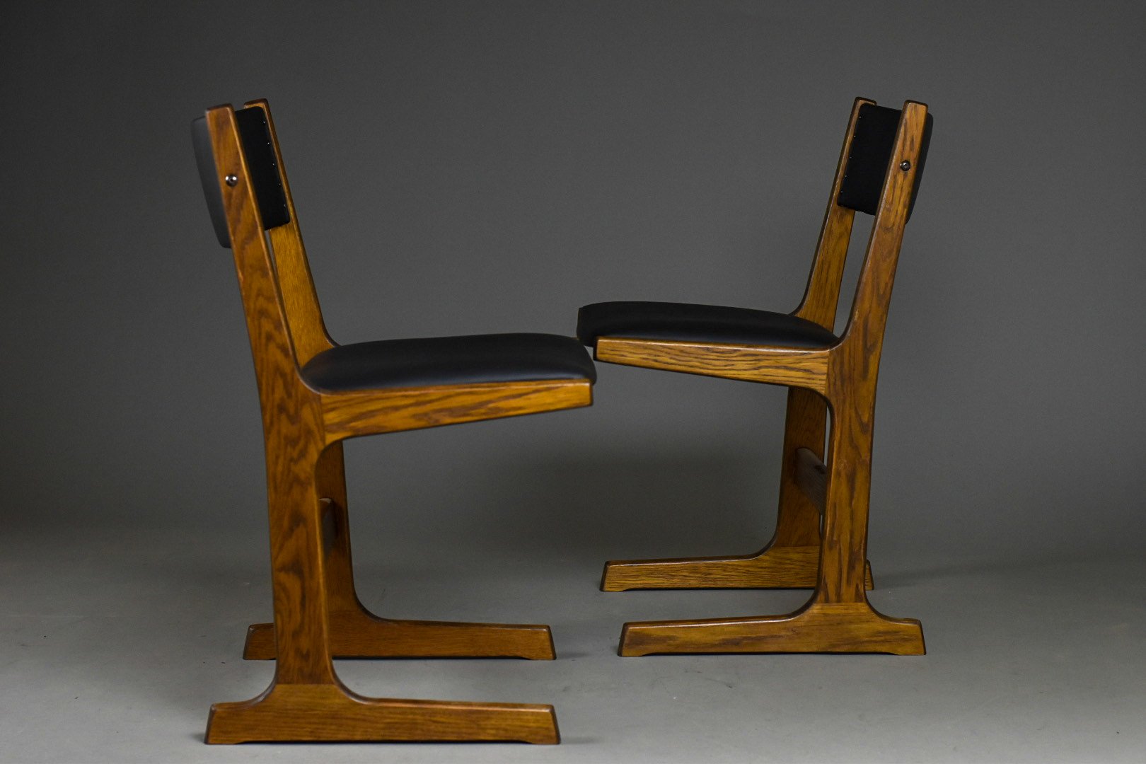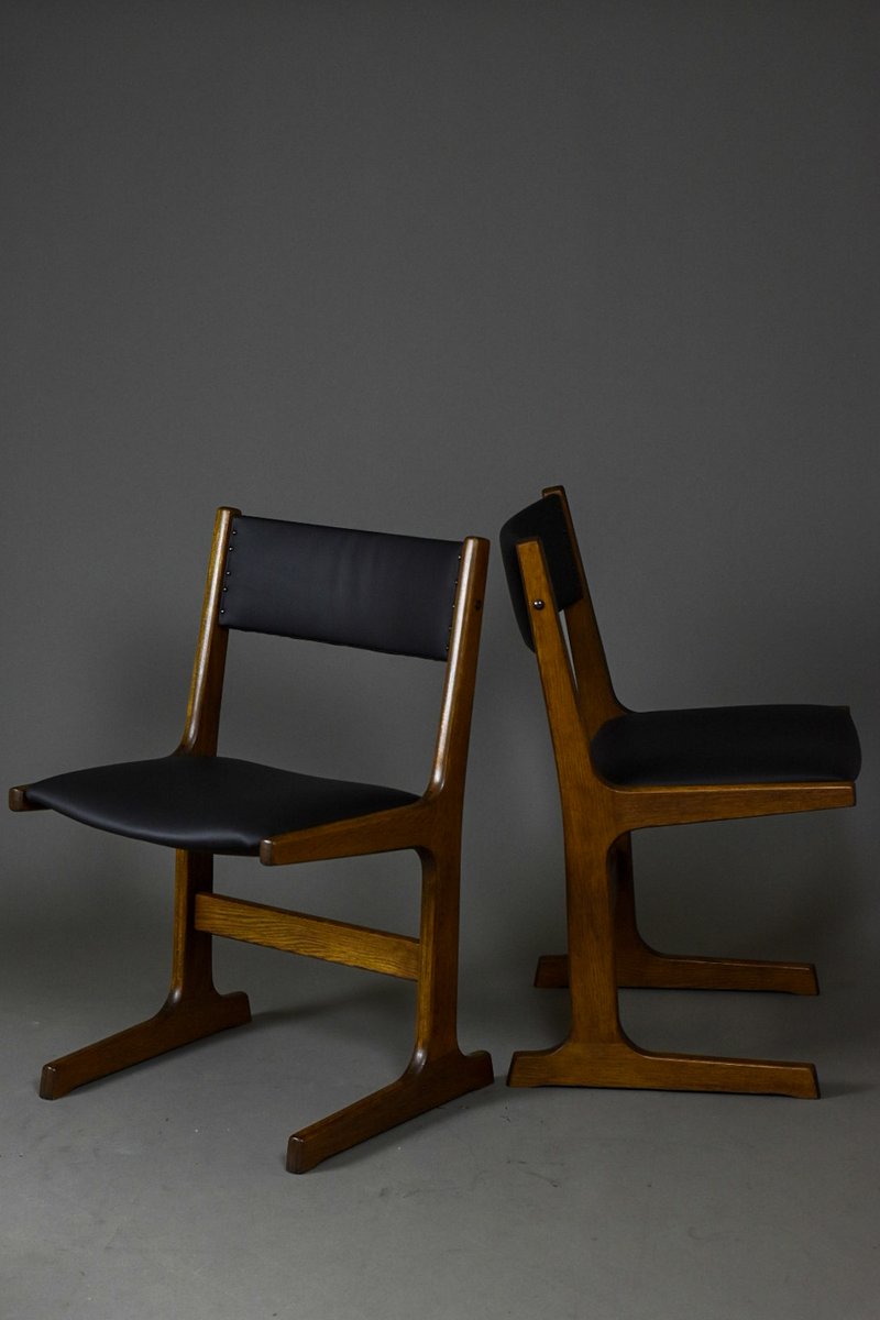 Diese Stühle verkörpern die Essenz des modernen skandinavischen Designs - minimalistisch in der Form und kompromisslos in Qualität und Komfort. Die Konstruktion zeichnet sich durch ihr charakteristisches T-förmiges Untergestell aus, das für bemerkenswerte Stabilität und Festigkeit sorgt und gleichzeitig die Leichtigkeit des dänischen Designs bewahrt.