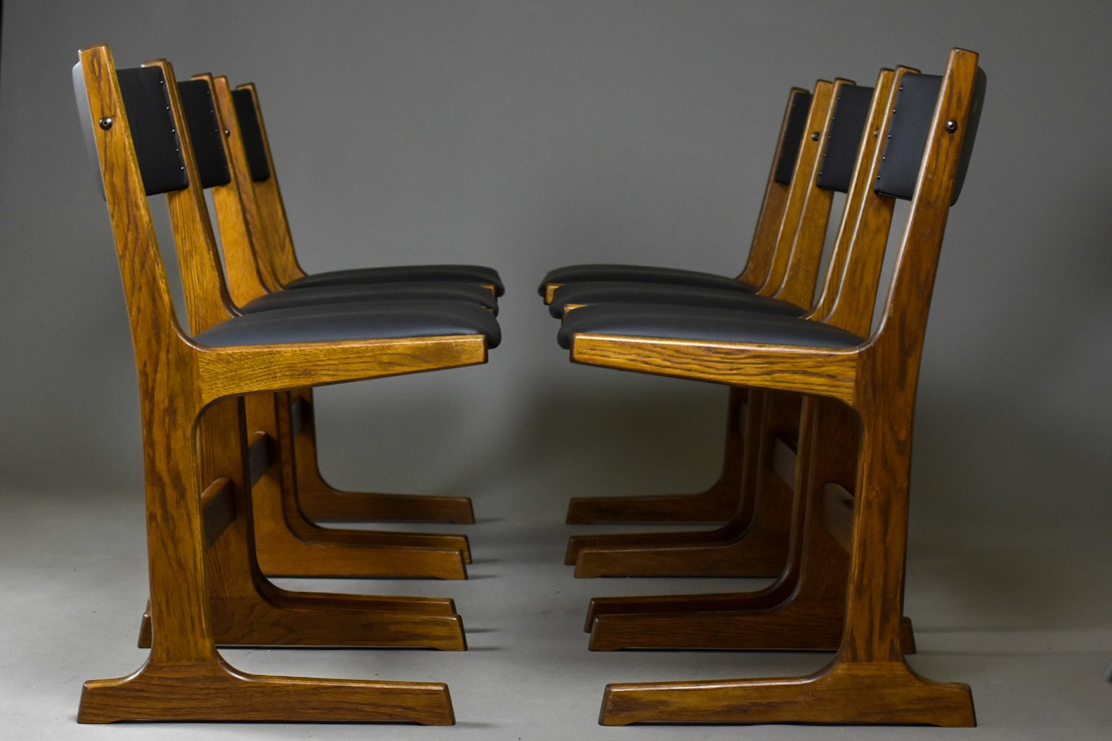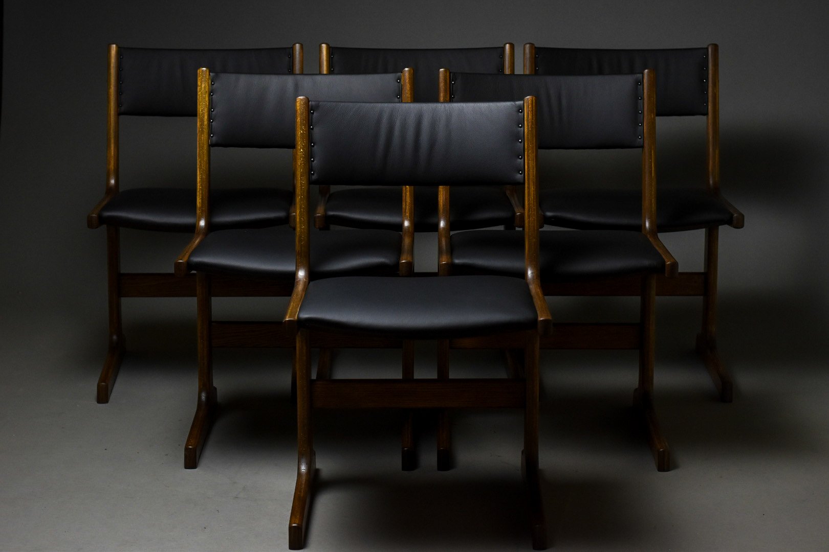 • the seats and backrests have been reupholstered with premium Italian full grain leather – supple, breathable, and left with its natural surface uncorrected. This ensures both exceptional durability and a unique, authentic character for each chair.