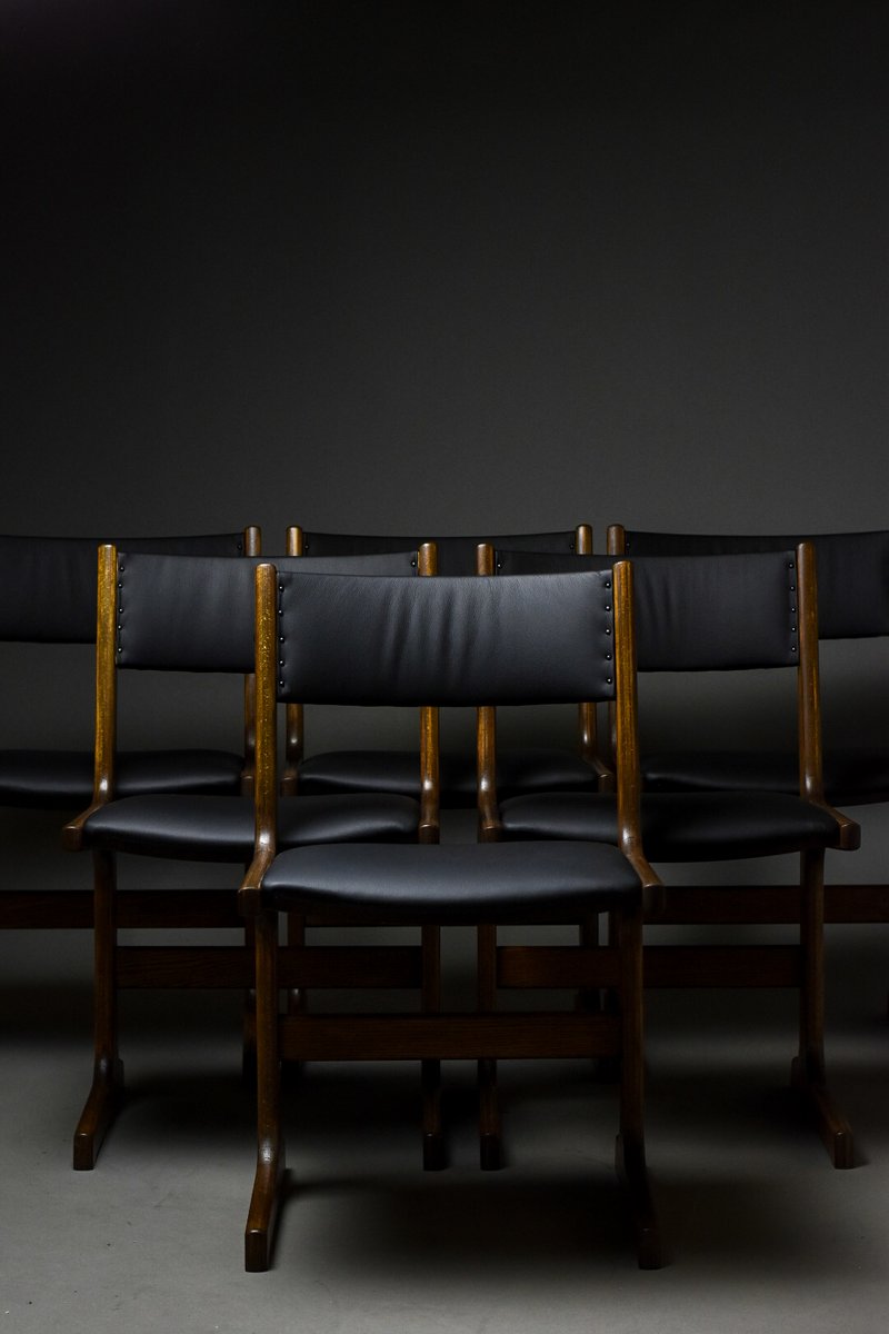 These chairs represent the essence of Scandinavian modern design – minimalist in form yet uncompromising in quality and comfort. The construction stands out with its distinctive T-shaped base, providing remarkable stability and strength while maintaining the lightness of Danish design.