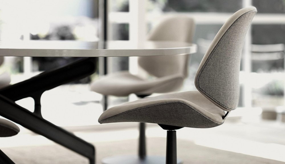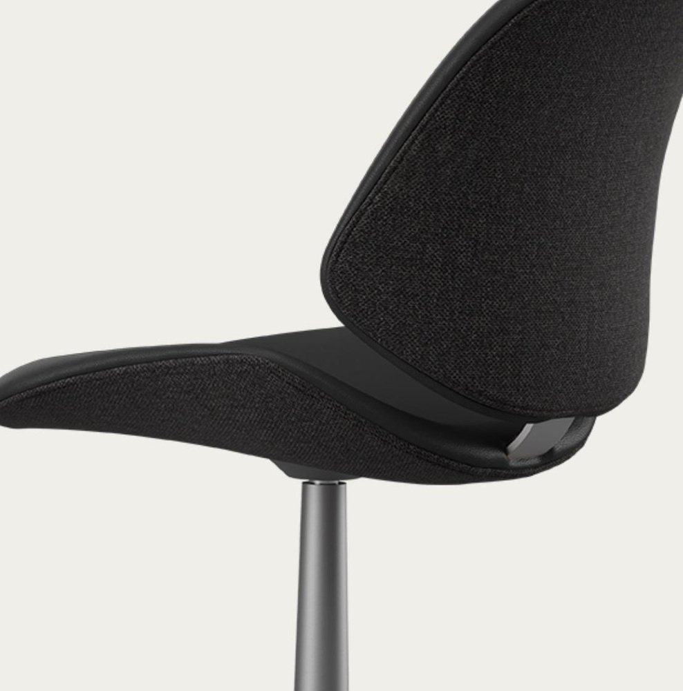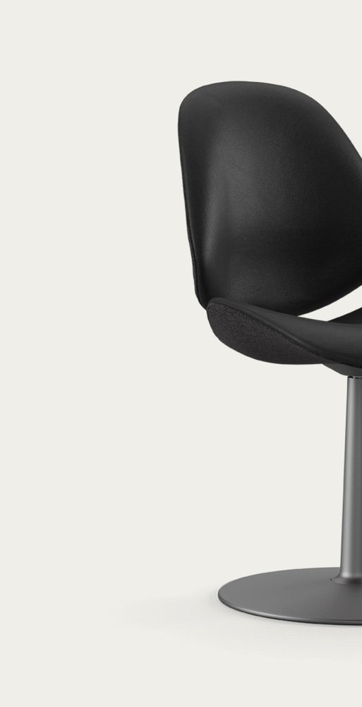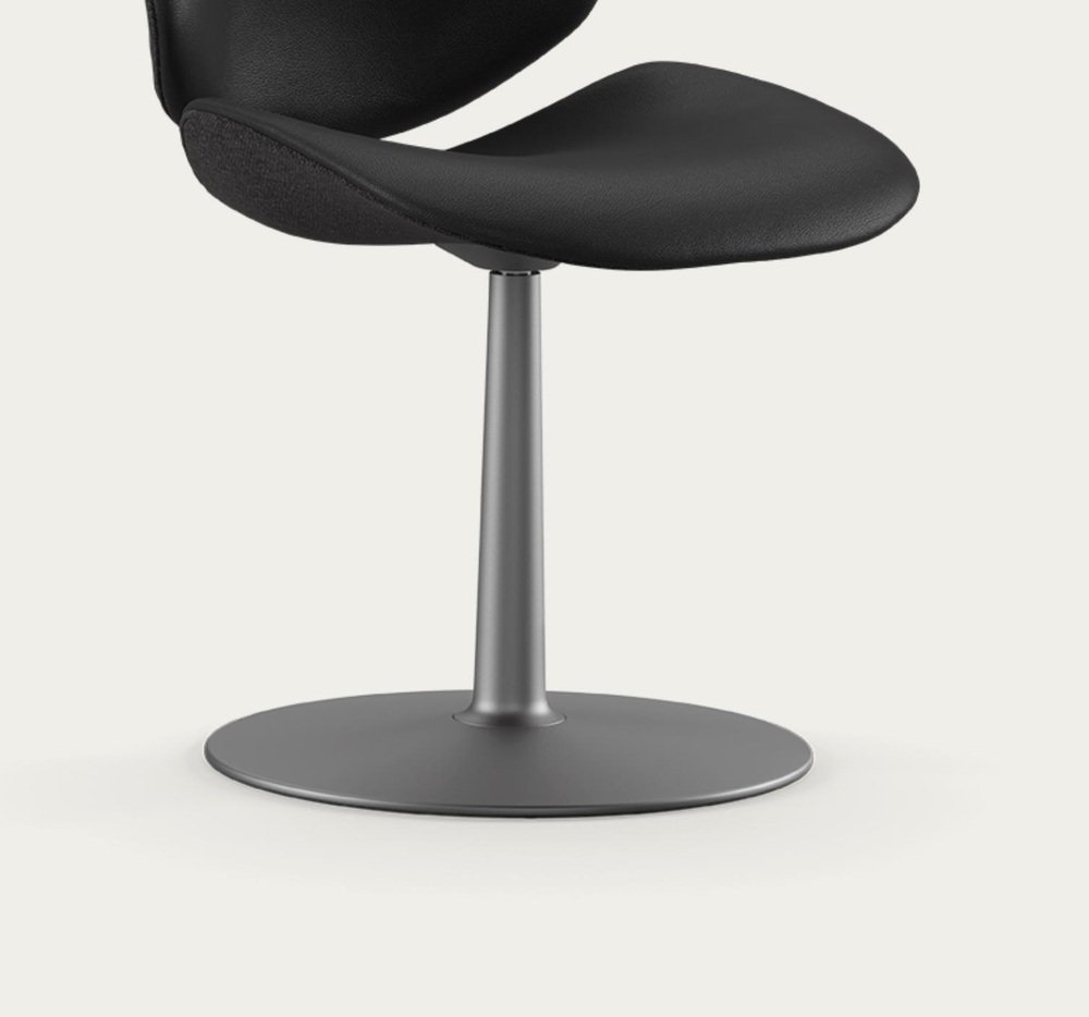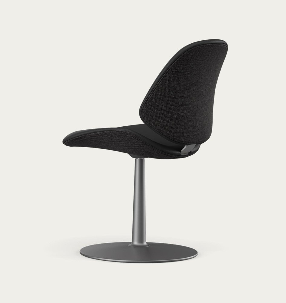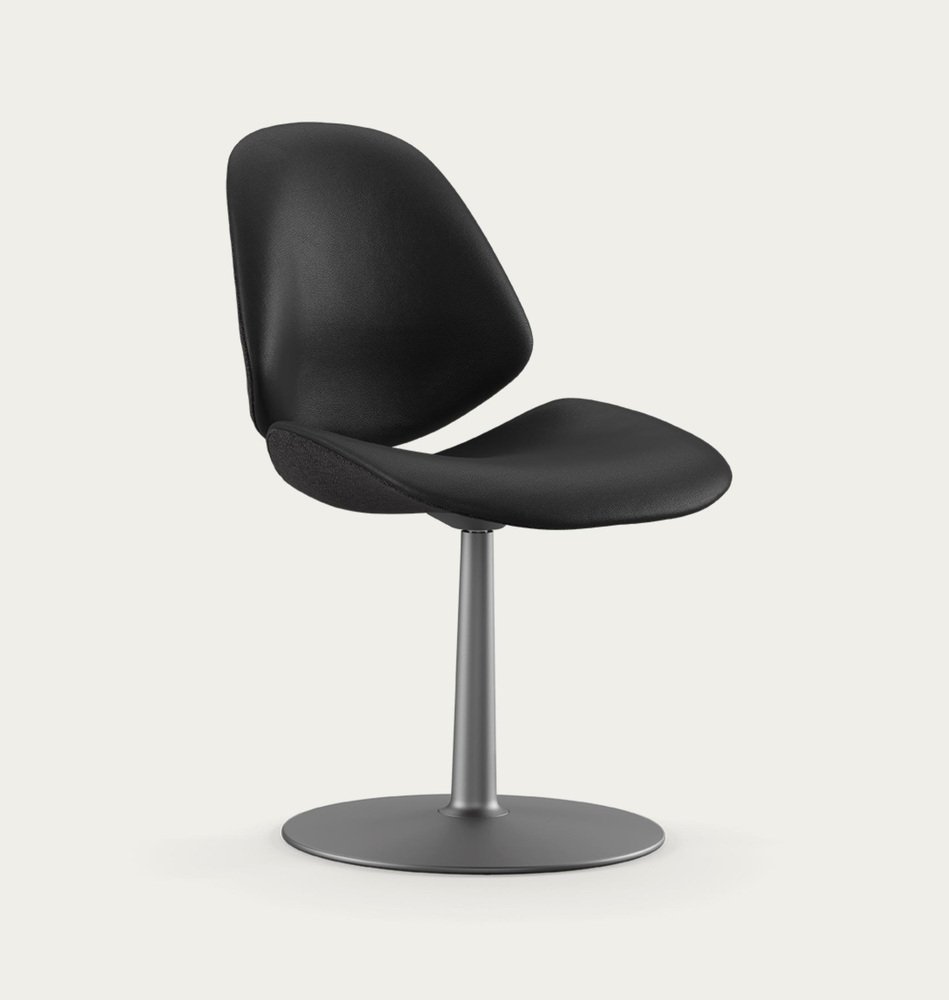Salto and Sigsgaard Council Family Salon Chair Base: Graphite, Duo Upholstery: Front: Prestige Black + Back: Re-Wool 198 For One Collection Discover the Council Salon Chair Swivel Base, the perfect seating solution for meeting, dining or waiting needs. Designed with versatility in mind, this chair is built on a sturdy swivel base made from cast aluminum and coated in an alluring graphite powder finish. The chair provides the ultimate comfort experience with the choice of textile, leather or a striking combination of both for the chair’s upholstery. Enhance the chair’s already elegant silhouette by selecting contrasting colors or materials for the interior and exterior surfaces. Crafted with precision, the Council Salon Chair Swivel Base is sophisticated and refined, making it the ideal choice for any modern setting. Design by: Salto&Sigsgaard Year: 2021 Dimensions: W 52cm x D 60cm x H 86cm Seat height: 47cm Specifications Model and material: KT 8035 Seat and back: Fully upholstered. Pedestal base: Cast aluminum incl. swivel. in grafit. Upholstery: Fabric or leather or in combination.