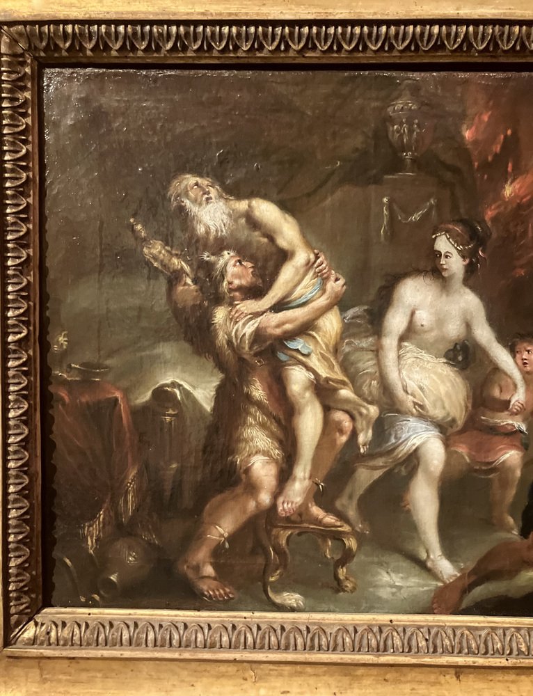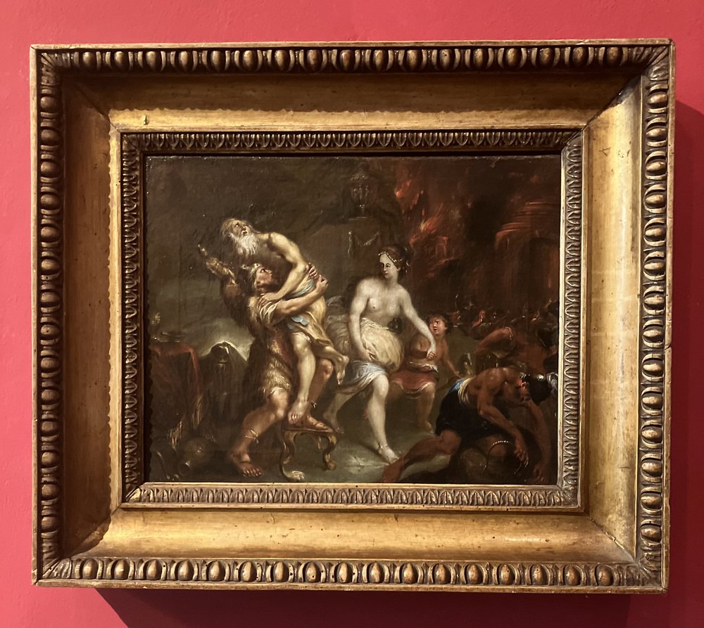 Symbolizing human resilience, it evokes the theme of salvation. The figure of Anchises embodies nobility and sacrifice, blending classical roots with the Flemish artistic context. Aeneas's flight represents renewal and cultural continuity, themes cherished by 17th-century artists.