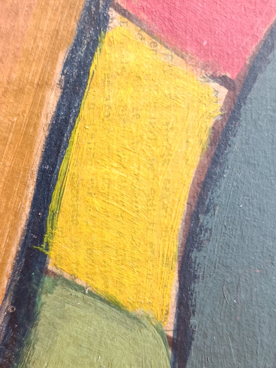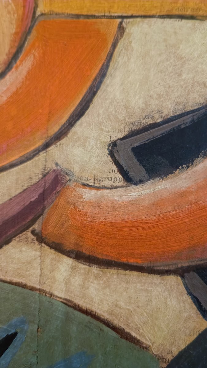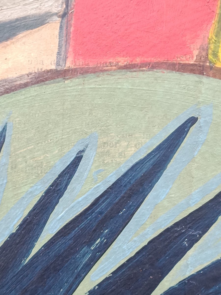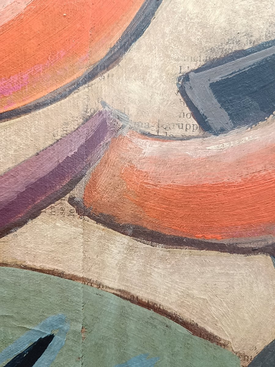 Zum Beispiel, dass er mehrere Versionen eines Themas auf verschiedenen Untergründen wie Papier, Leinwand oder Holz anfertigte. Natürlich gab es auch die Rohvorlage. Meistens wurden sie mit Bleistift angefertigt (viele von ihnen kamen zur Versteigerung). Aber er hat auch Bilder auf Holz gemalt und Kunstfiguren aus Holz hergestellt. Dieses "Fahrradmännchen" hat er ebenfalls auf einer Holztafel gemalt (versteigert) und war bei weitem nicht so "punktgenau", wie man meinen könnte. Als Beweis für mehrere Versionen eines Themas fand ich einen "Tacchino" (Türkei), von dem er mehrere Versionen anfertigte - sogar einen Wandteppich. Warum sollte er also nicht auch eine Version von einer Zeitung wie der meinen anfertigen(?).