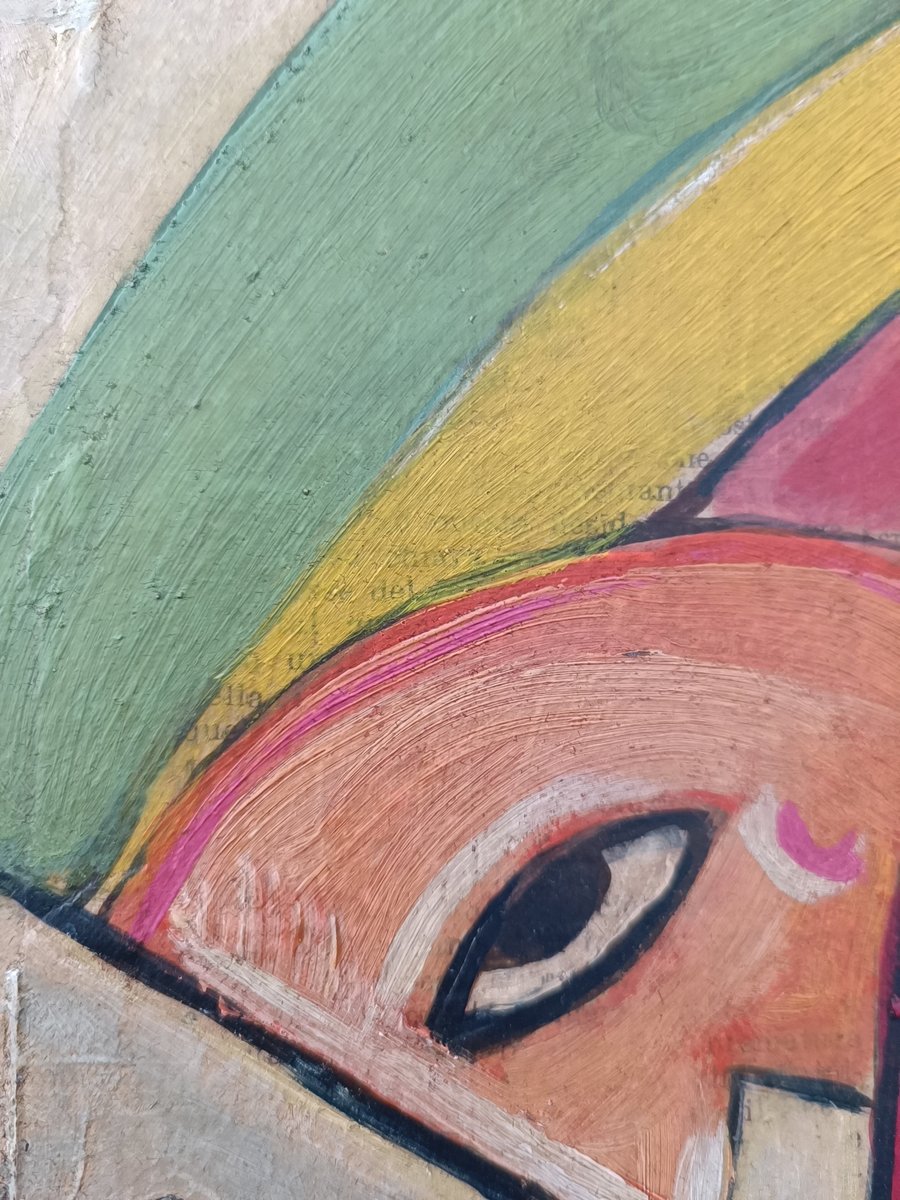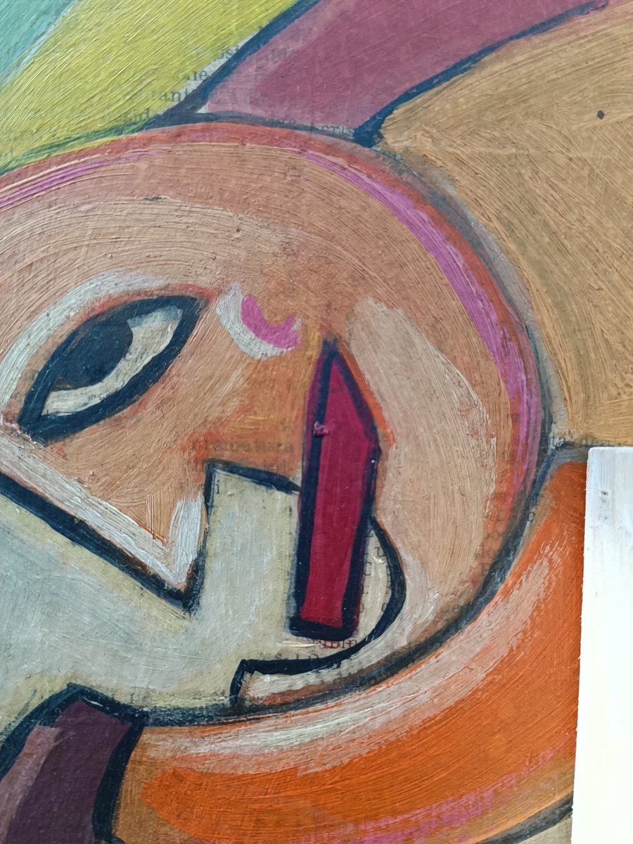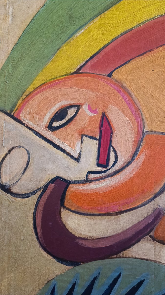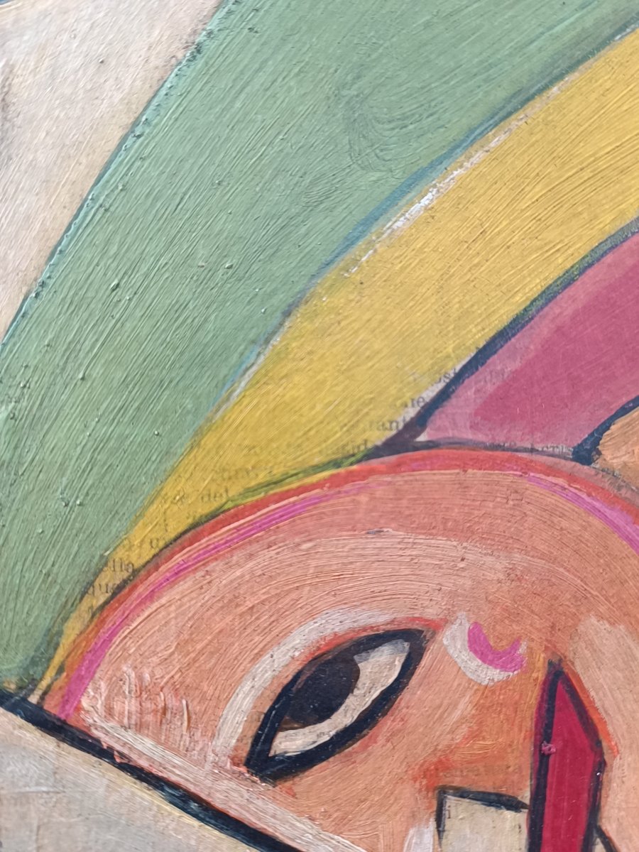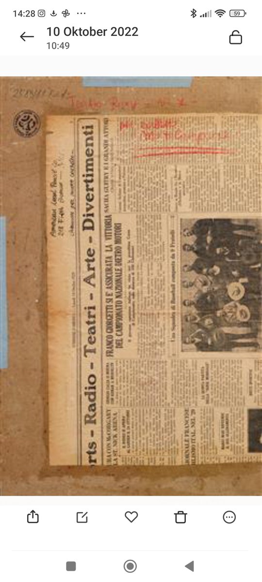 Zum Beispiel, dass er mehrere Versionen eines Themas auf verschiedenen Untergründen wie Papier, Leinwand oder Holz anfertigte. Natürlich gab es auch die Rohvorlage. Meistens wurden sie mit Bleistift angefertigt (viele von ihnen kamen zur Versteigerung). Aber er hat auch Bilder auf Holz gemalt und Kunstfiguren aus Holz hergestellt. Dieses "Fahrradmännchen" hat er ebenfalls auf einer Holztafel gemalt (versteigert) und war bei weitem nicht so "punktgenau", wie man meinen könnte. Als Beweis für mehrere Versionen eines Themas fand ich einen "Tacchino" (Türkei), von dem er mehrere Versionen anfertigte - sogar einen Wandteppich. Warum sollte er also nicht auch eine Version von einer Zeitung wie der meinen anfertigen(?).