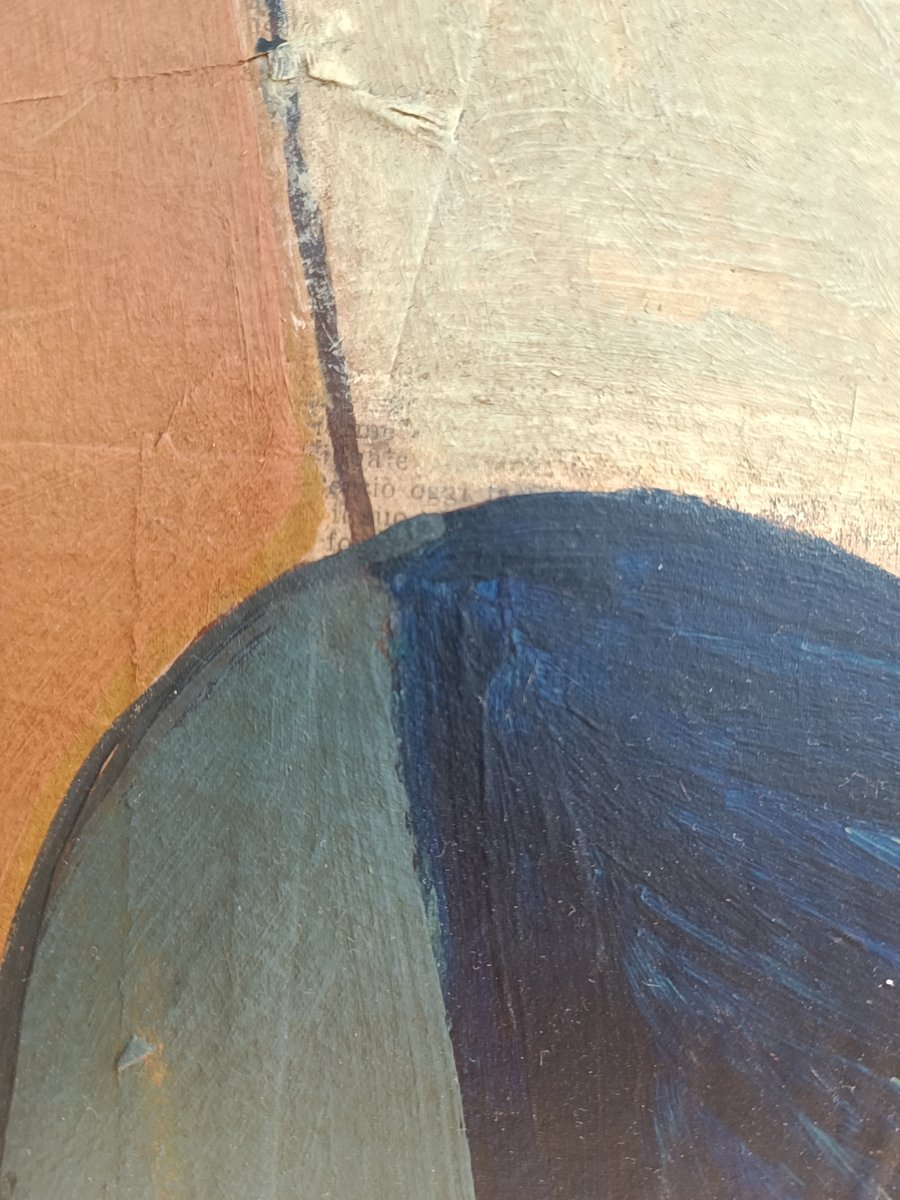 Fortunato Depero made this cyclist in 1925 most likely in France. This version is made on a newspaper which could be La Figaro or La Gazzetta della sport from that period (1925). The newspaper is glued on a pulp paper background.