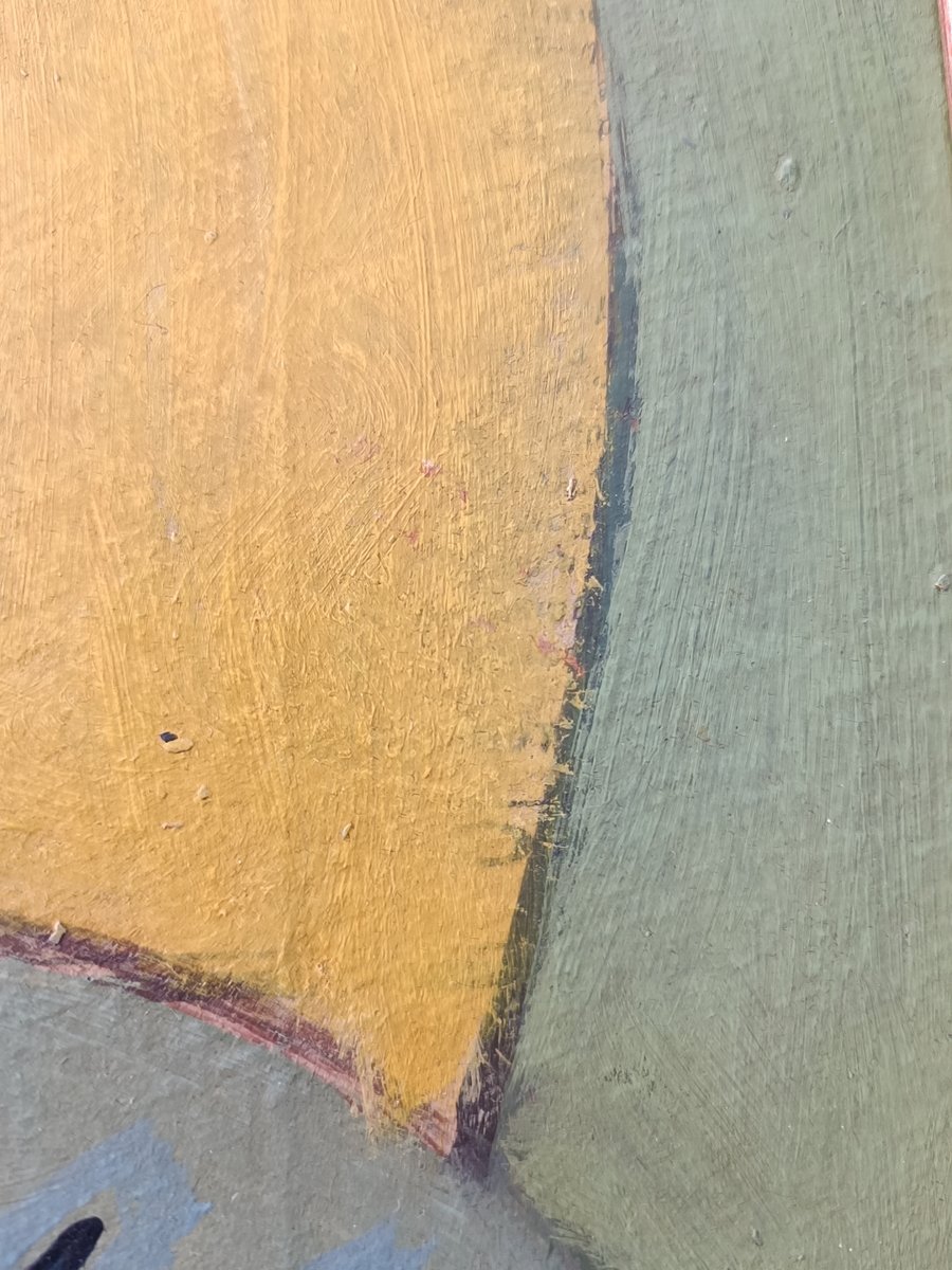 Bei der Recherche zu diesem Kunstwerk fiel mir auf, dass das "Werk" größer war als jetzt. Es wurde an den Seiten ausgeschnitten. Wahrscheinlich, damit es in diesen Rahmen passt. Der oder die früheren Besitzer hatten damals keine Ahnung, wer Depero war. Kein Internet. Keine Connaisseurs. Keine Informationen. Nur ein lustiges Gemälde eines Radfahrers.
