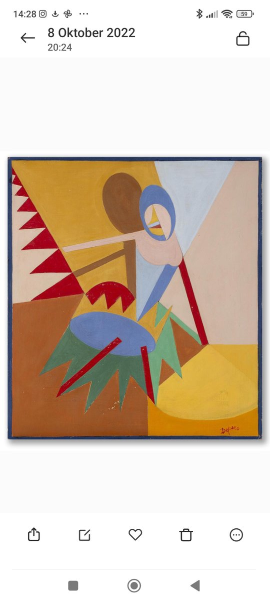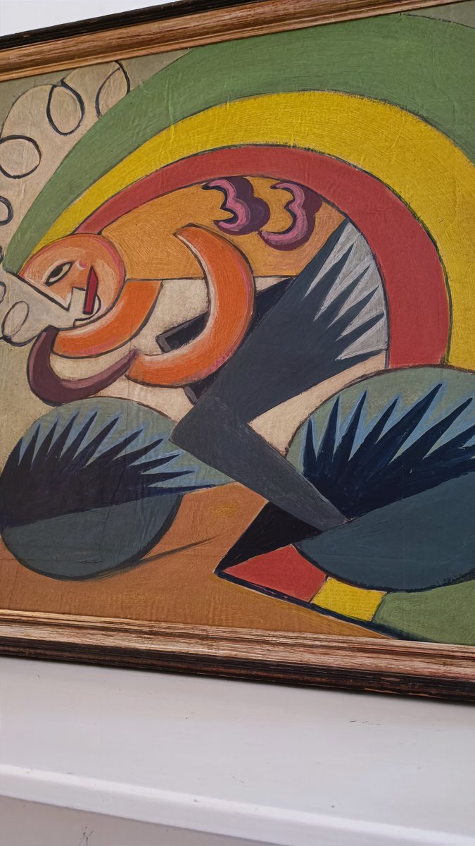 Ich kaufte dieses Gemälde, als ich ebenfalls keine Ahnung hatte. Es war lange Zeit in meinem Besitz, während ich dachte, es hätte etwas mit dem Bauhaus zu tun. Ein italienischer Werbefotograf wies mich darauf hin, dass es sich um Fortunato Depero handelt. Ich hatte noch nie von diesem Künstler gehört.
