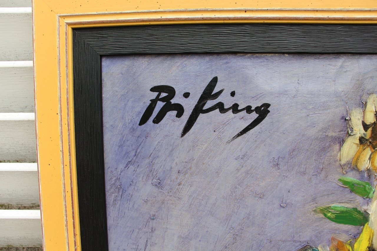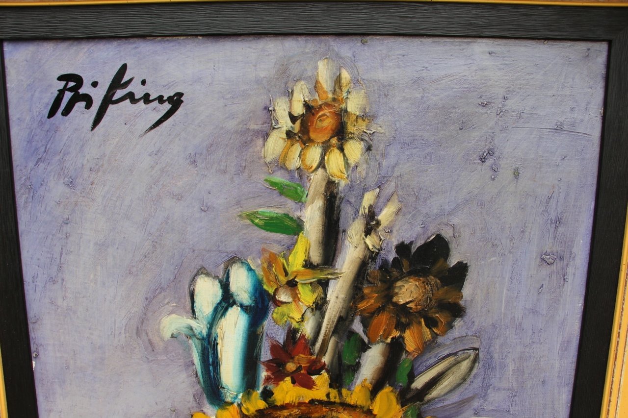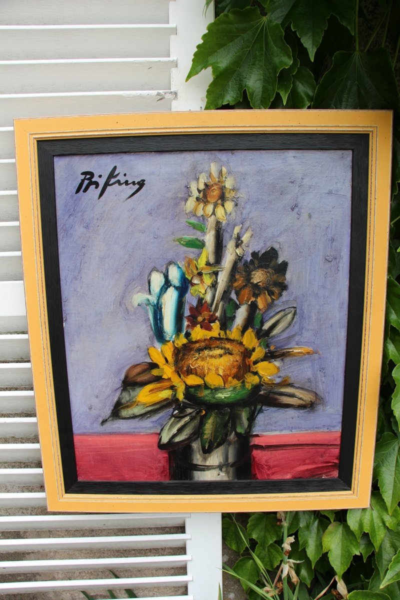 Franz Priking, Sonnenblumenstrauß, 1970er, Öl auf Leinwand, Gerahmt