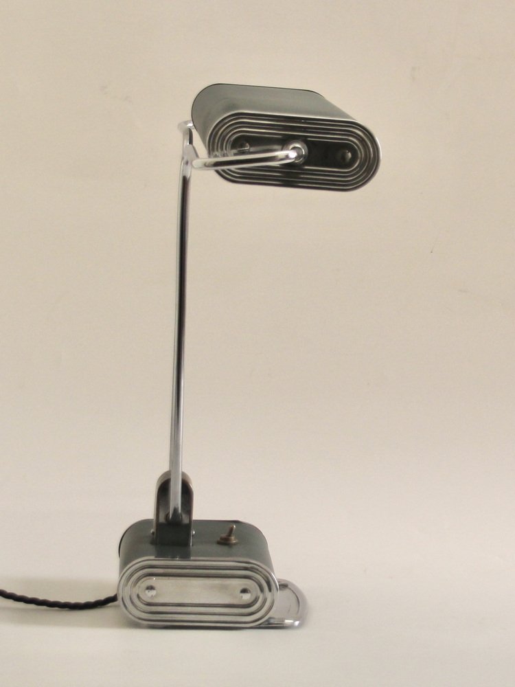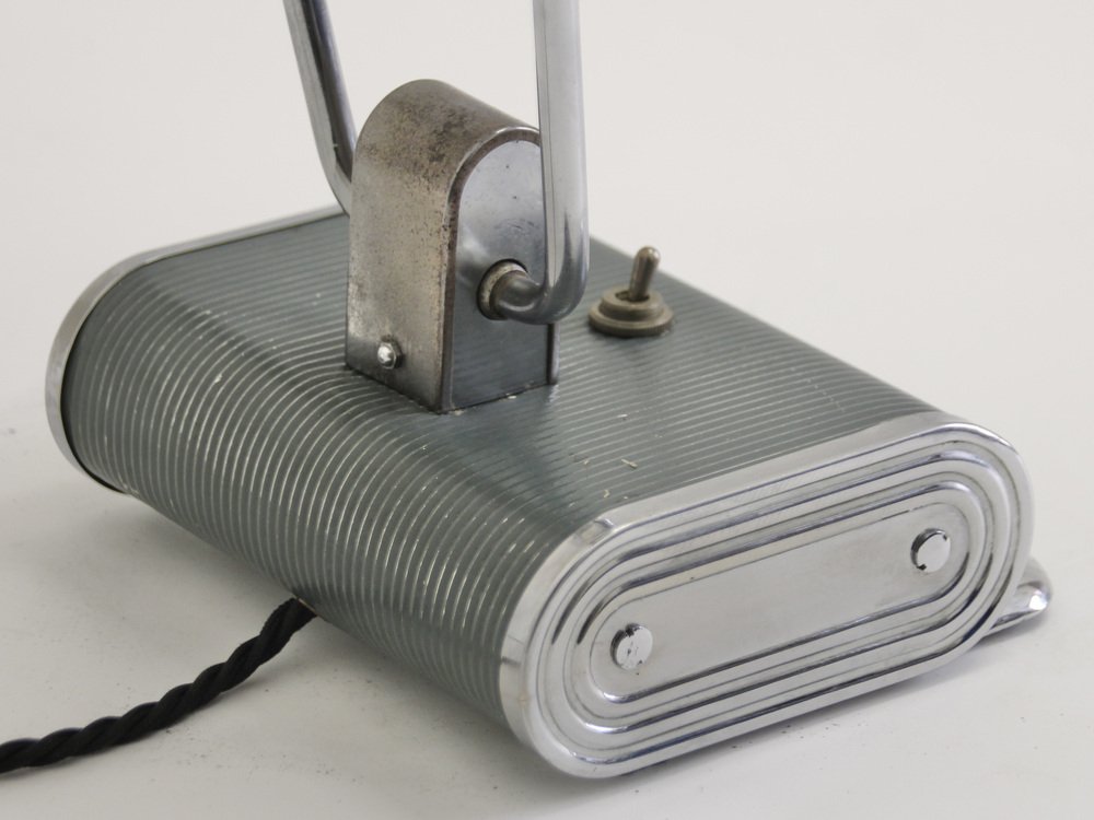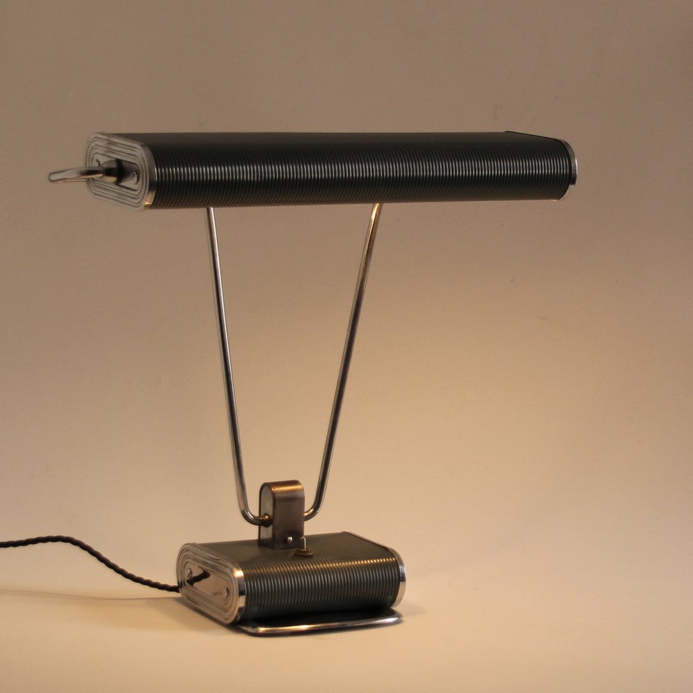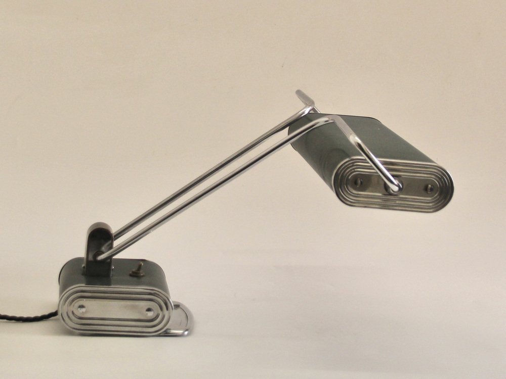 Französische Art Deco Tischlampe aus Grün & Chrom von Eileen Gray für Jumo, 1940er