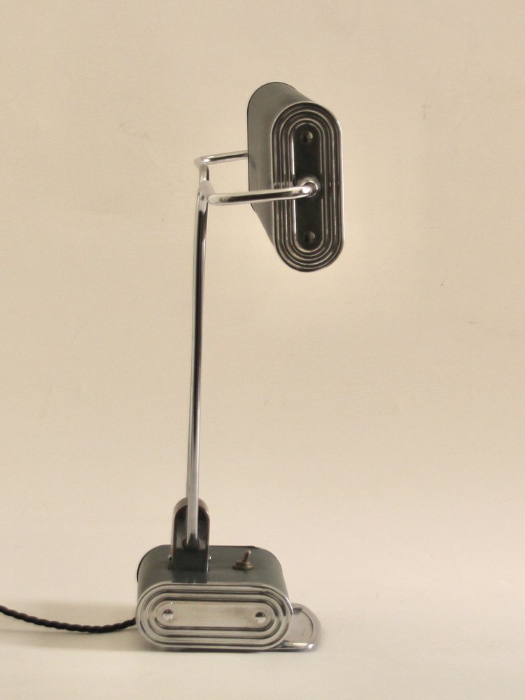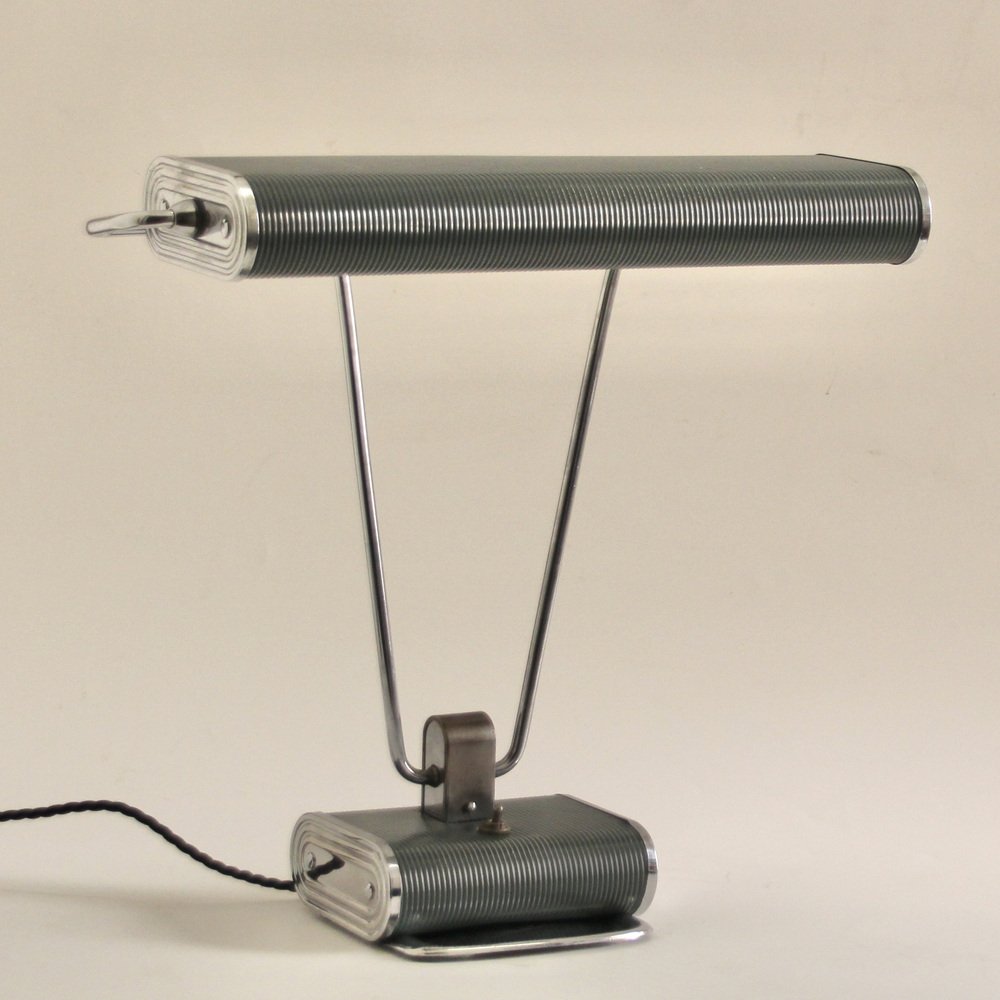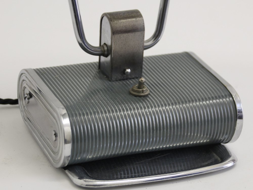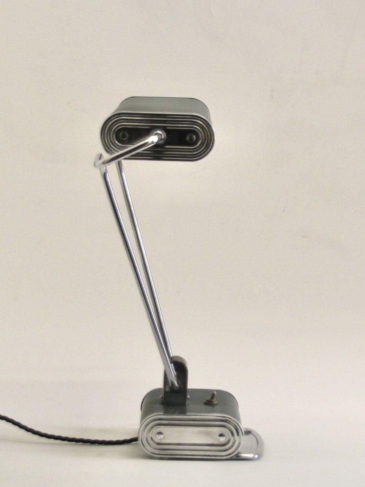 Französische Art Deco Tischlampe aus Grün & Chrom von Eileen Gray für Jumo, 1940er