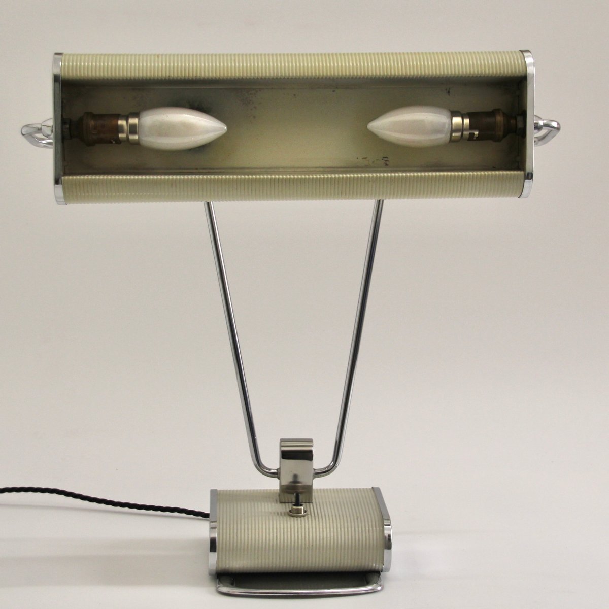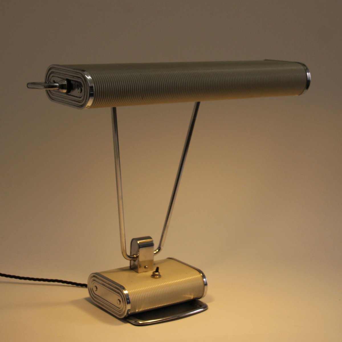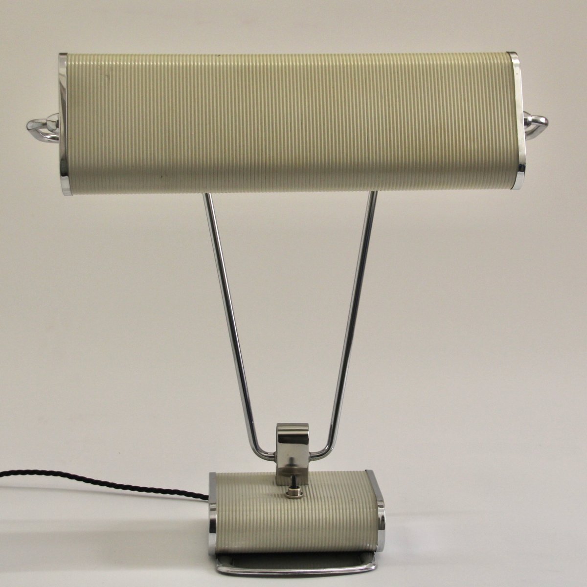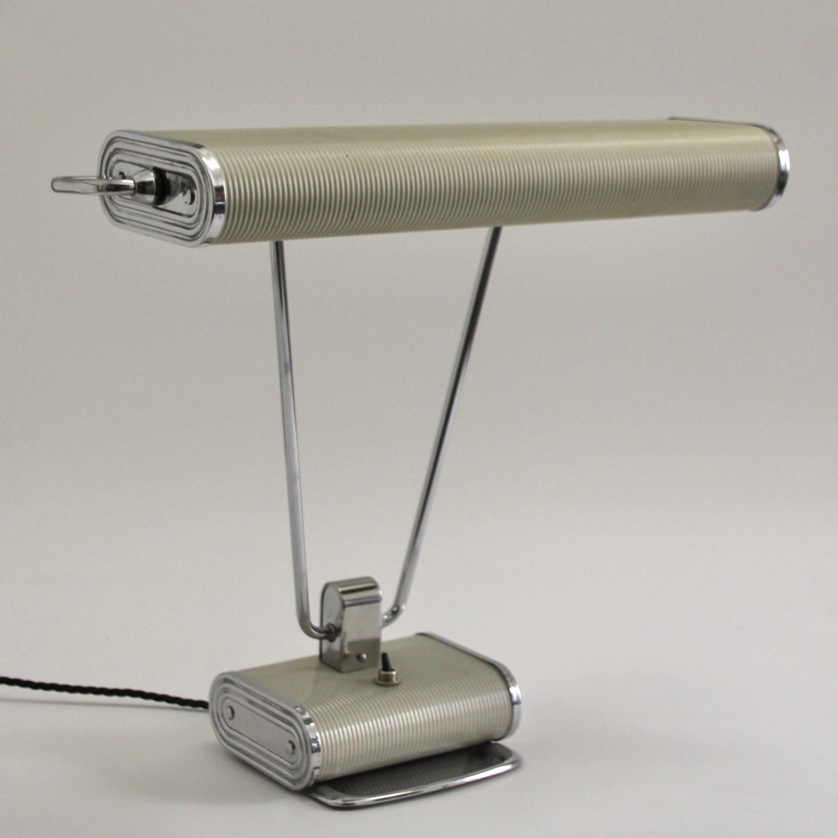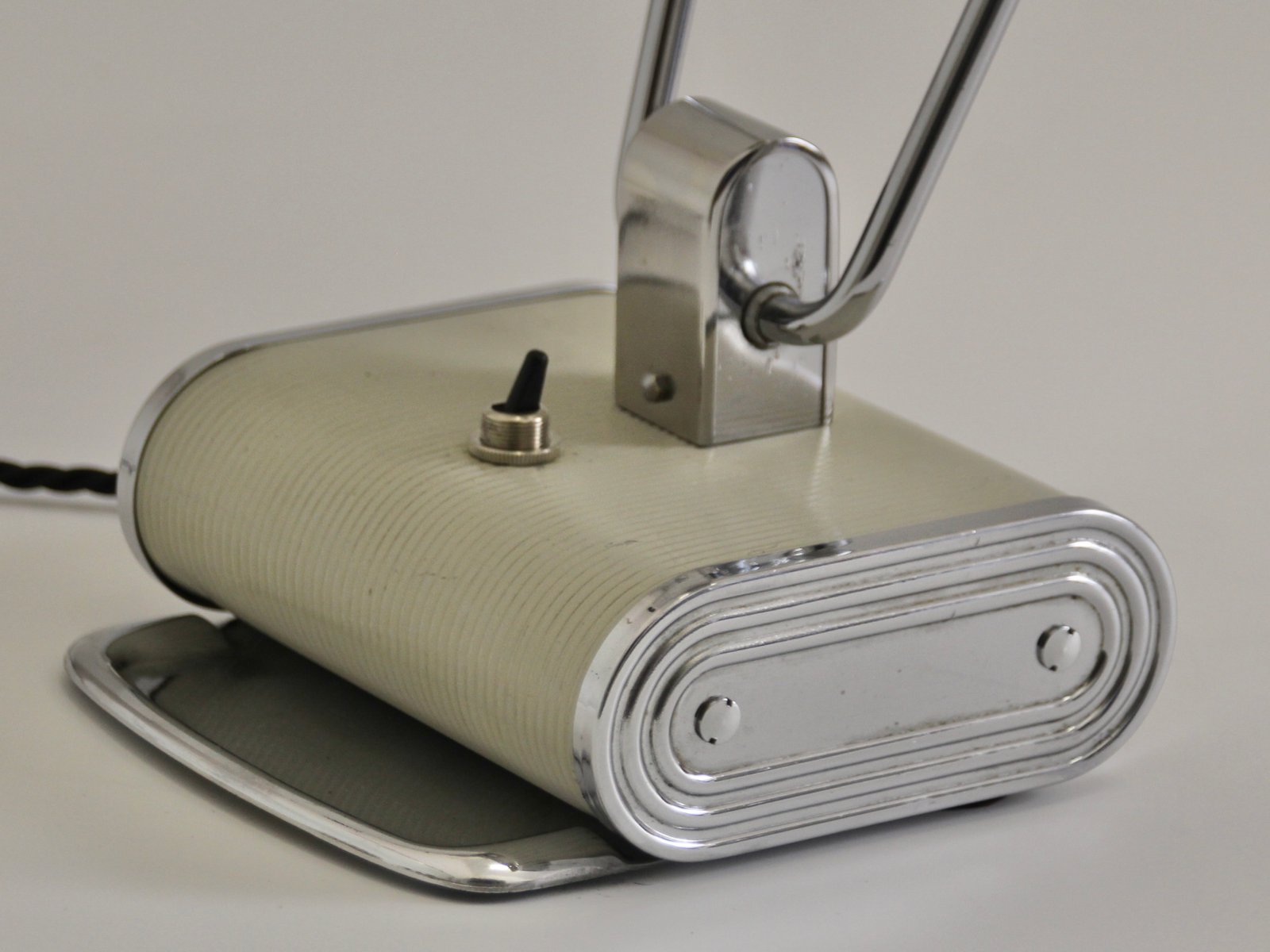 Französische Art Deco Tischlampe in Anthrazit & Chrom von Eileen Gray für Jumo, 1940er