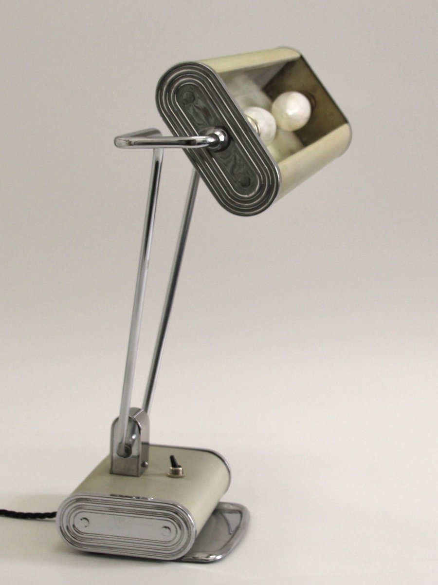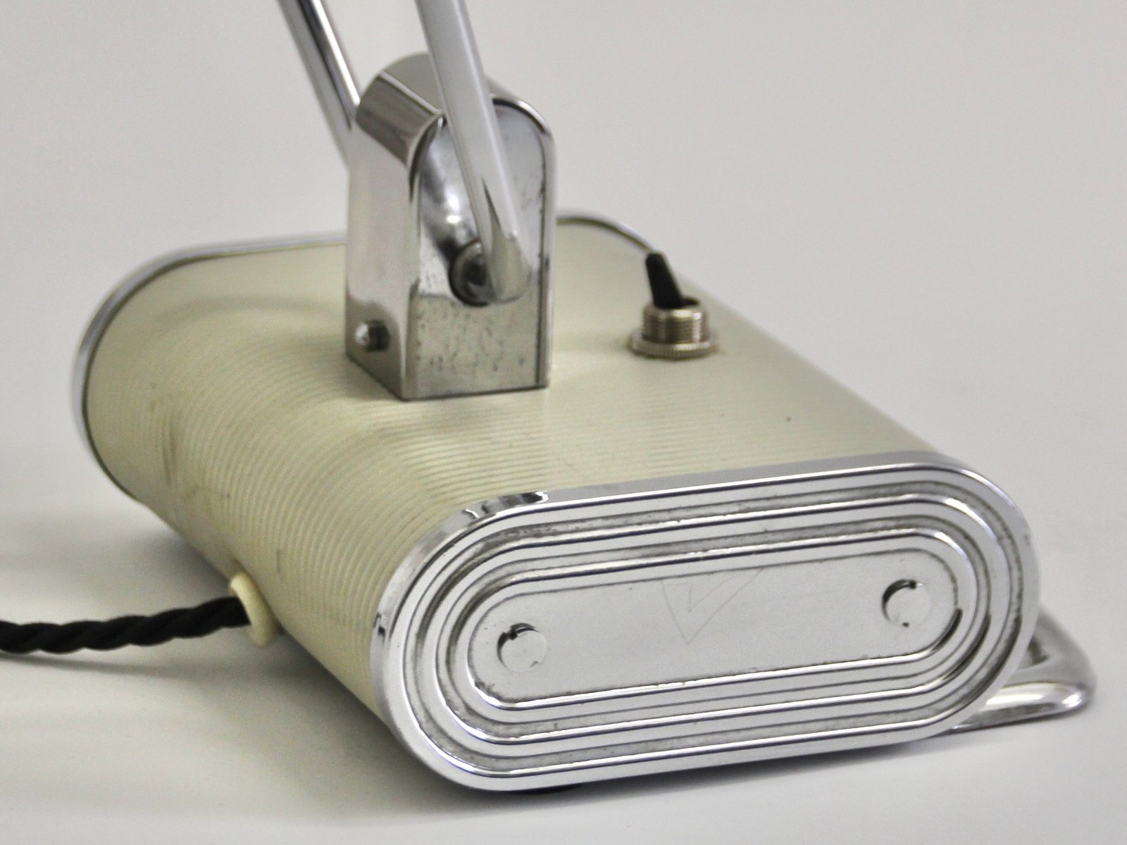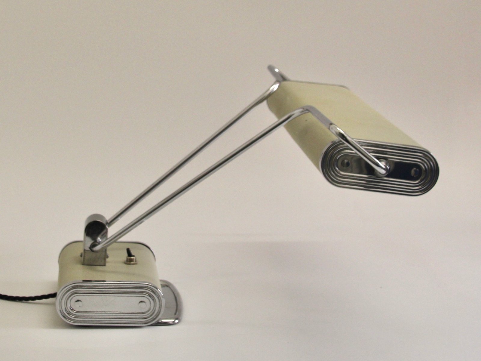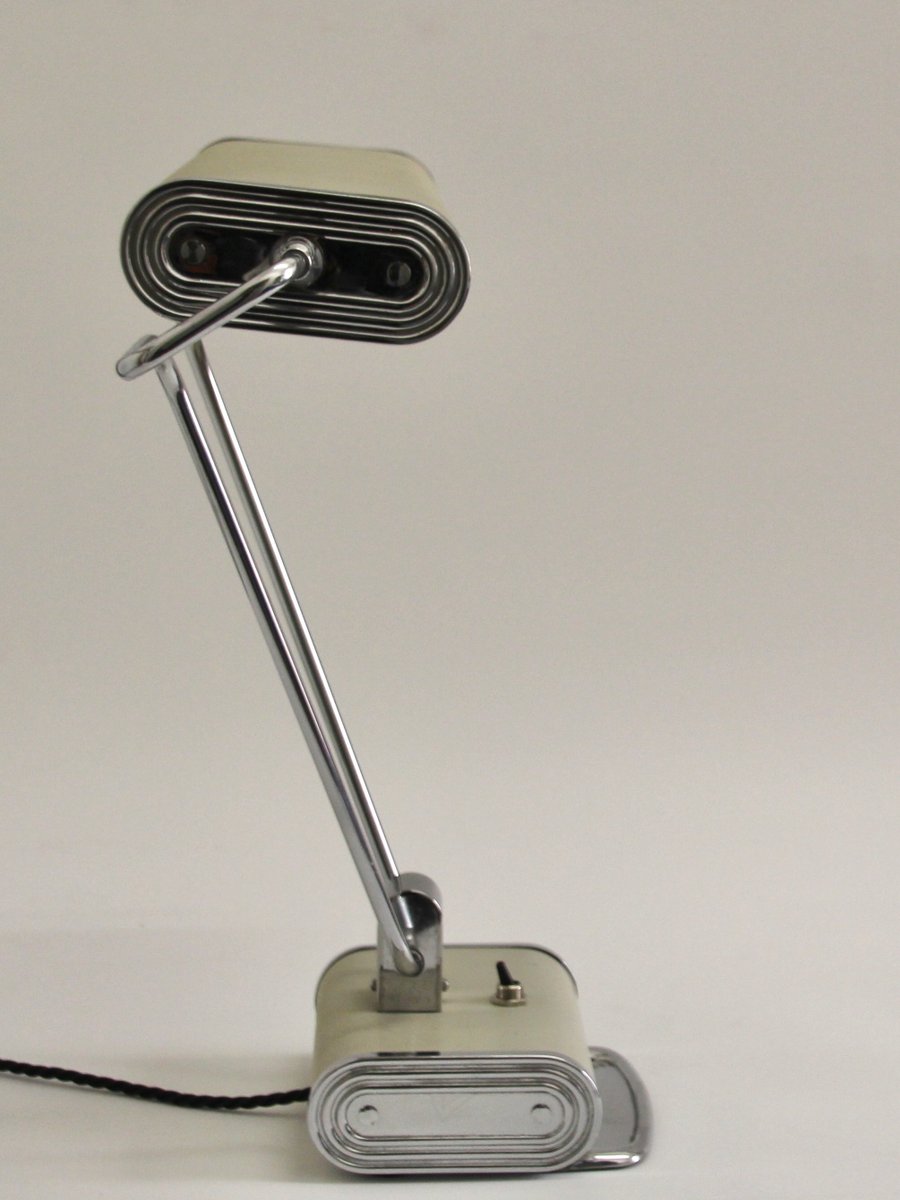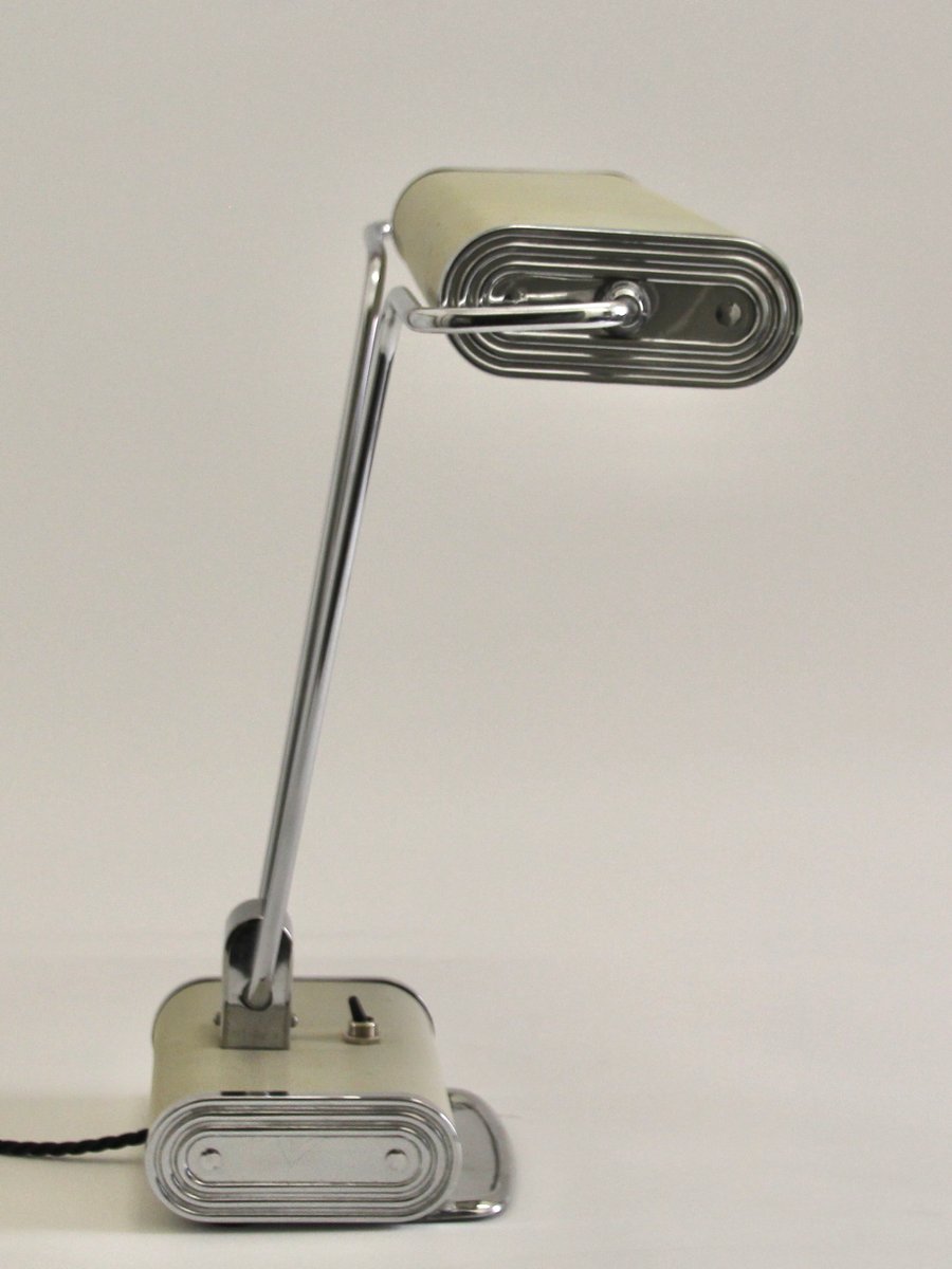 Französische Art Deco Tischlampe in Anthrazit & Chrom von Eileen Gray für Jumo, 1940er