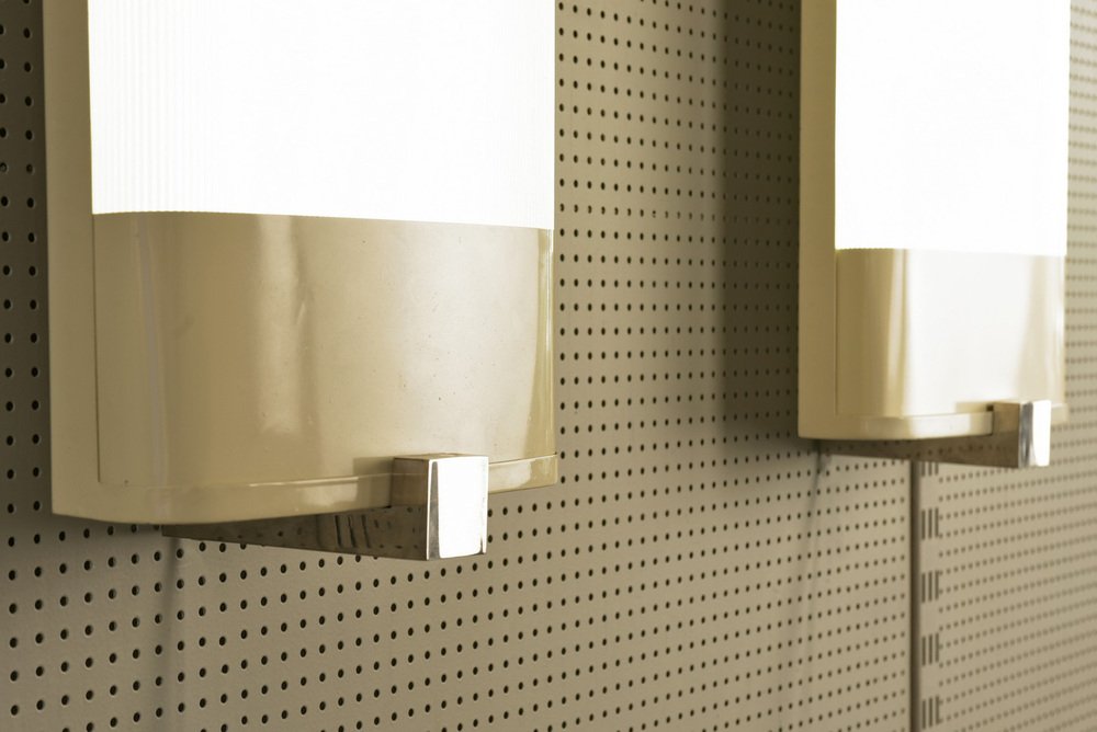 few signs of wear. The pair of large wall lights from France from the 1940s are cool and clear in their statement, classic and strict in their design.
