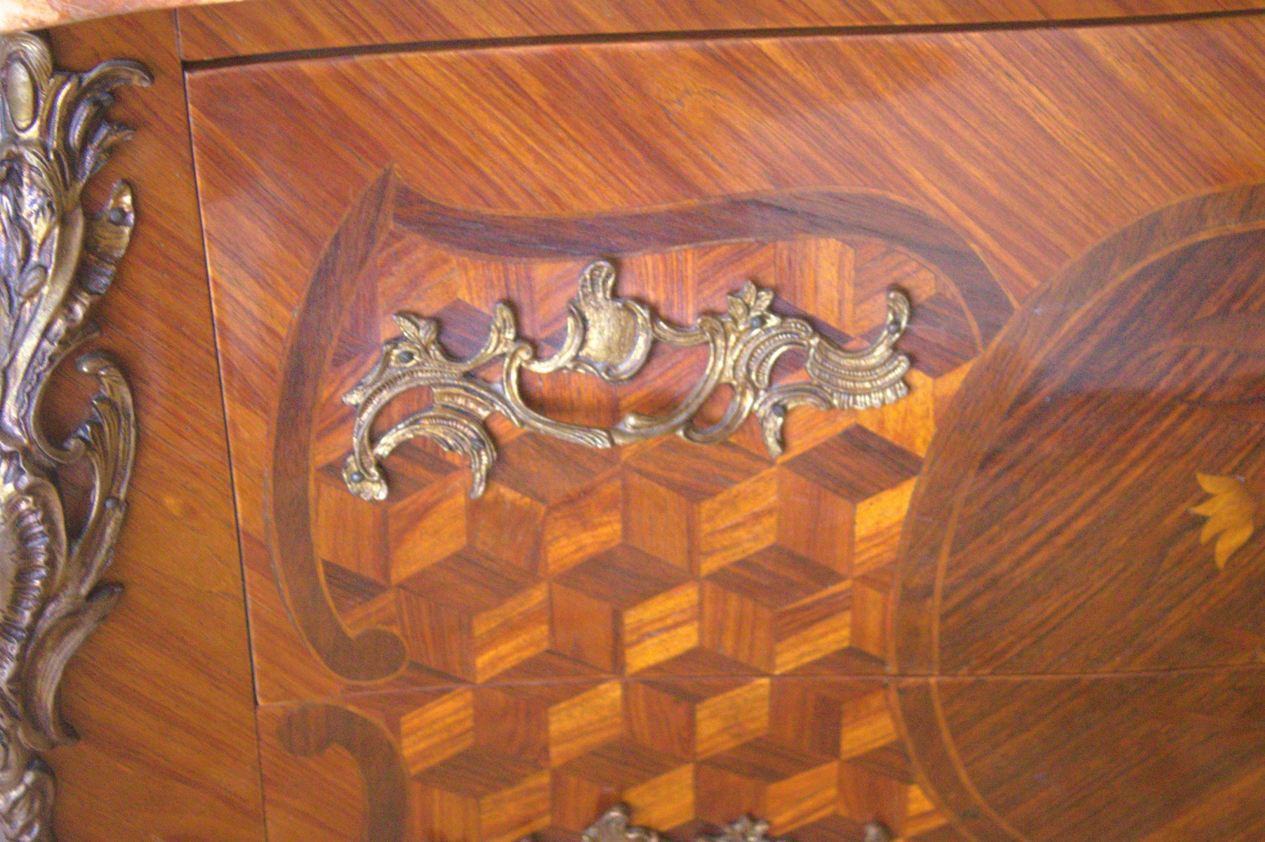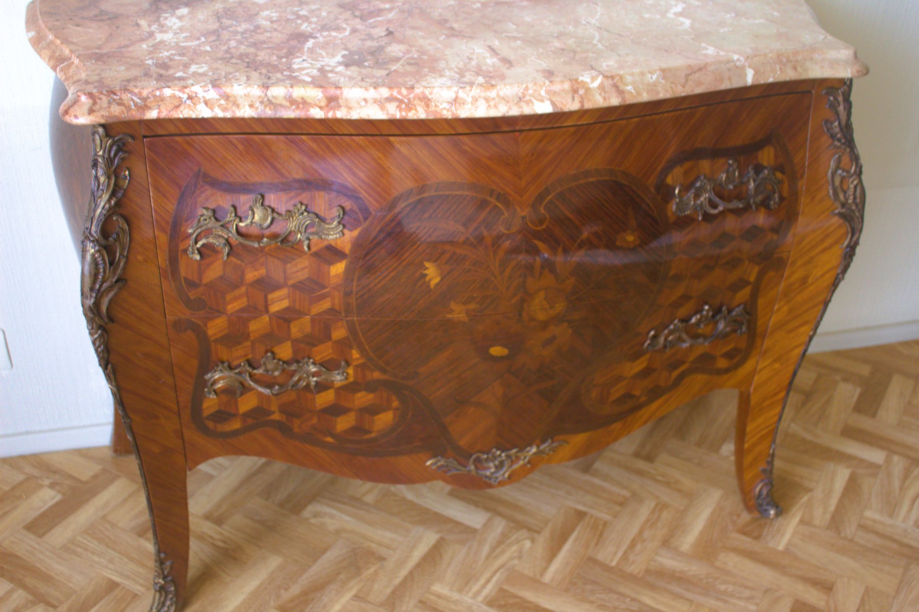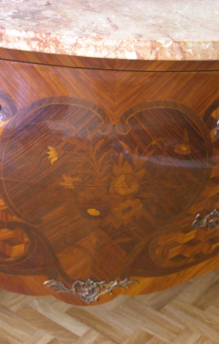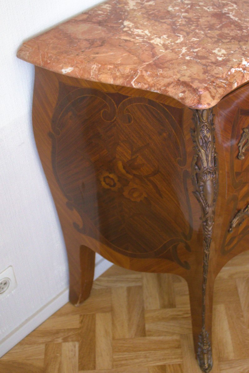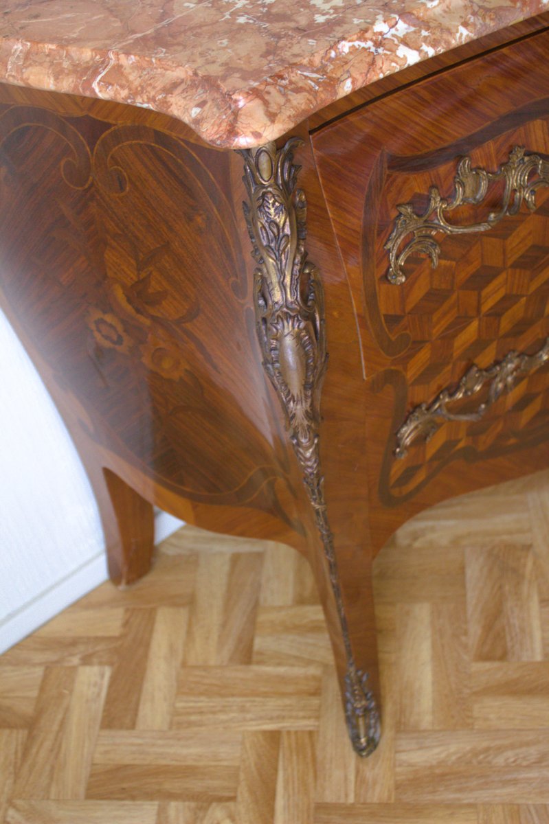 Französische Kommode im Louis Xv-Stil mit herzförmiger Intarsie und Marmorplatte