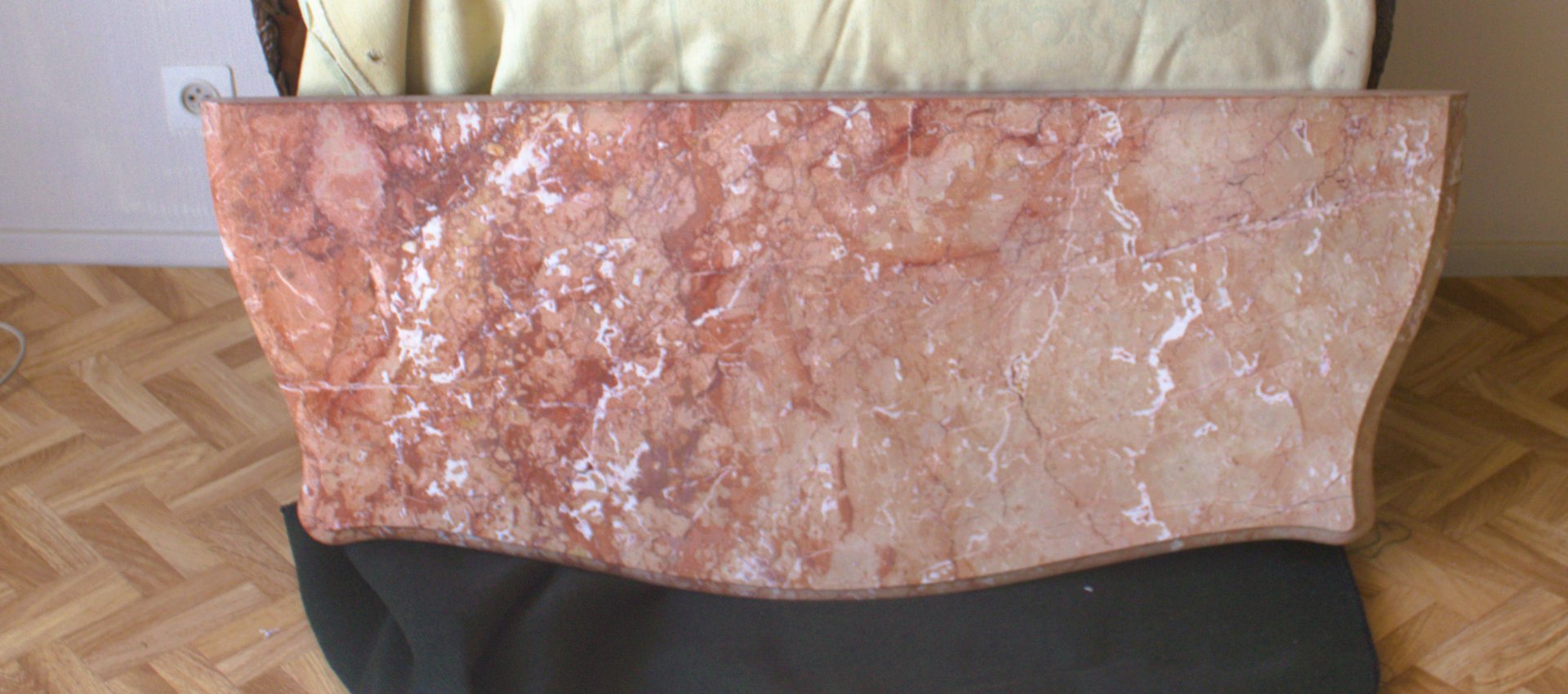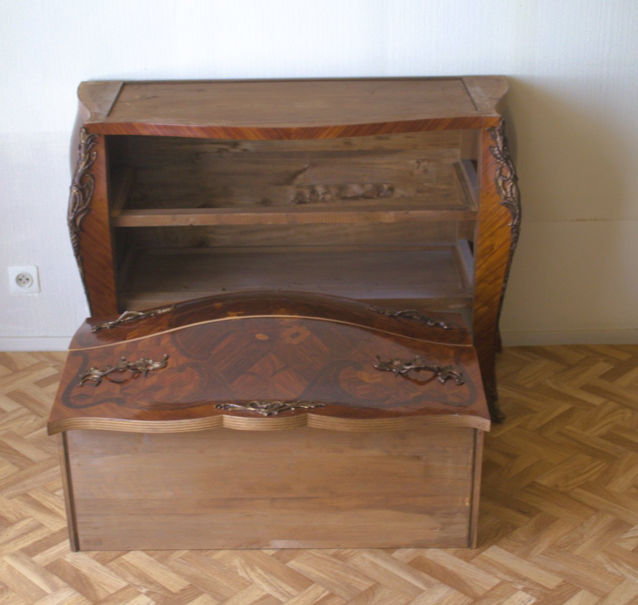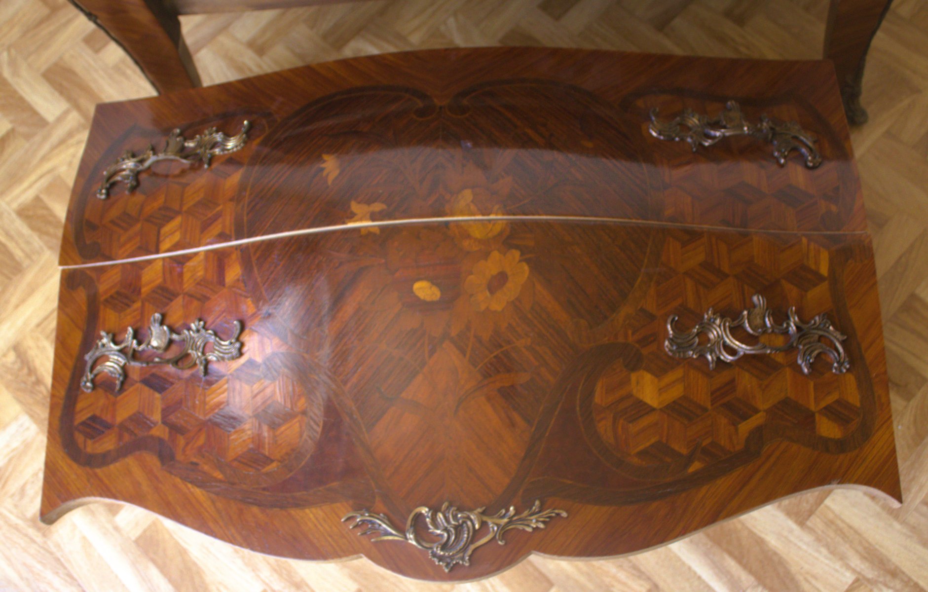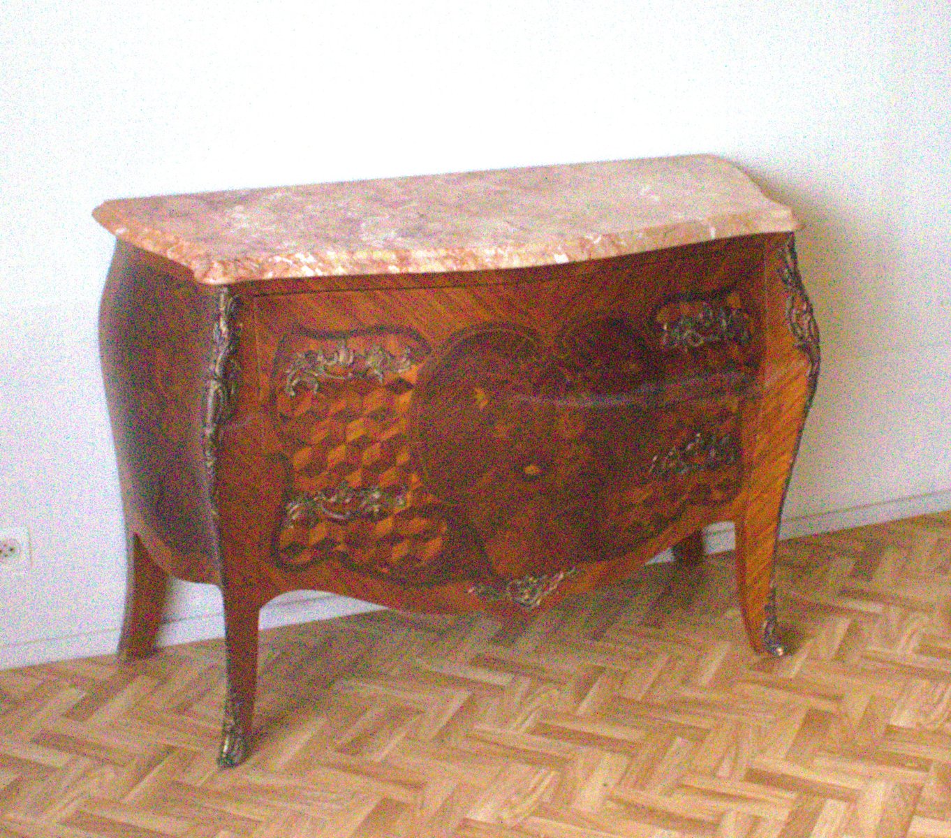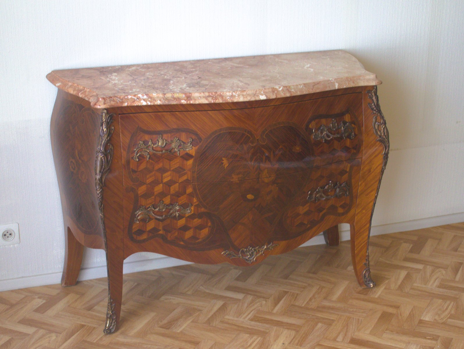 Französische Kommode im Louis Xv-Stil mit herzförmiger Intarsie und Marmorplatte
