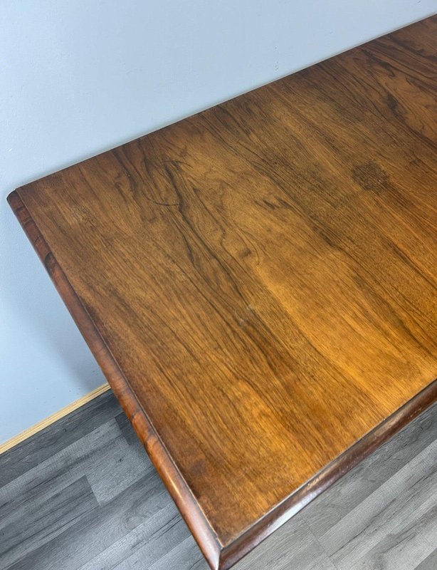 Condition – Good condition – Beautiful aged character across the surface – Structurally strong Dimensions Height: 89.0cm Width: 96.0cm Depth: 57.0cm Key Features – Authentic with timeless appeal – French burr drawer fronts with classic detailing – Elegant turned side columns – Four spacious drawers with dovetail joinery – Ideal for period, vintage or traditional interiors