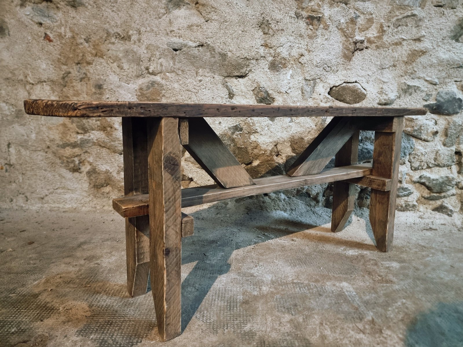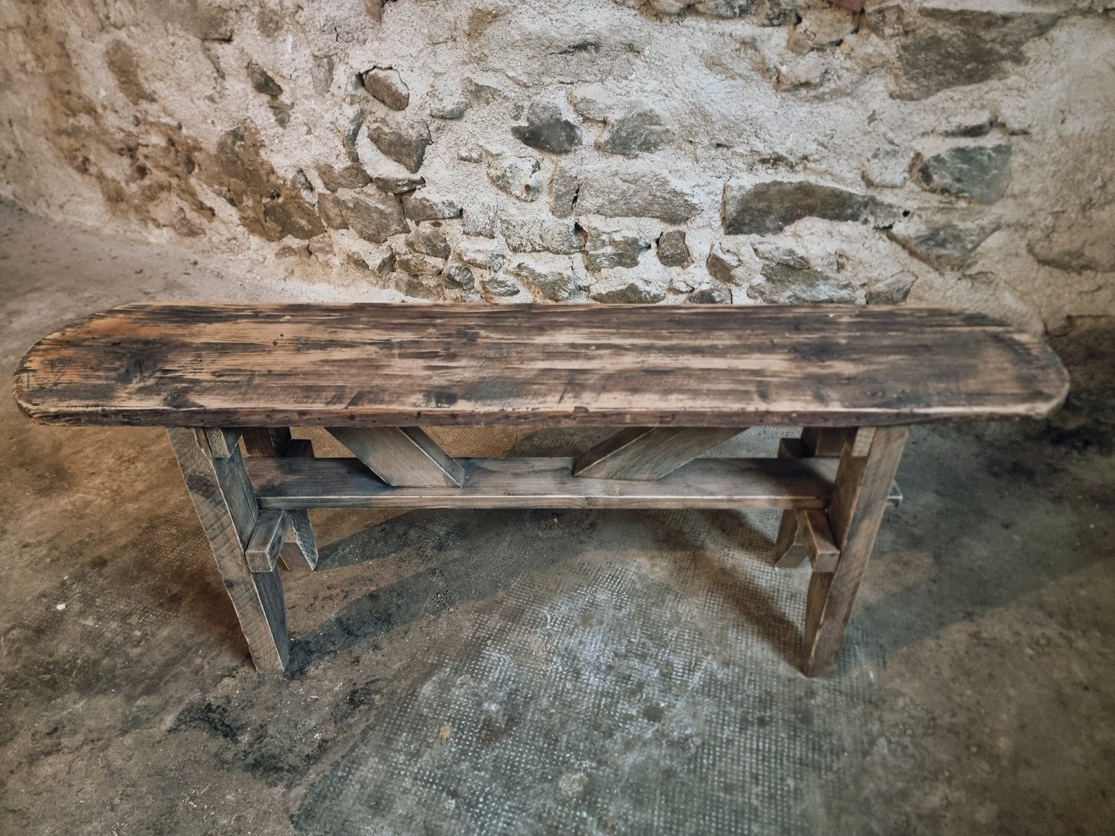 Made from solid pine wood, this piece shows natural wear and patina from use, which gives it character.
