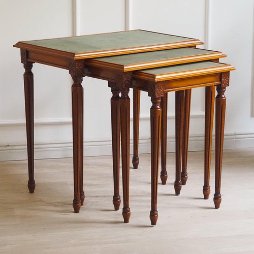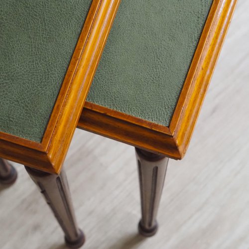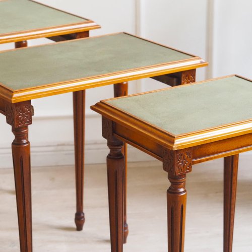 Französische Vintage Satztische mit Lederplatten, 1900, 3er Set