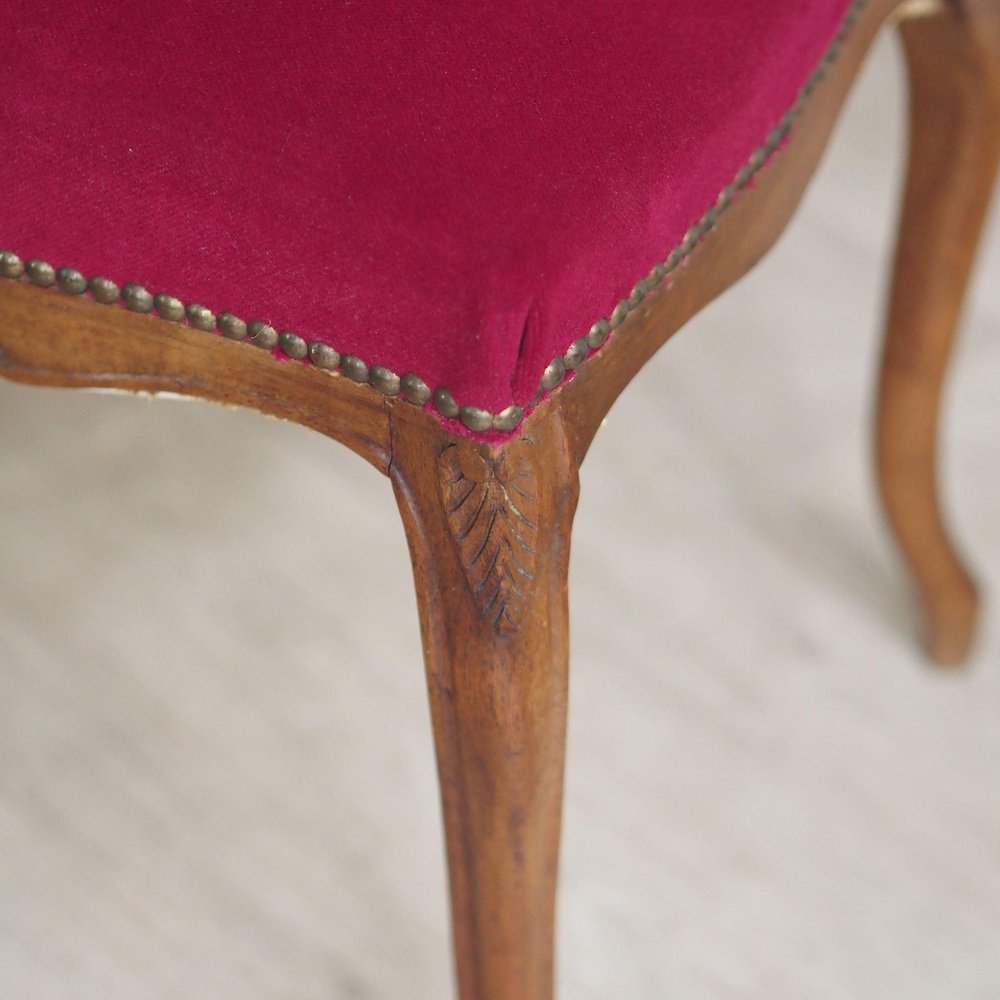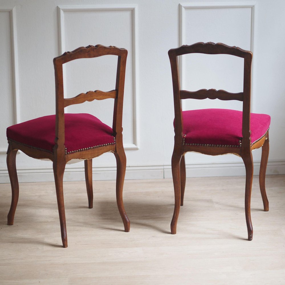 Französische Vintage Stühle mit weinrotem Samtbezug, 1890er-1910er, 2er Set