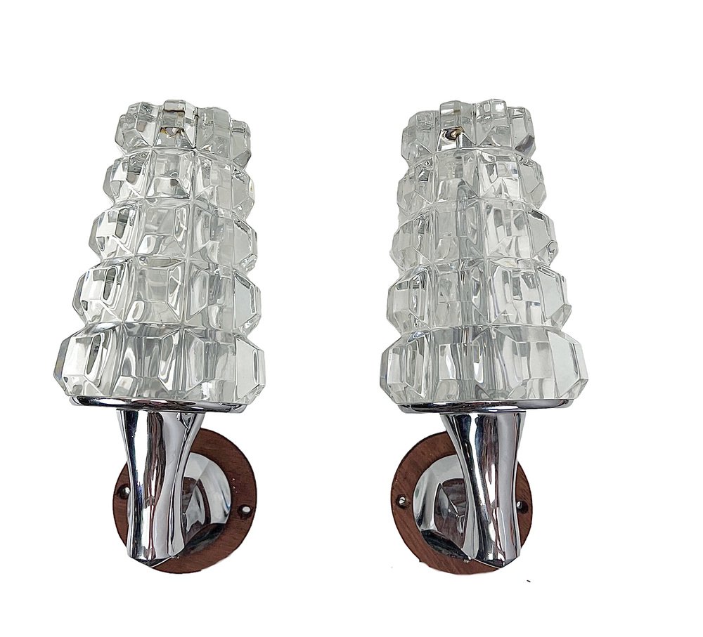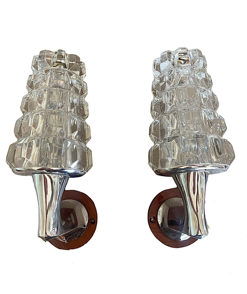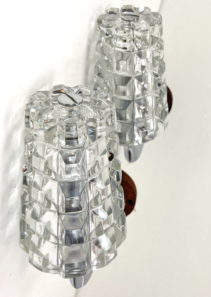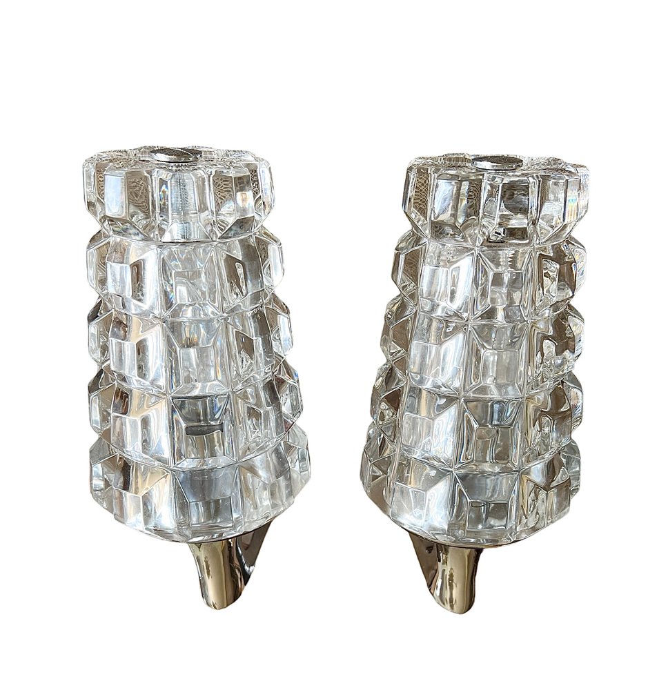 Französische Wandlampen aus Bleikristall, 1960er, 2er Set