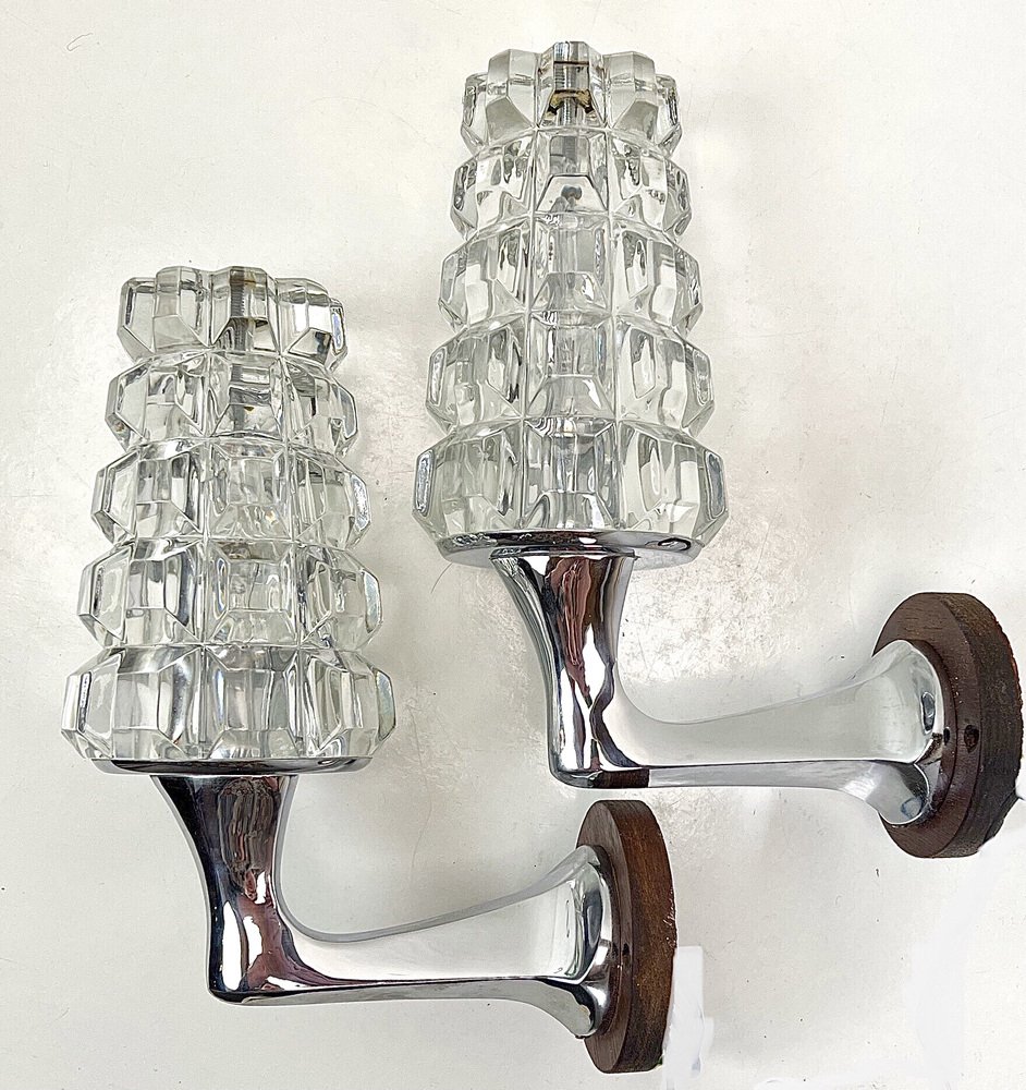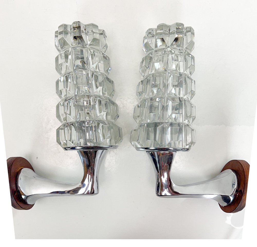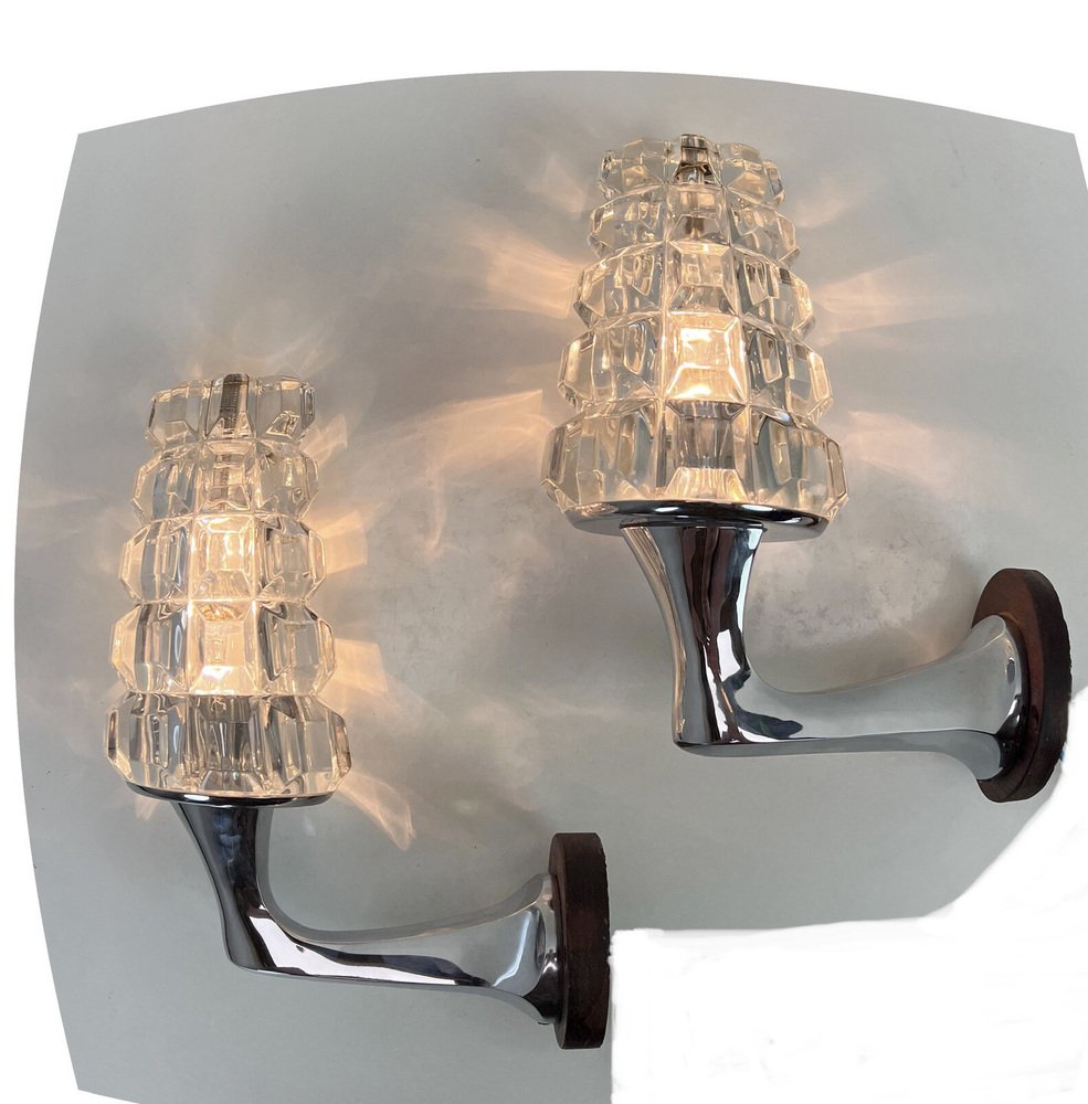 Französische Wandlampen aus Bleikristall, 1960er, 2er Set