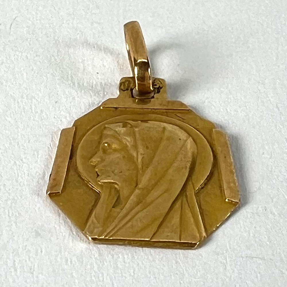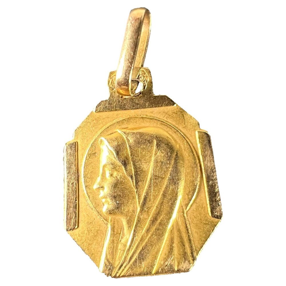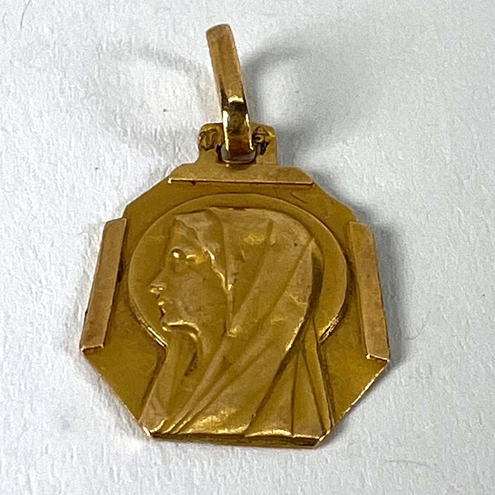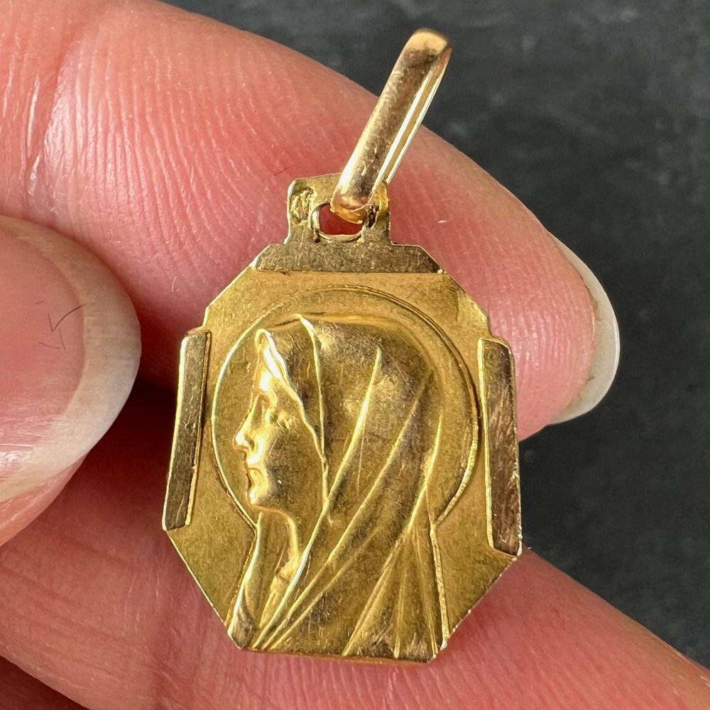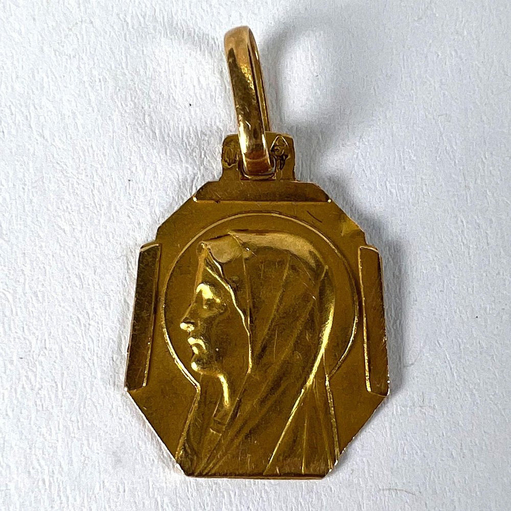 Französischer Art Deco Jungfrau Maria Medaillen-Anhänger aus 18 Karat Gelbgold, 1920er