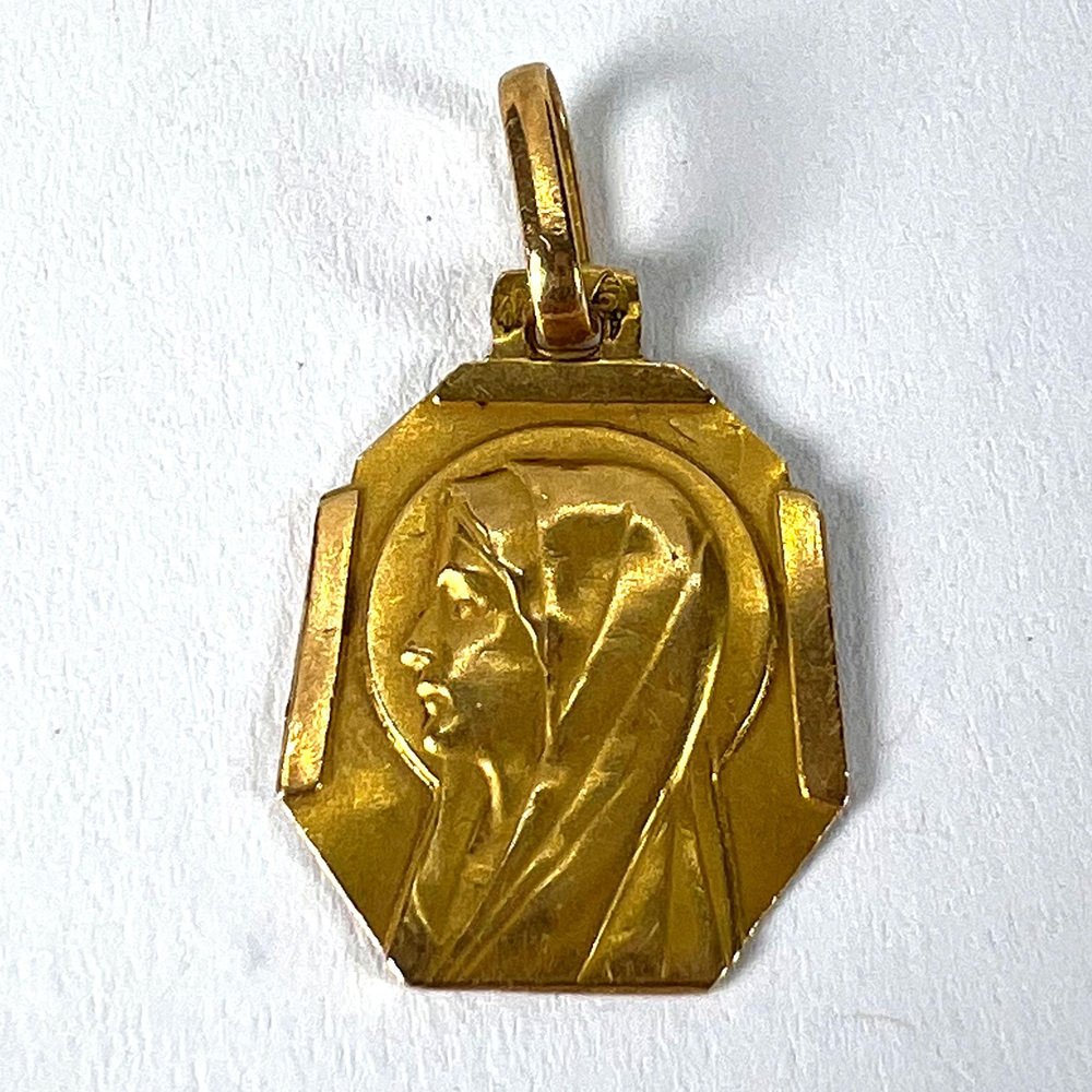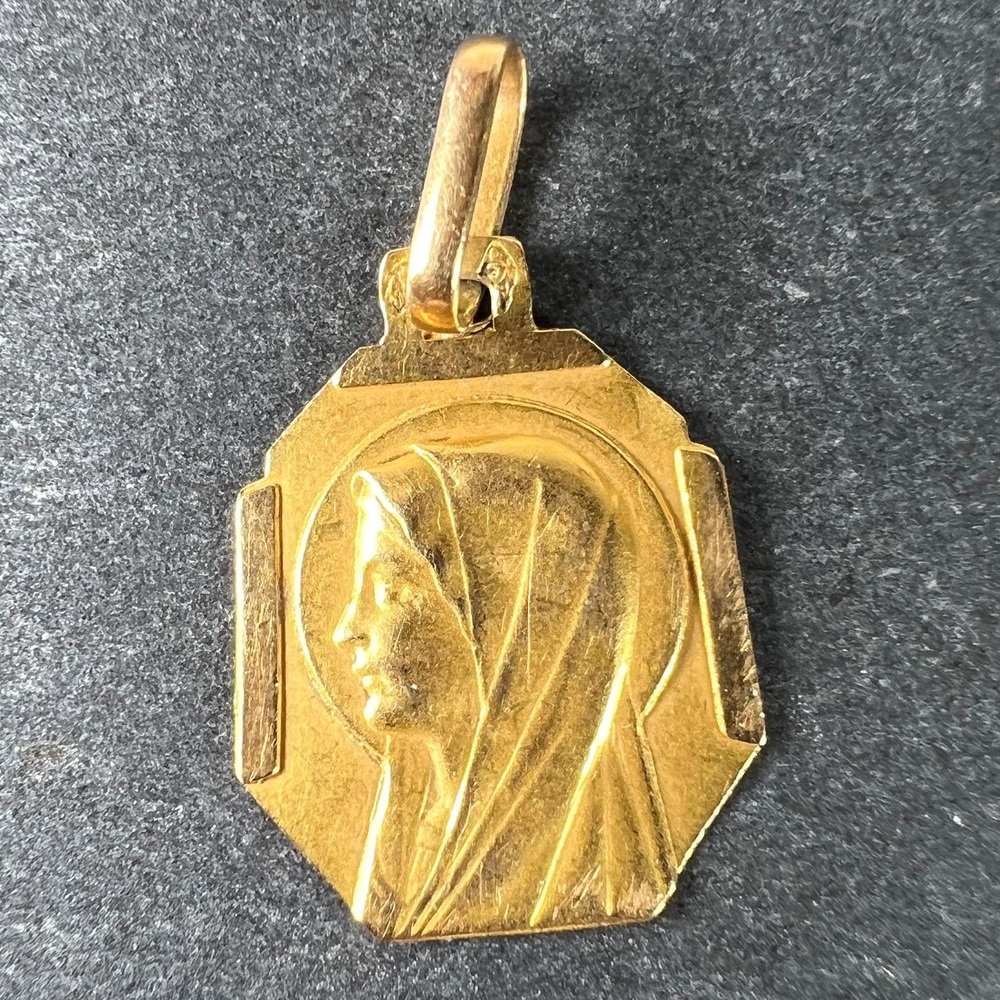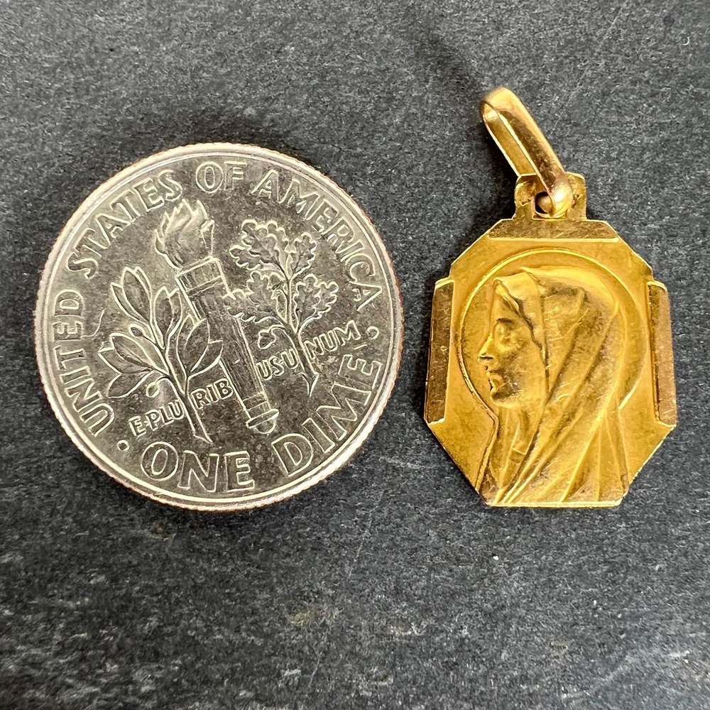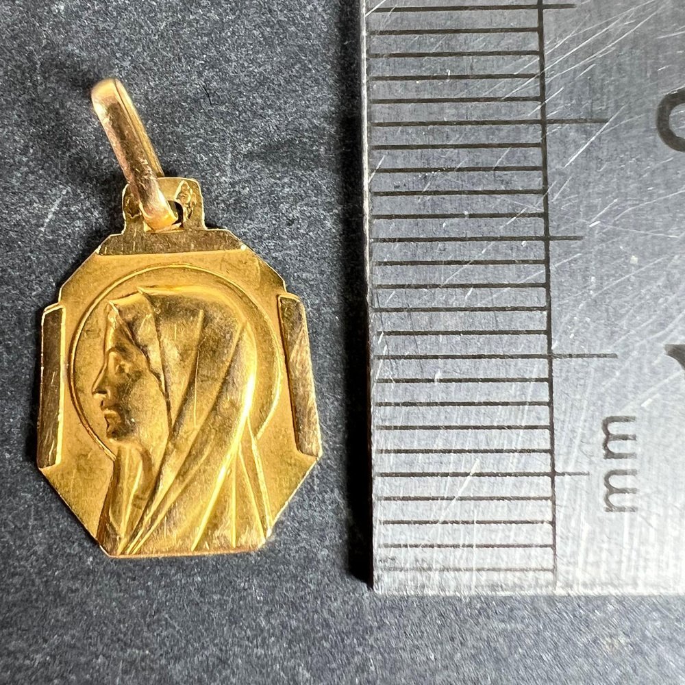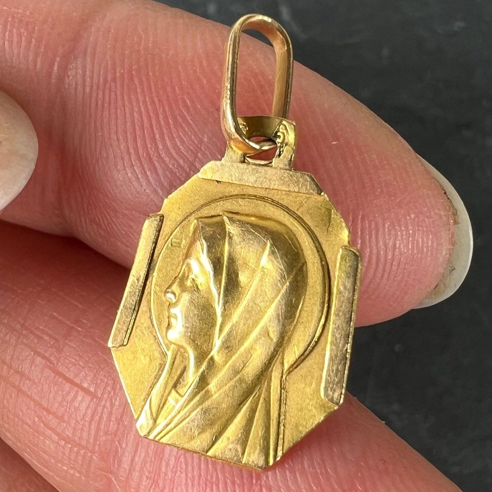 Französischer Art Deco Jungfrau Maria Medaillen-Anhänger aus 18 Karat Gelbgold, 1920er
