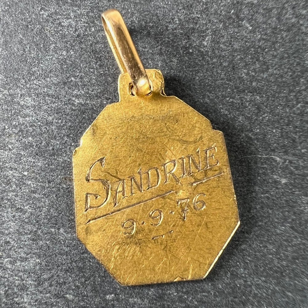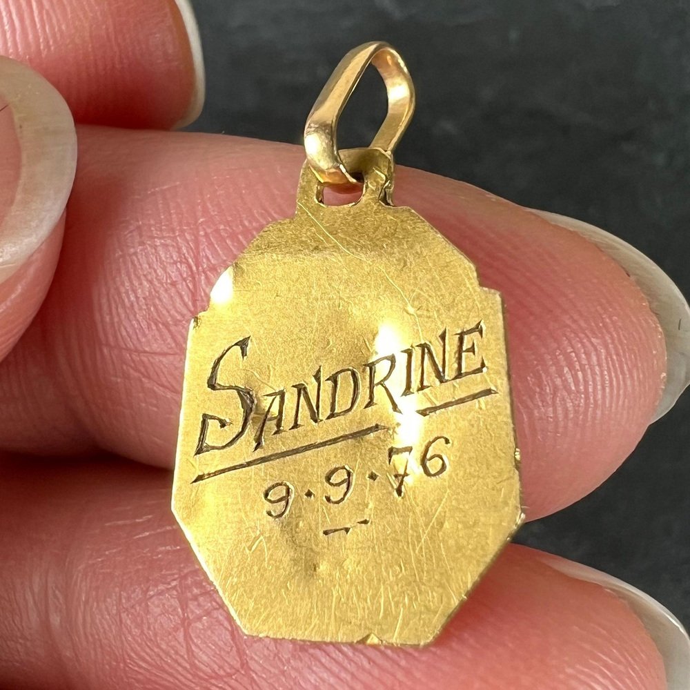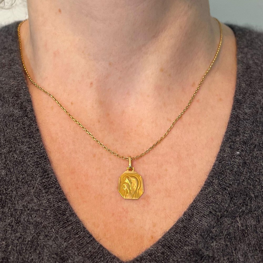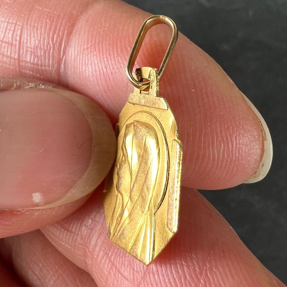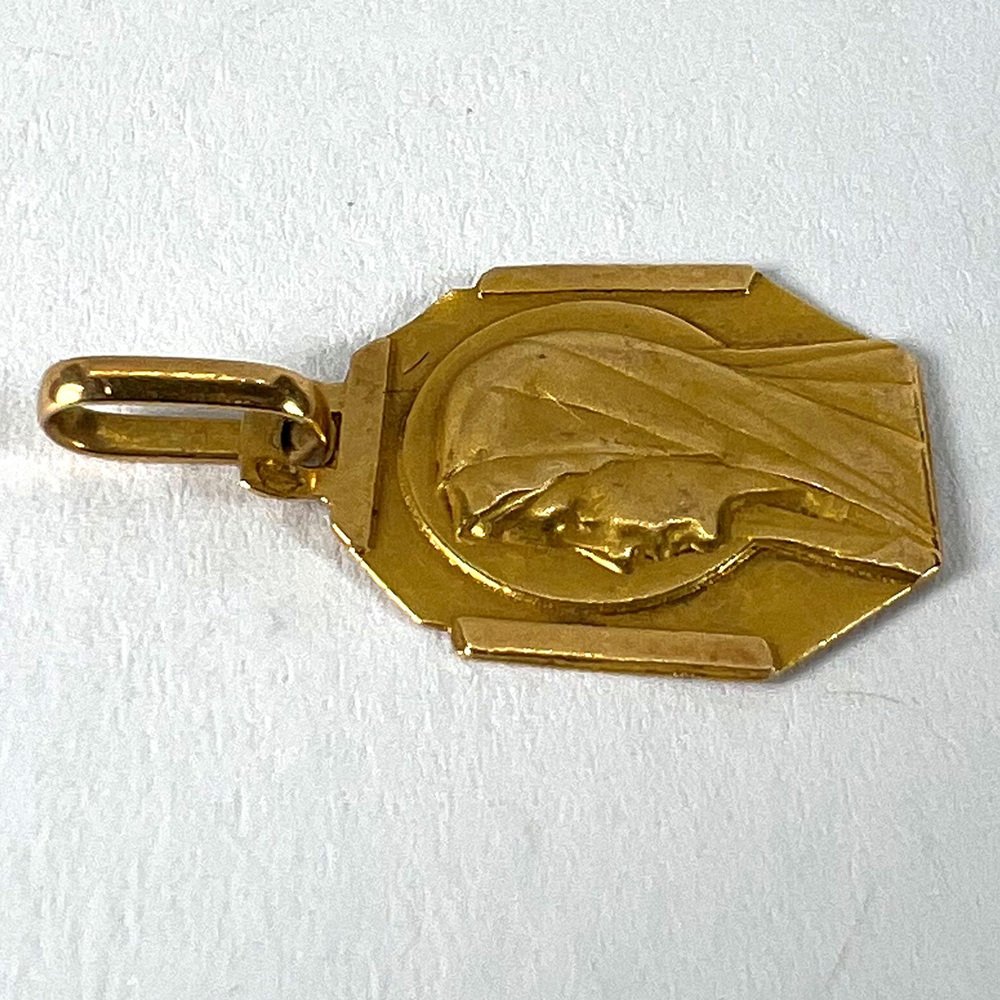 Französischer Art Deco Jungfrau Maria Medaillen-Anhänger aus 18 Karat Gelbgold, 1920er