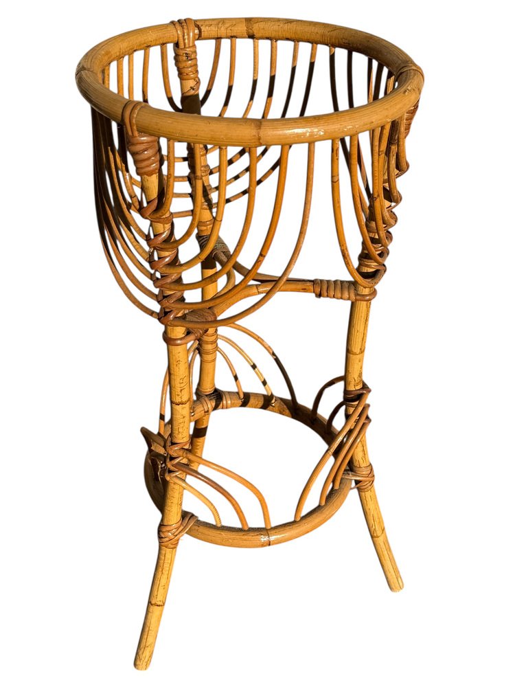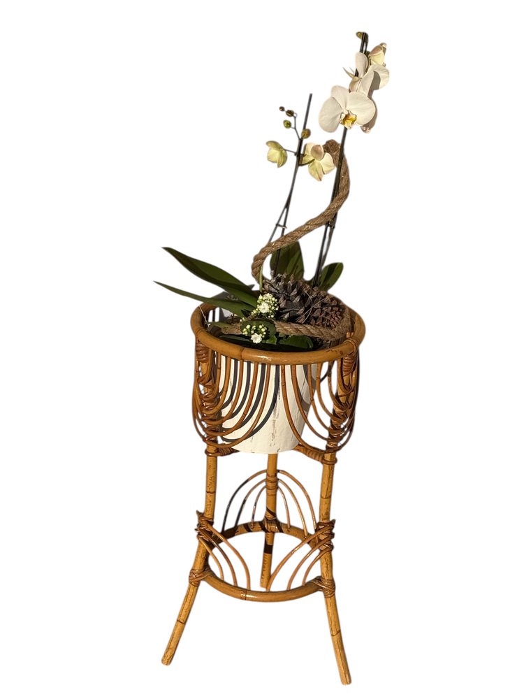 Französischer Rattan Blumenhalter, 1960er