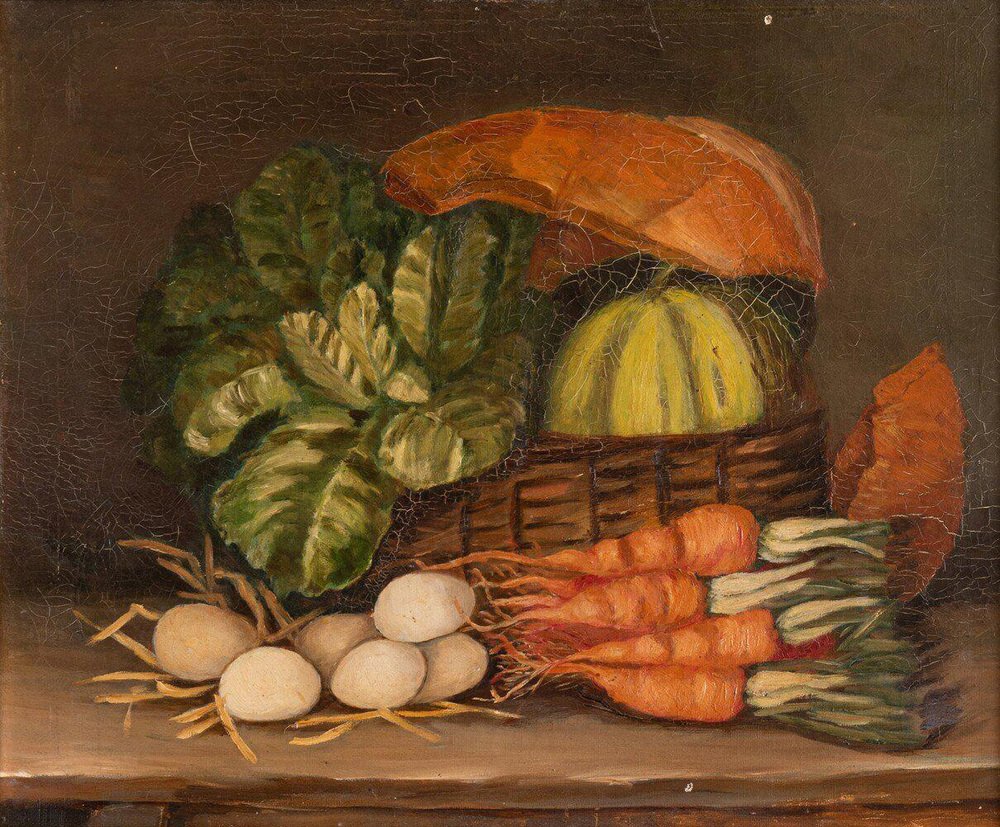 Französischer Schulkünstler, Küchenstillleben, Ölgemälde auf Leinwand, Ende 19. Jh., gerahmt